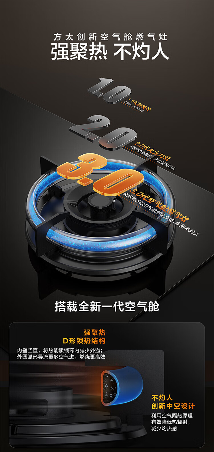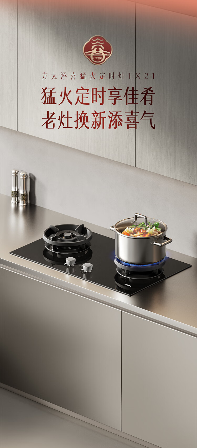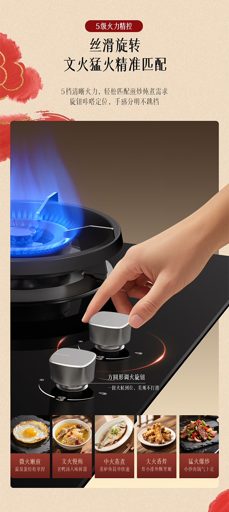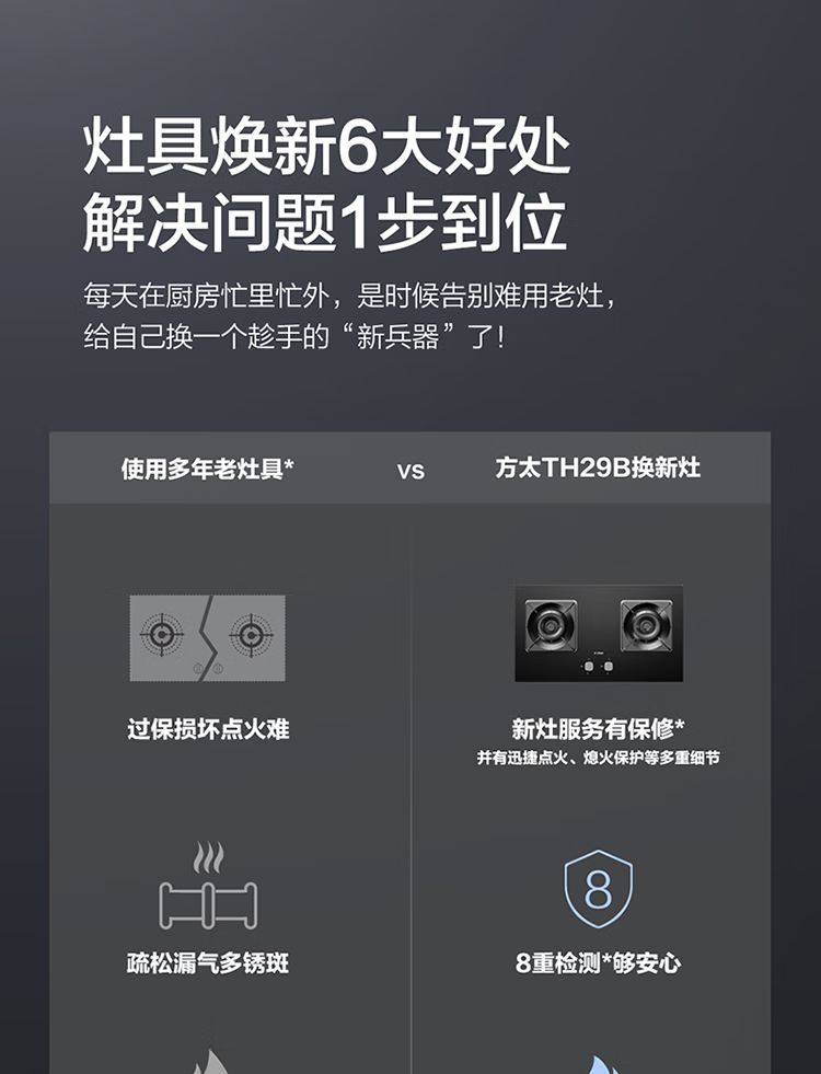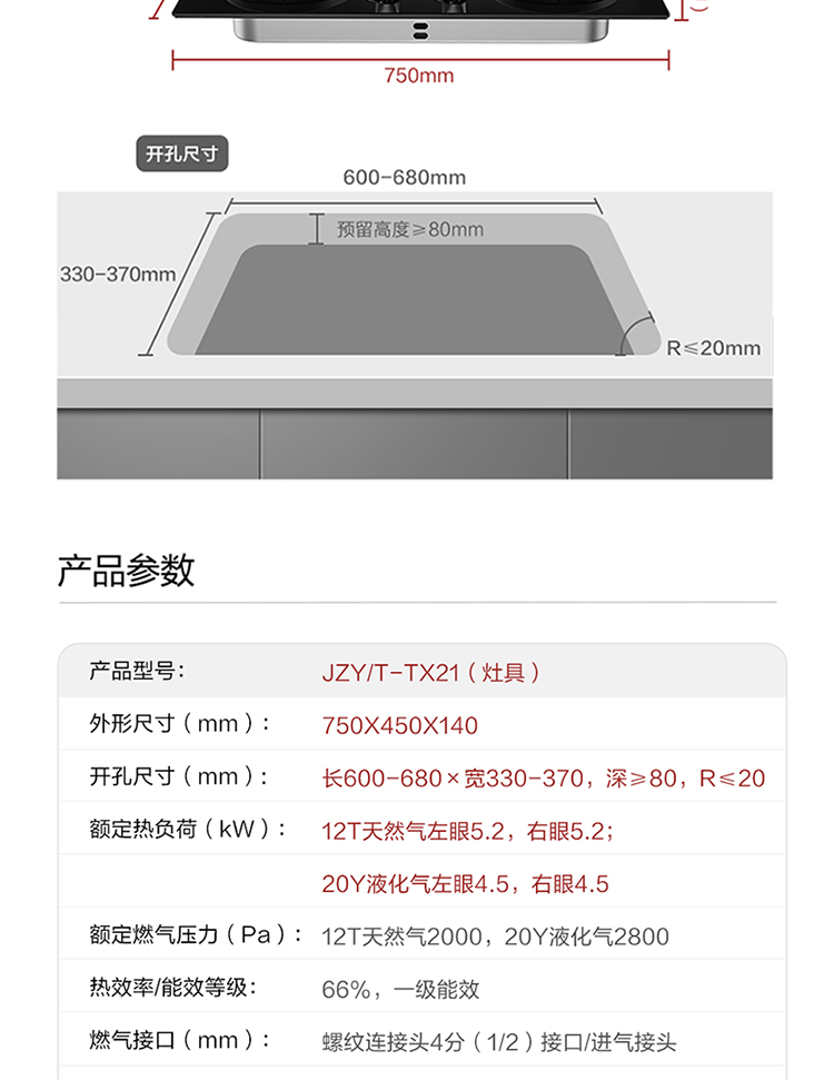 FOTILE gas stove double stove household desktop embedded dual-purpose stove first-class energy efficiency full air intake high-power natural gas liquefied gas stove flameout protection six layers of explosion-proof TX22 5.2KW high flame stove / burner head detachable