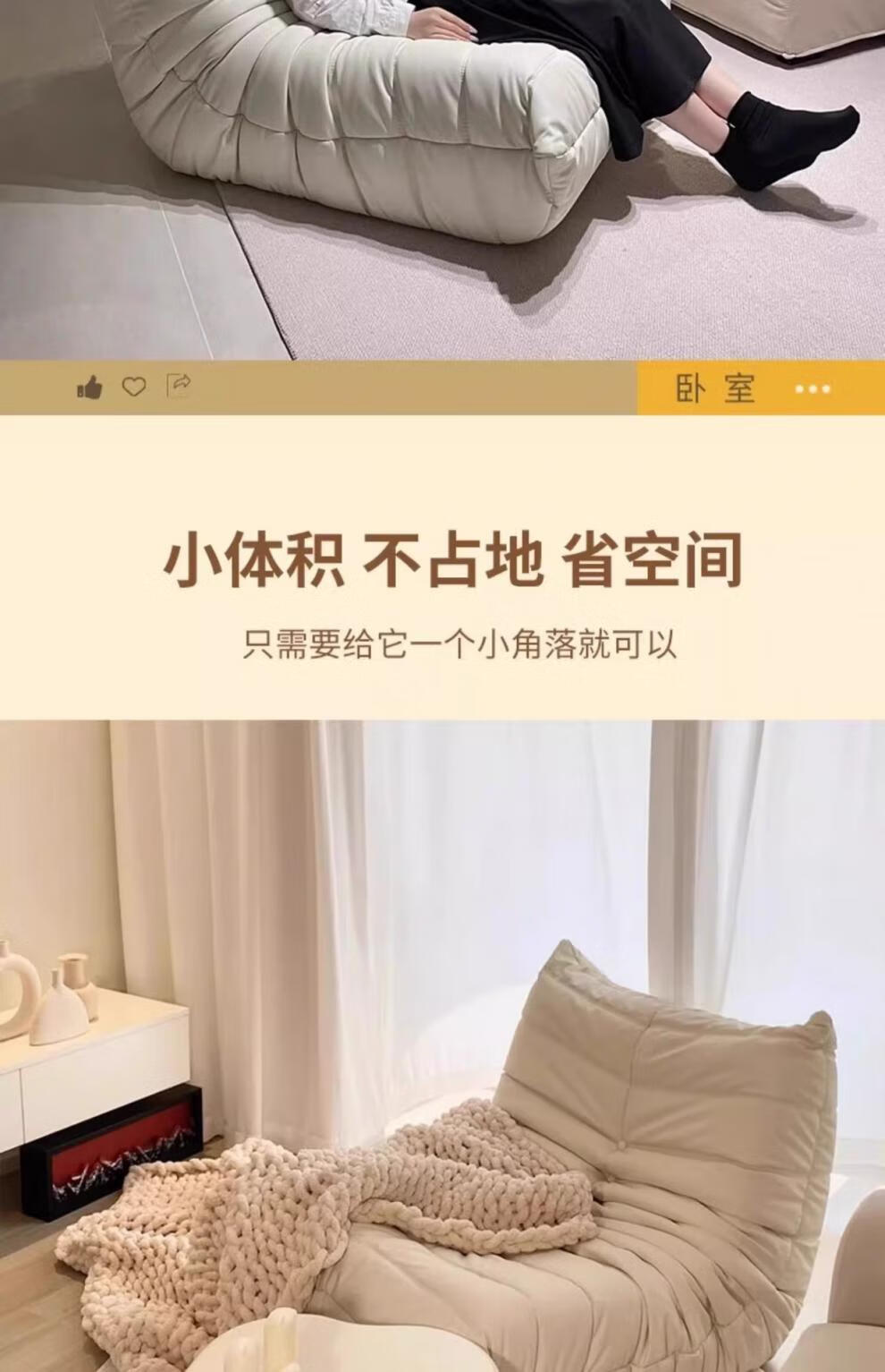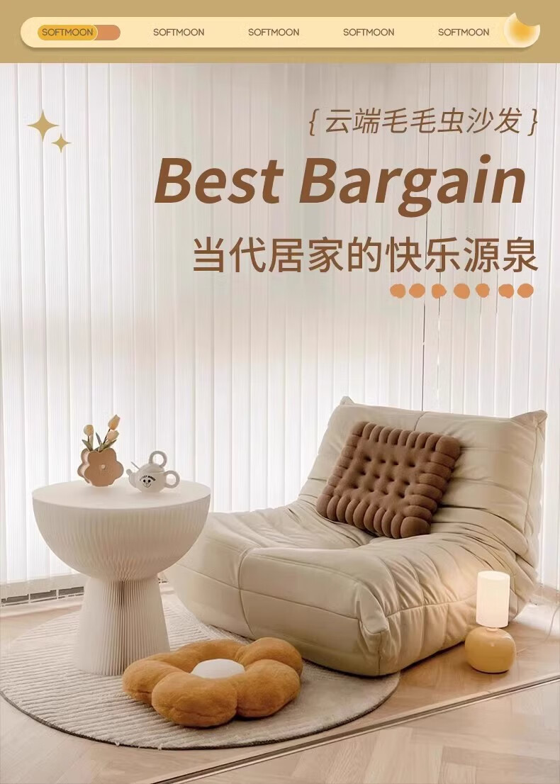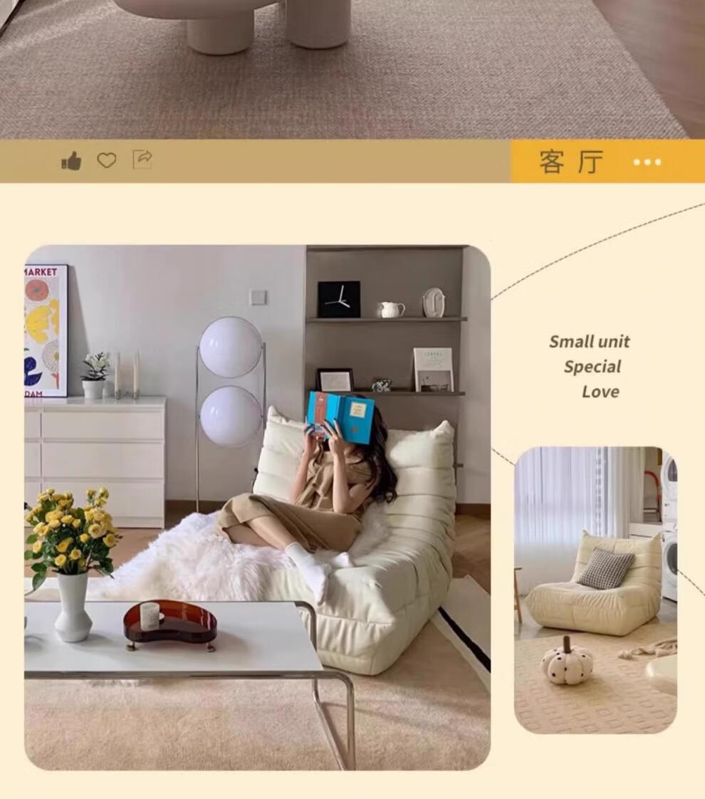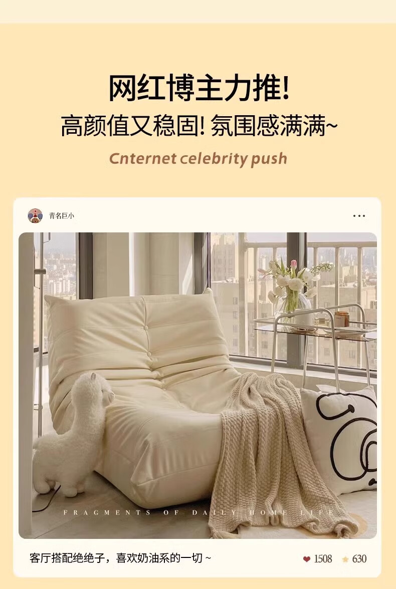 He Jiagong living room internet celebrity single sofa style balcony tatami sofa sponge rocking chair comfortable small apartment chair white - velvet fabric soft and skin-friendly