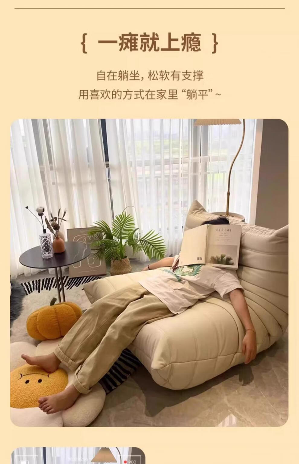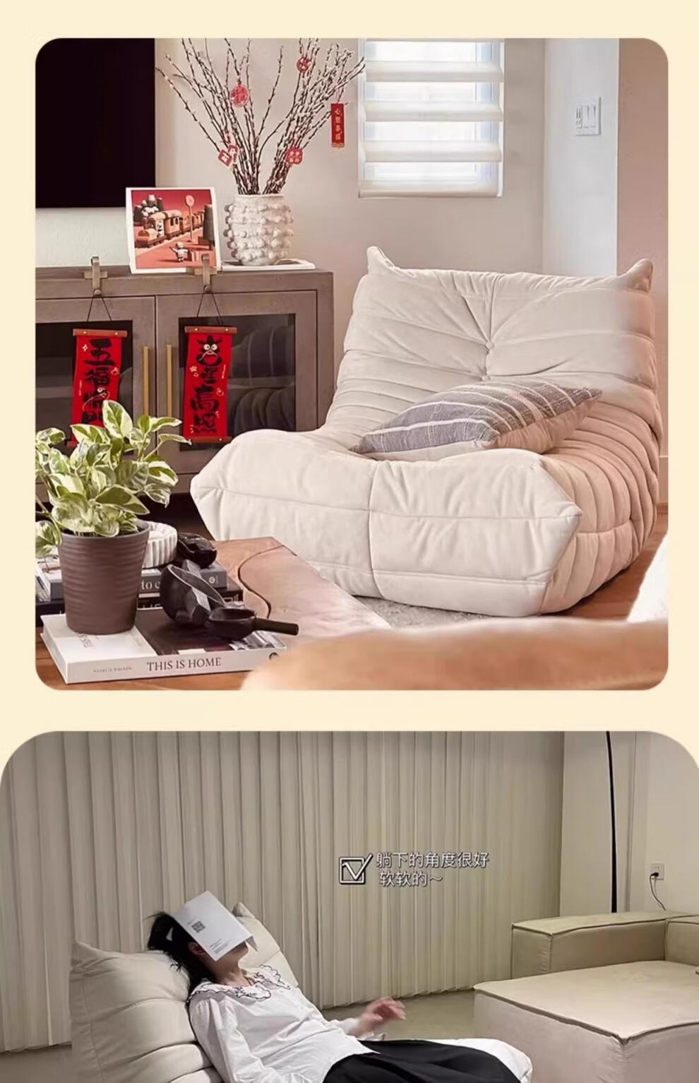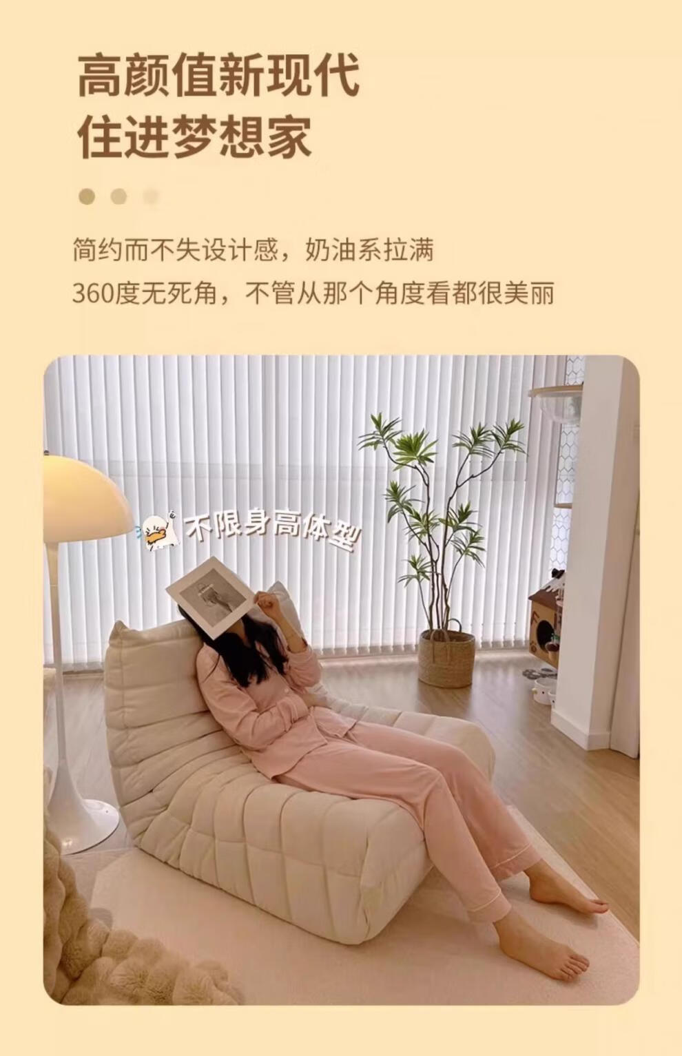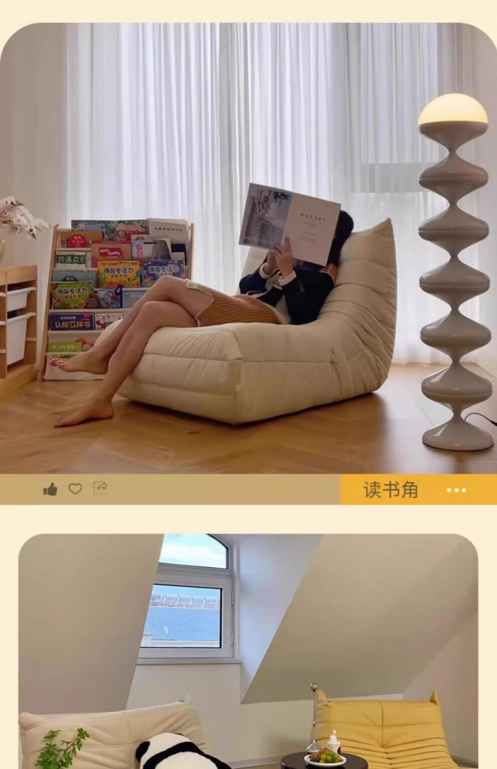 He Jiagong living room internet celebrity single sofa style balcony tatami sofa sponge rocking chair comfortable small apartment chair white - velvet fabric soft and skin-friendly