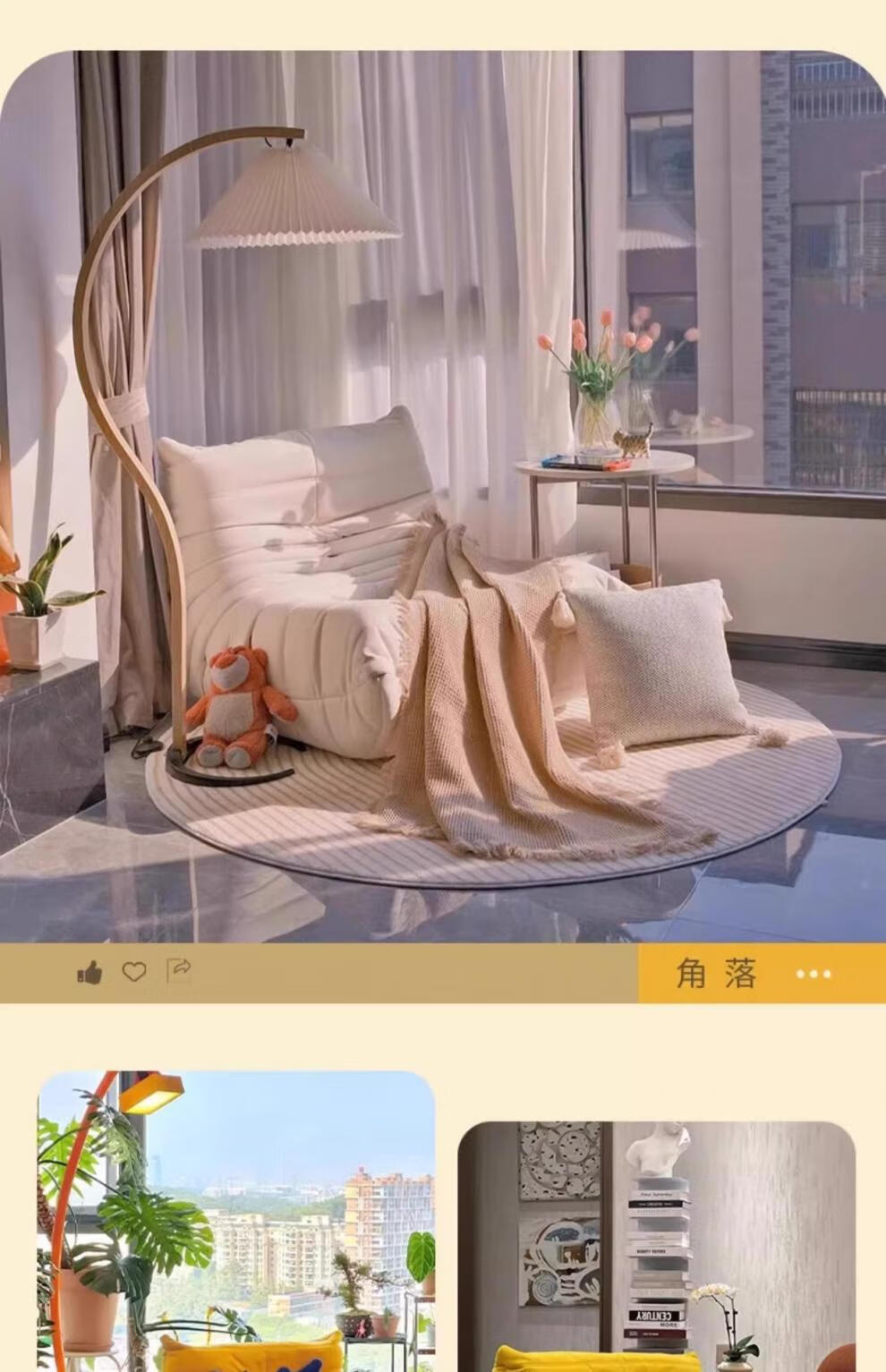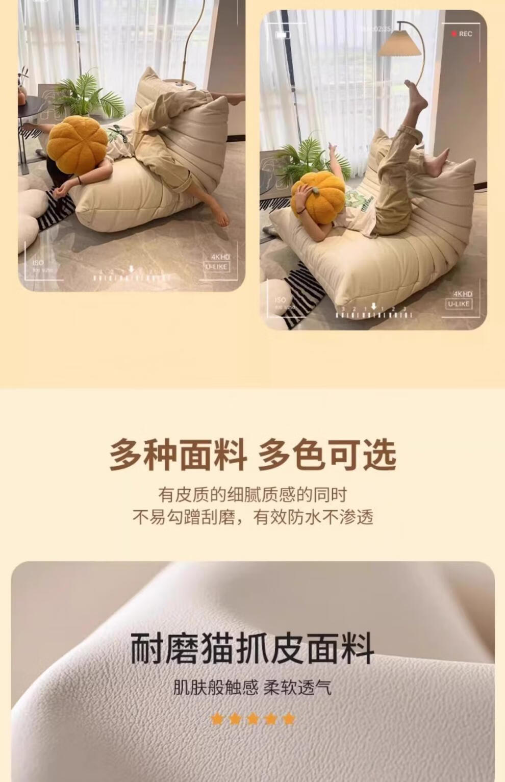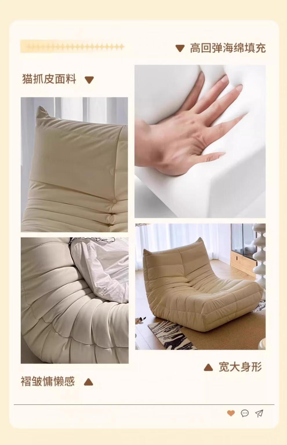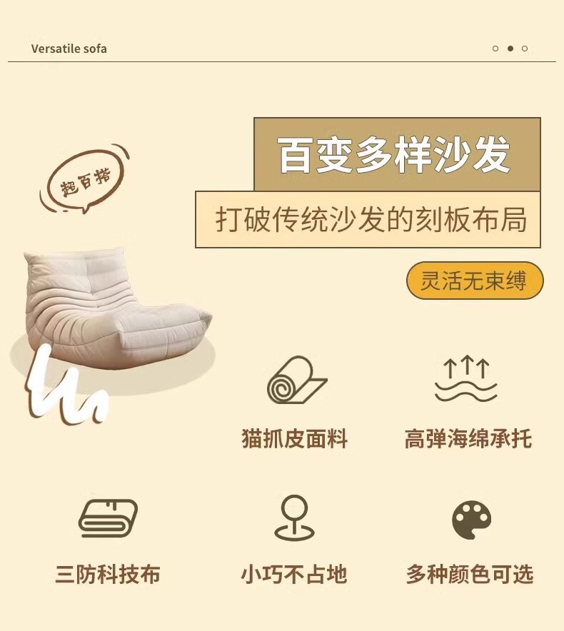 He Jiagong living room internet celebrity single sofa style balcony tatami sofa sponge rocking chair comfortable small apartment chair white - velvet fabric soft and skin-friendly