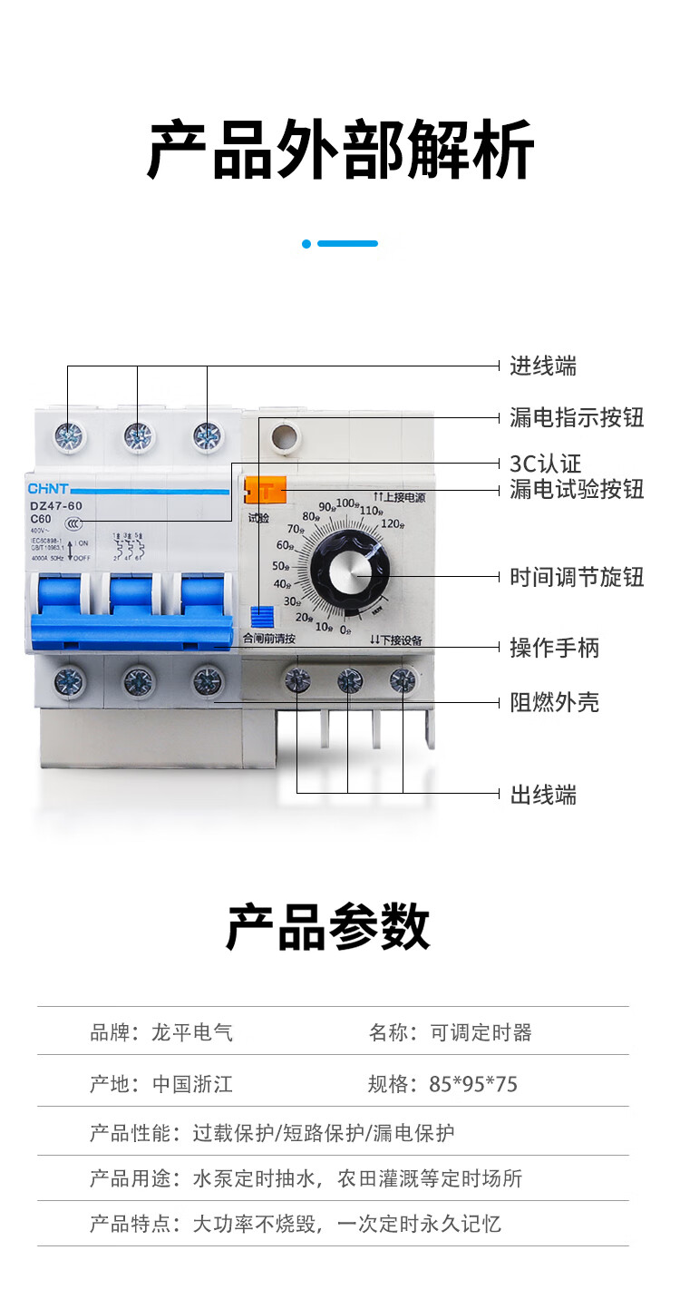 High-power three-phase 380V timer motor water pump timing switch pump timing three-phase three-wire timer 120 minutes
