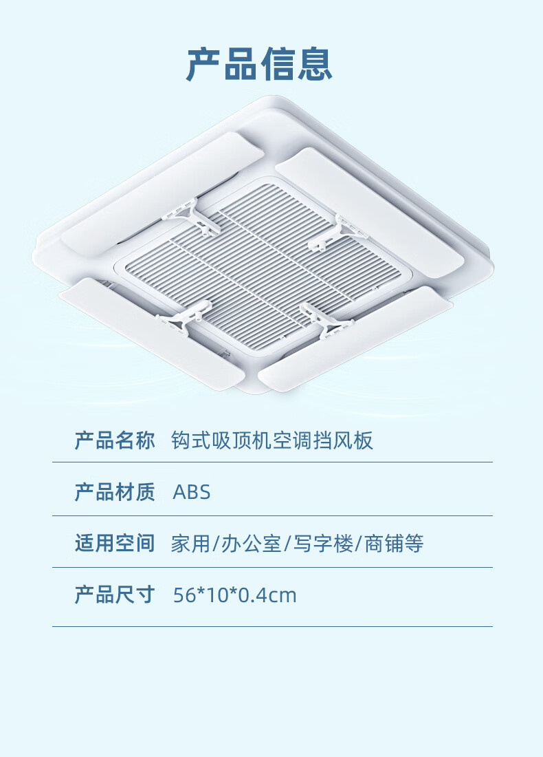 Lishi ceiling-mounted central air-conditioning windshield, wind guide, cold air outlet baffle, universal windshield to prevent direct blowing, 4 pieces (send aluminum foil waterproof cotton) 11*56CM 56x11x0.5cm