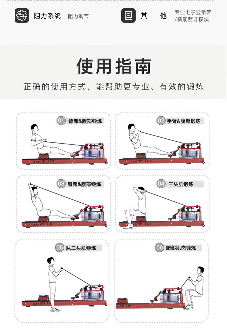 YINGJIMEI YINGJIMEI water resistance rowing machine gym quality rowing machine boat folding card house machine folding light walnut color smart APP can be connected