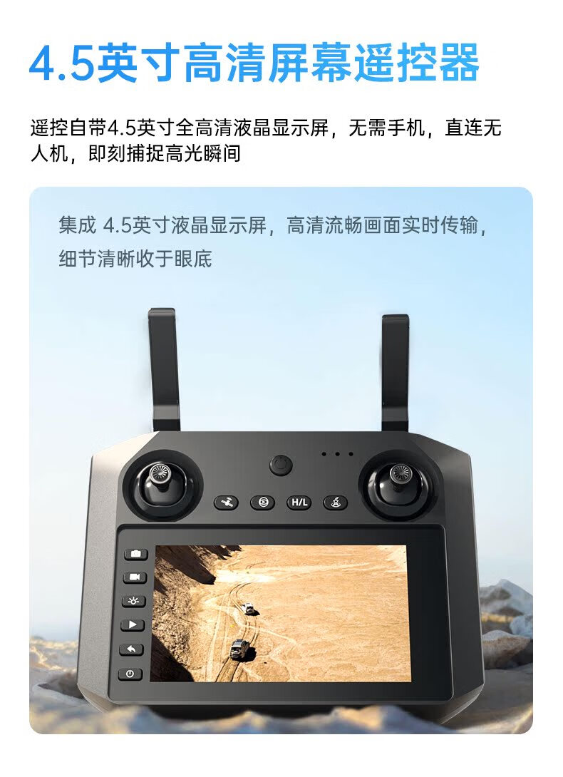 LCD remote control drone with screen, HD GPS, professional aerial photography remote control aircraft, student aircraft, boy gift, 4.5-inch large screen, 8K ESC three-camera/real-time image transmission/smart 5, recommended dual batteries, free storage bag + vulnerable accessories, lifetime warranty