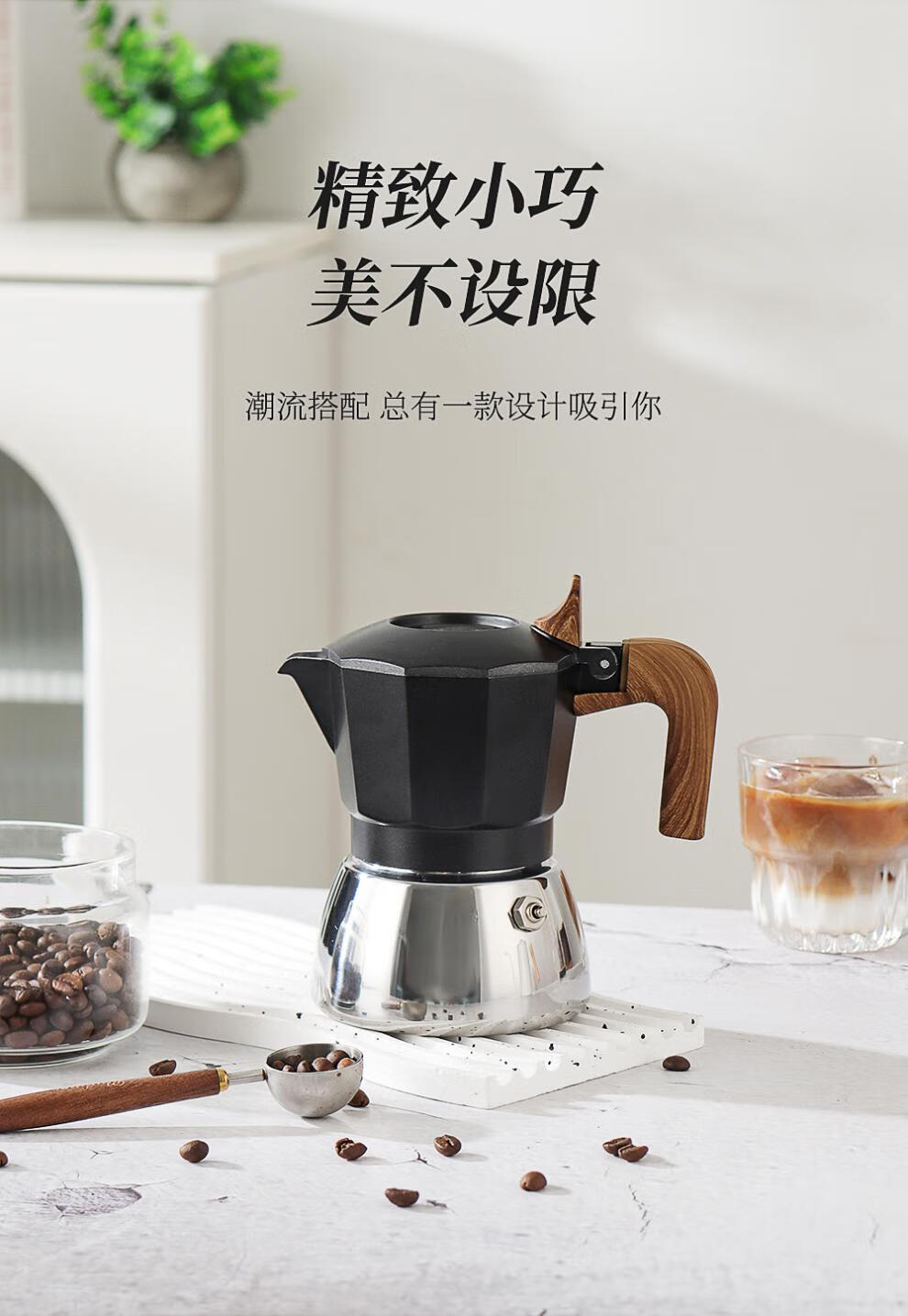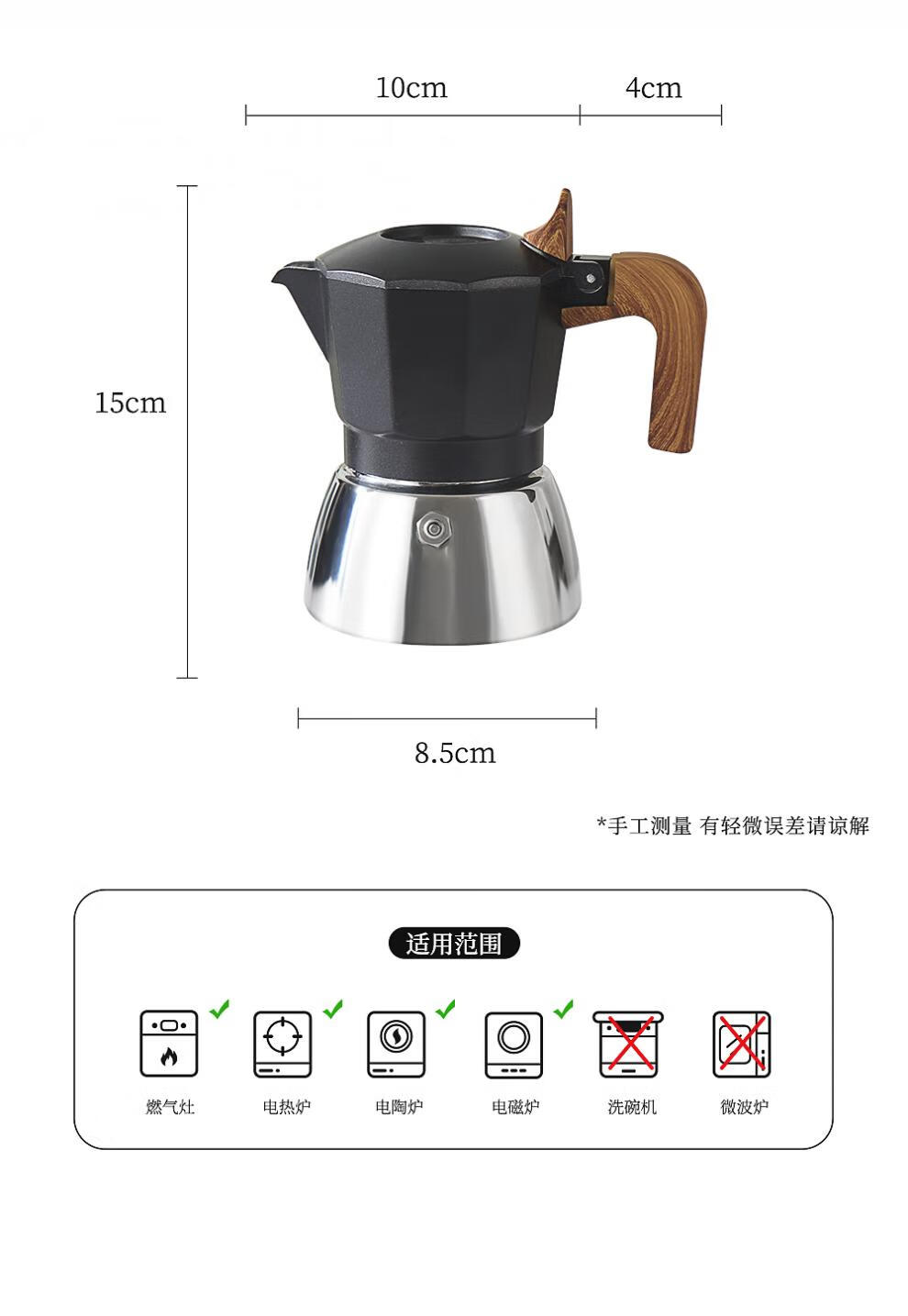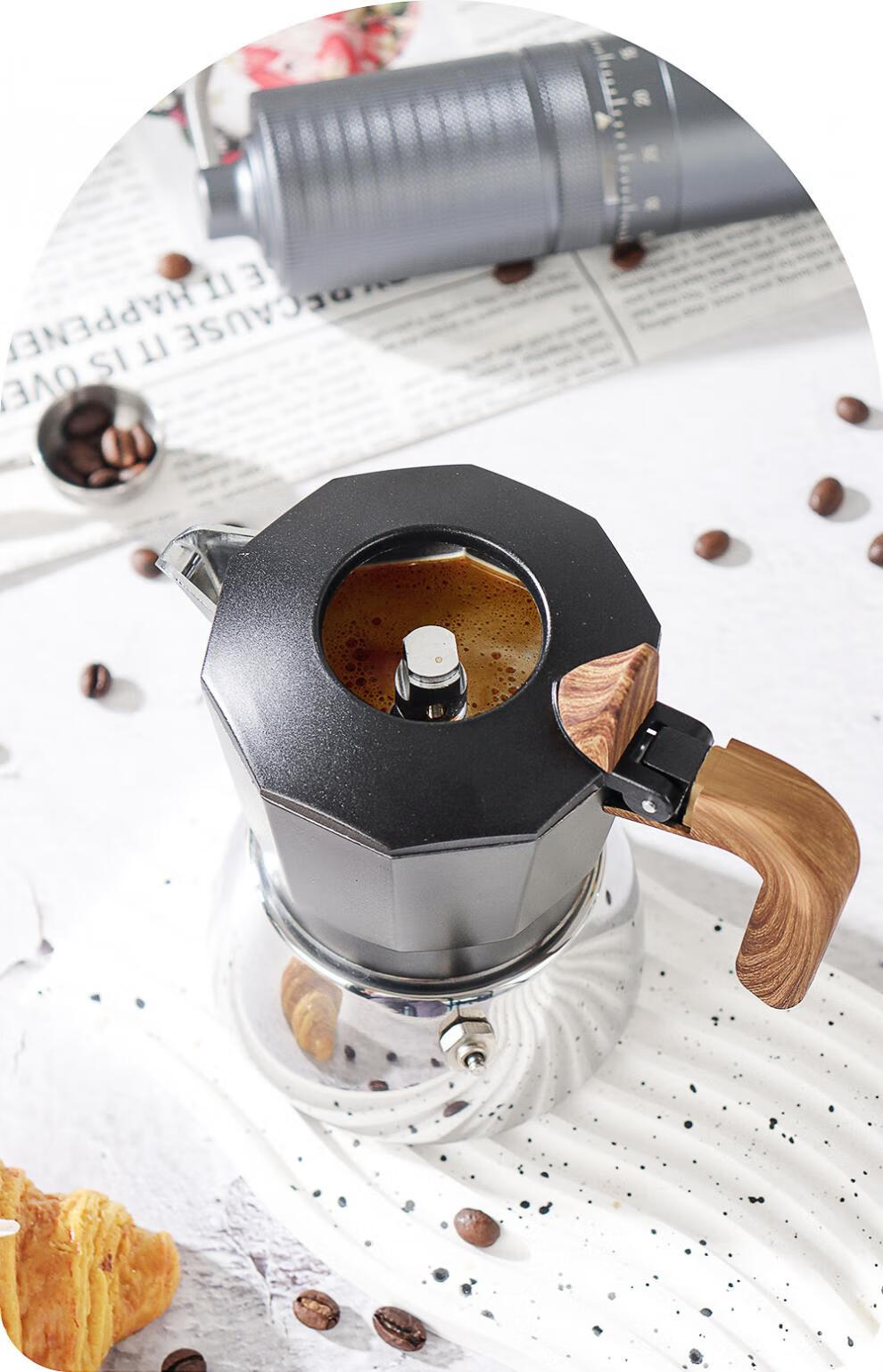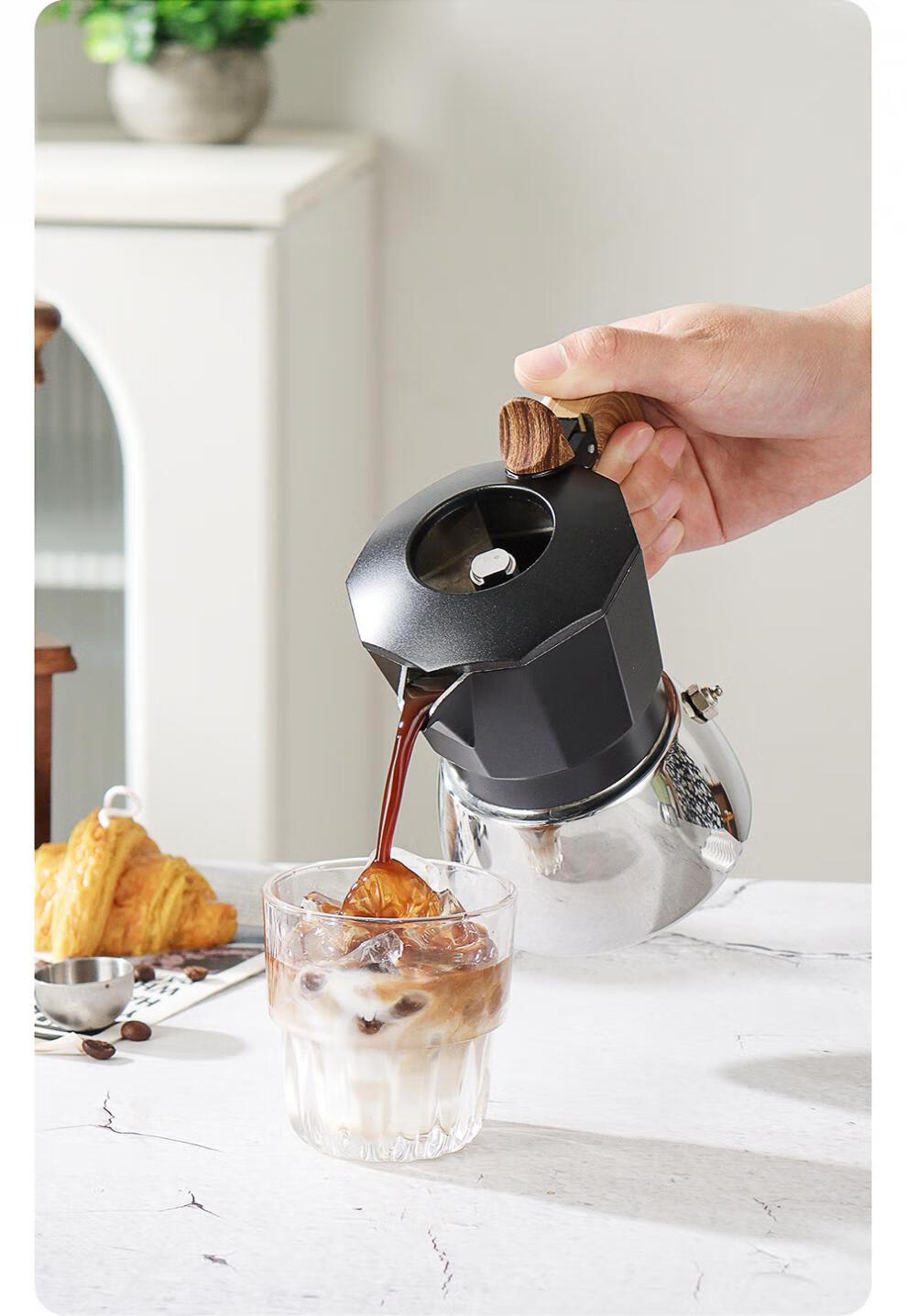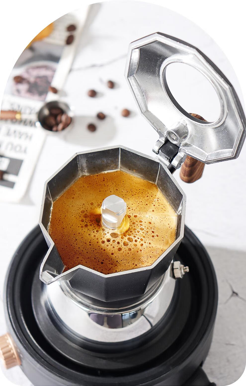 Minggan Double Valve Stainless Steel Moka Pot Home Espresso Machine Black Double Valve 2 Cups (comes with filter paper)