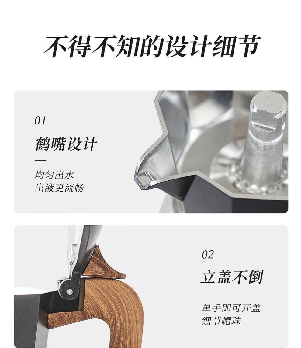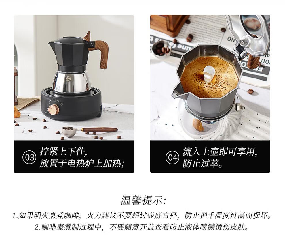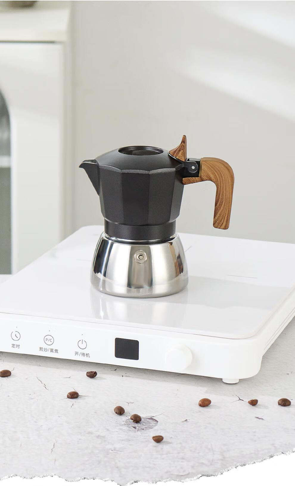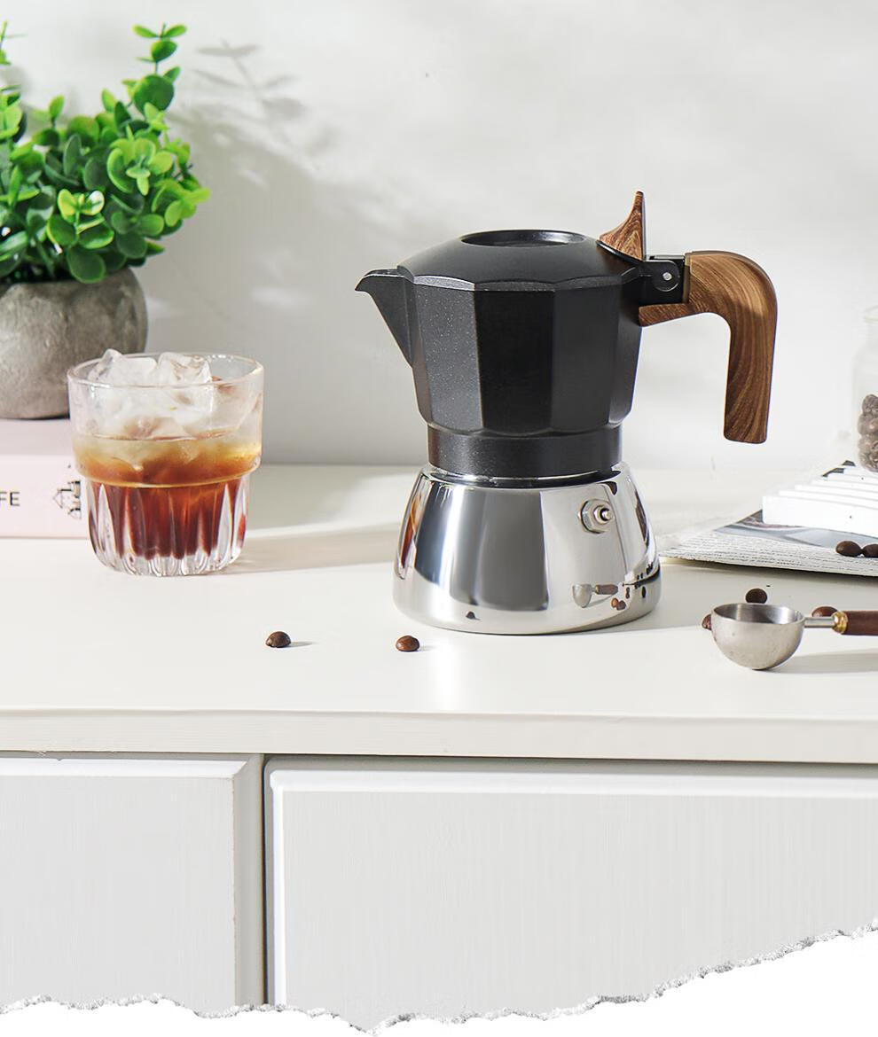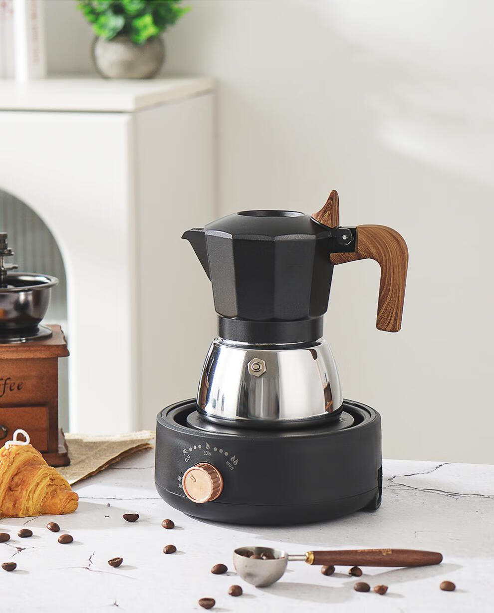 Minggan Double Valve Stainless Steel Moka Pot Home Espresso Machine Black Double Valve 2 Cups (comes with filter paper)