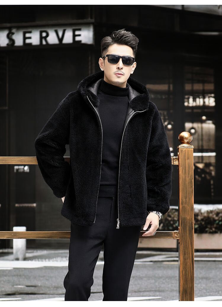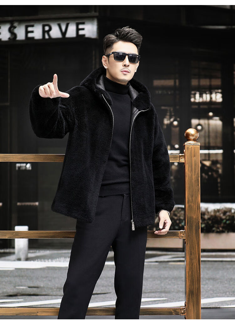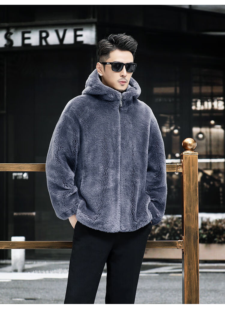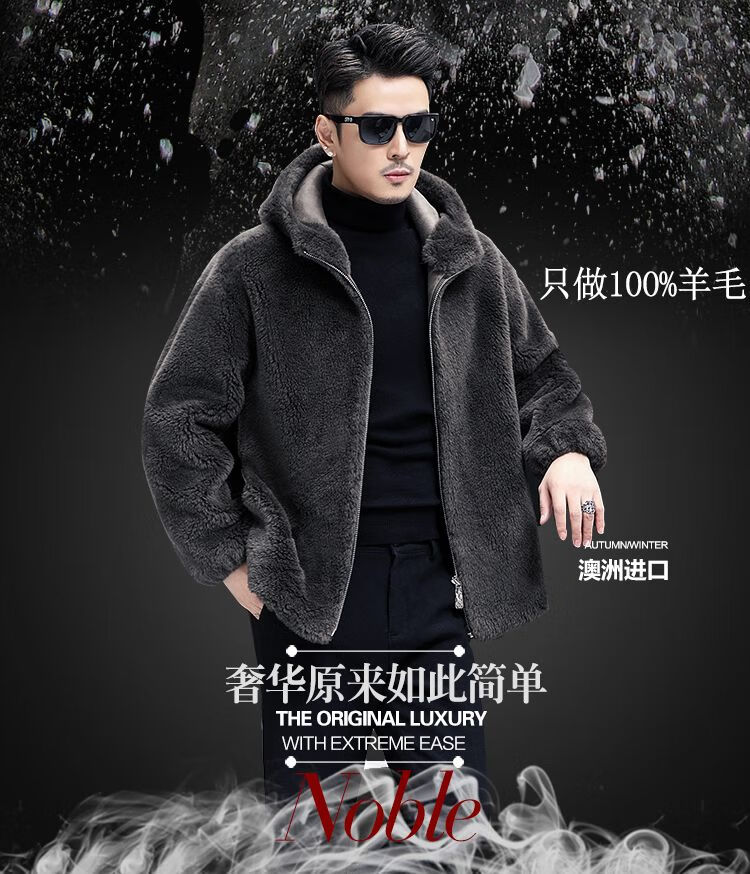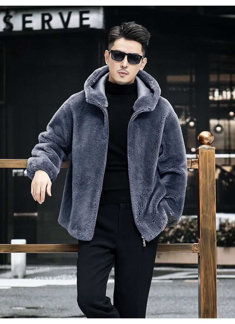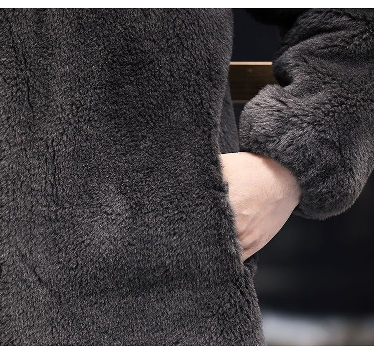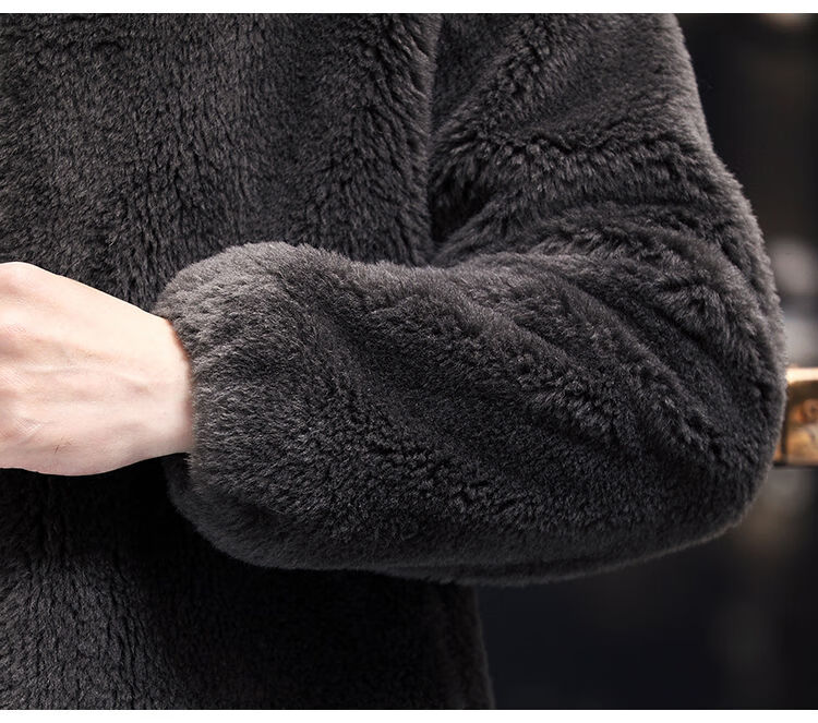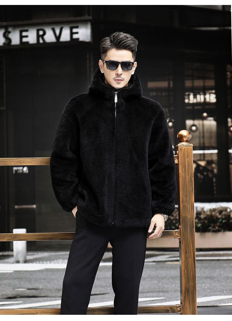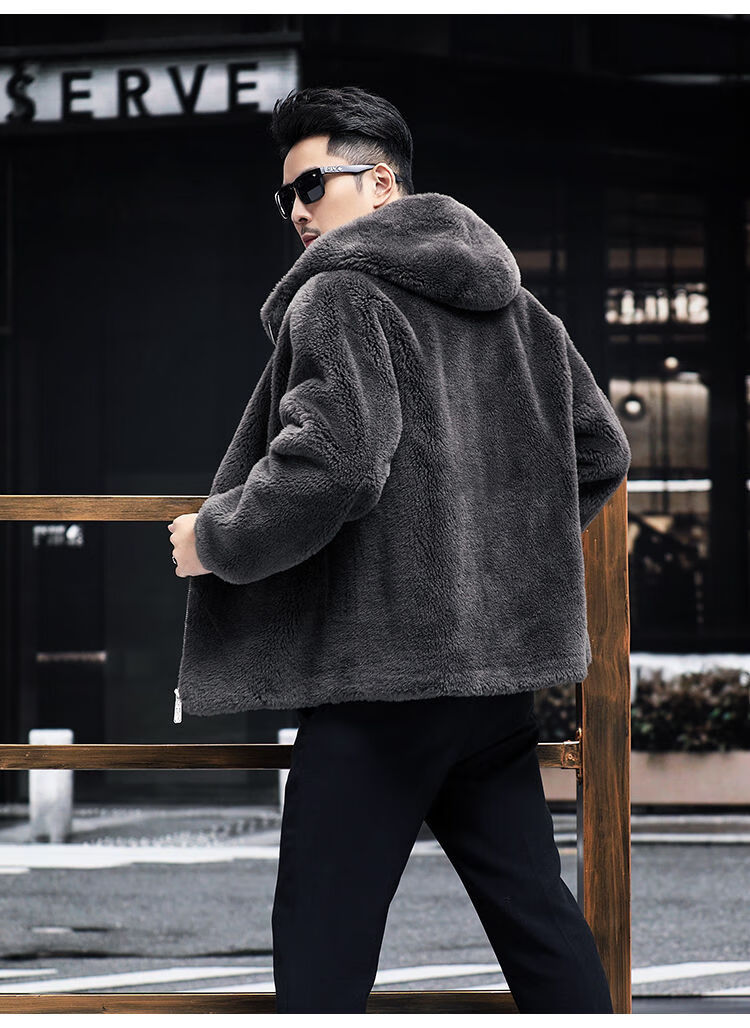 Pierre Cardin 100% Sheep Shear Coat Men's Genuine Sheep Fur All-in-One Reversible Lamb Fur Jacket Hooded Warm Winter Clothes Dark Gray M About 100 Jin
