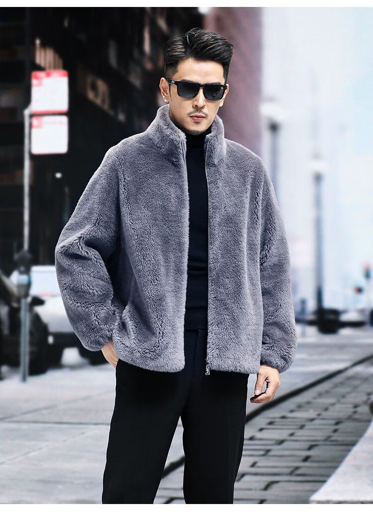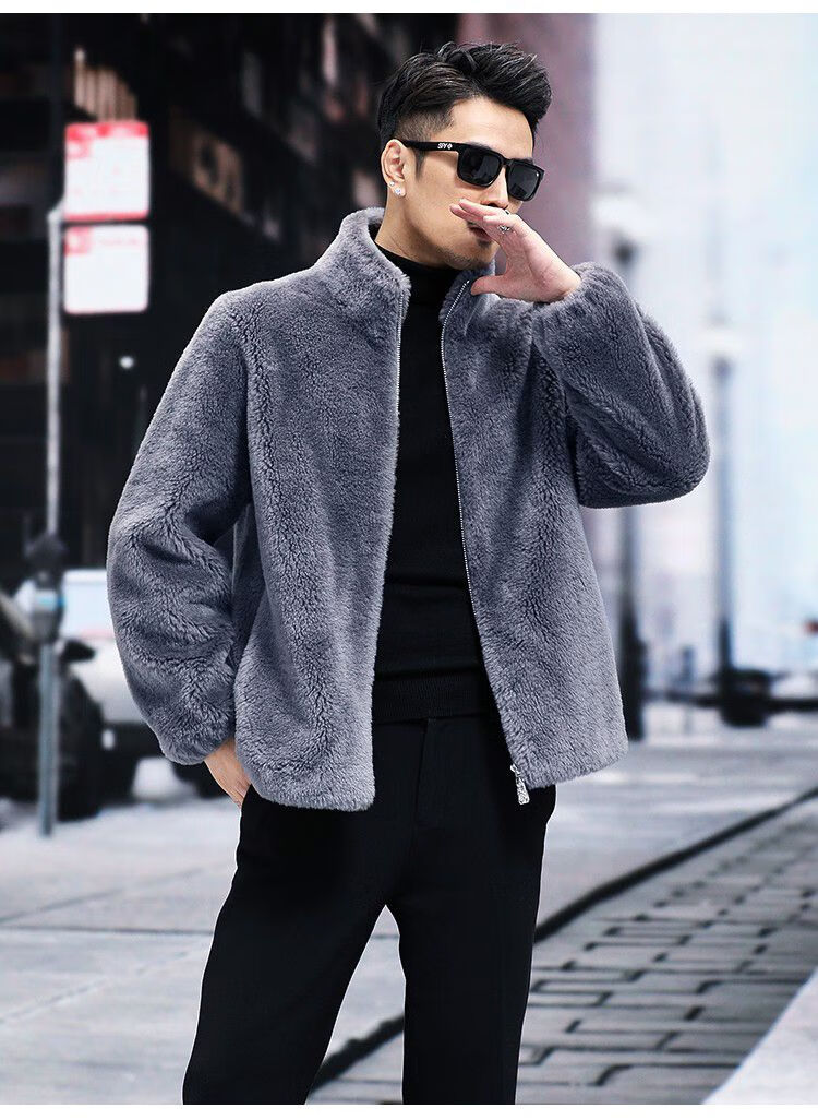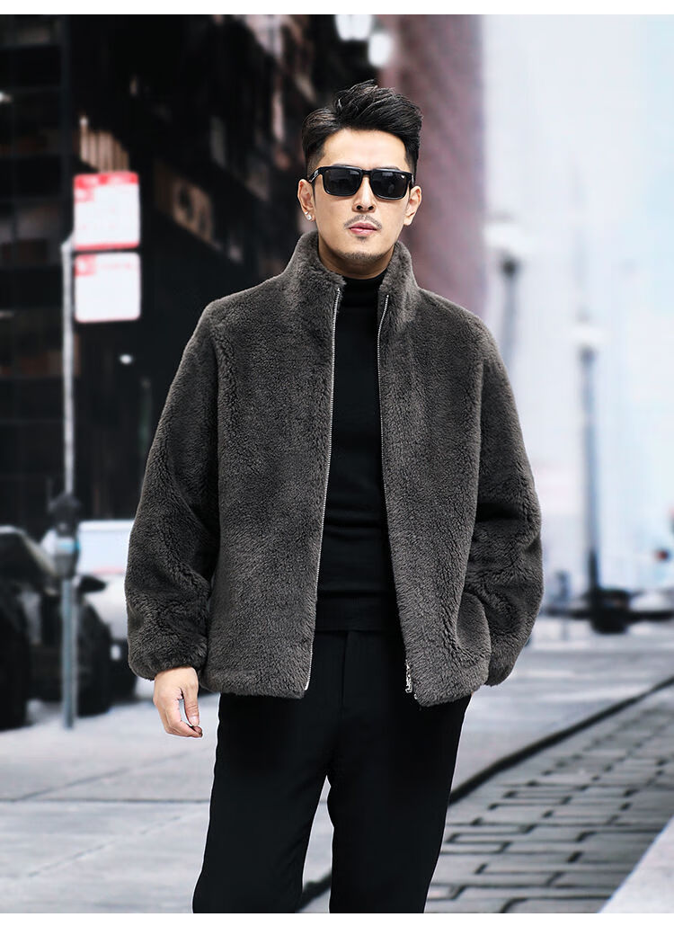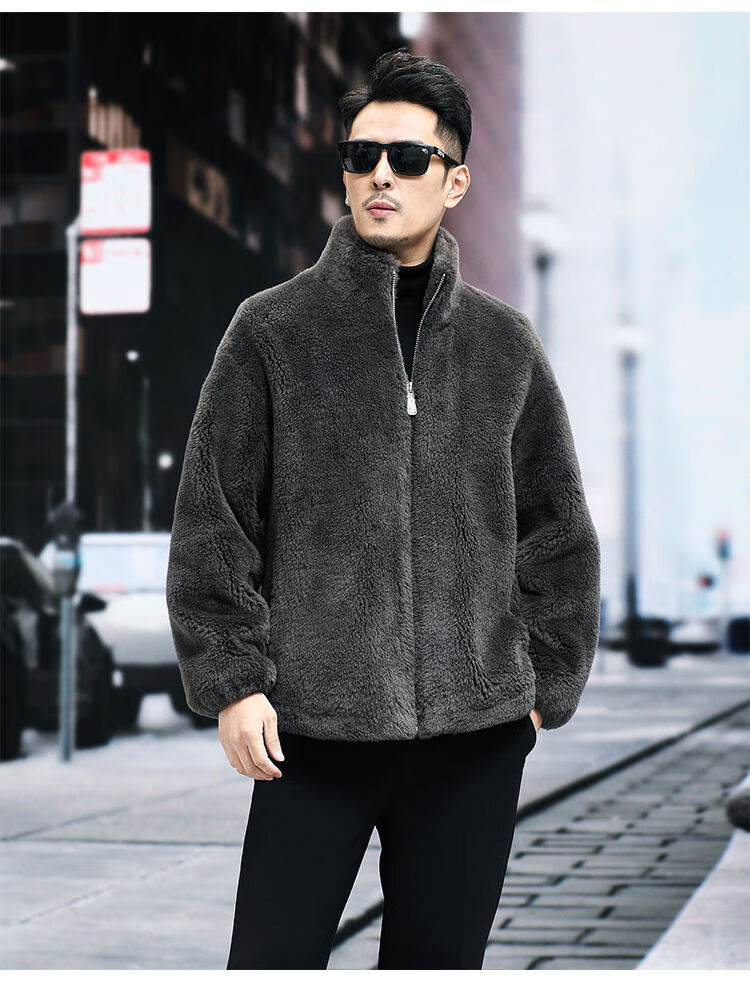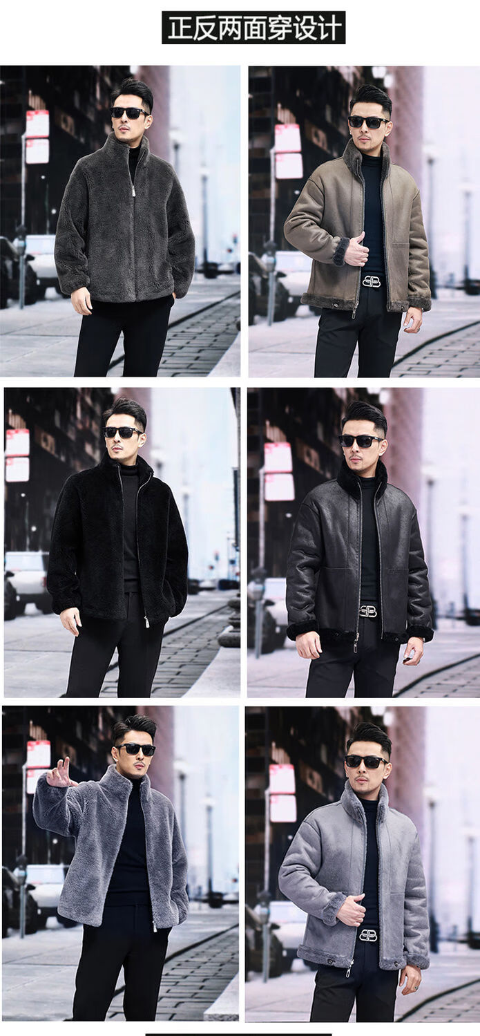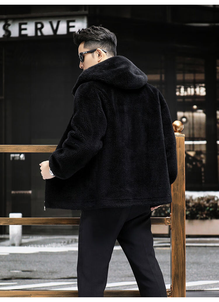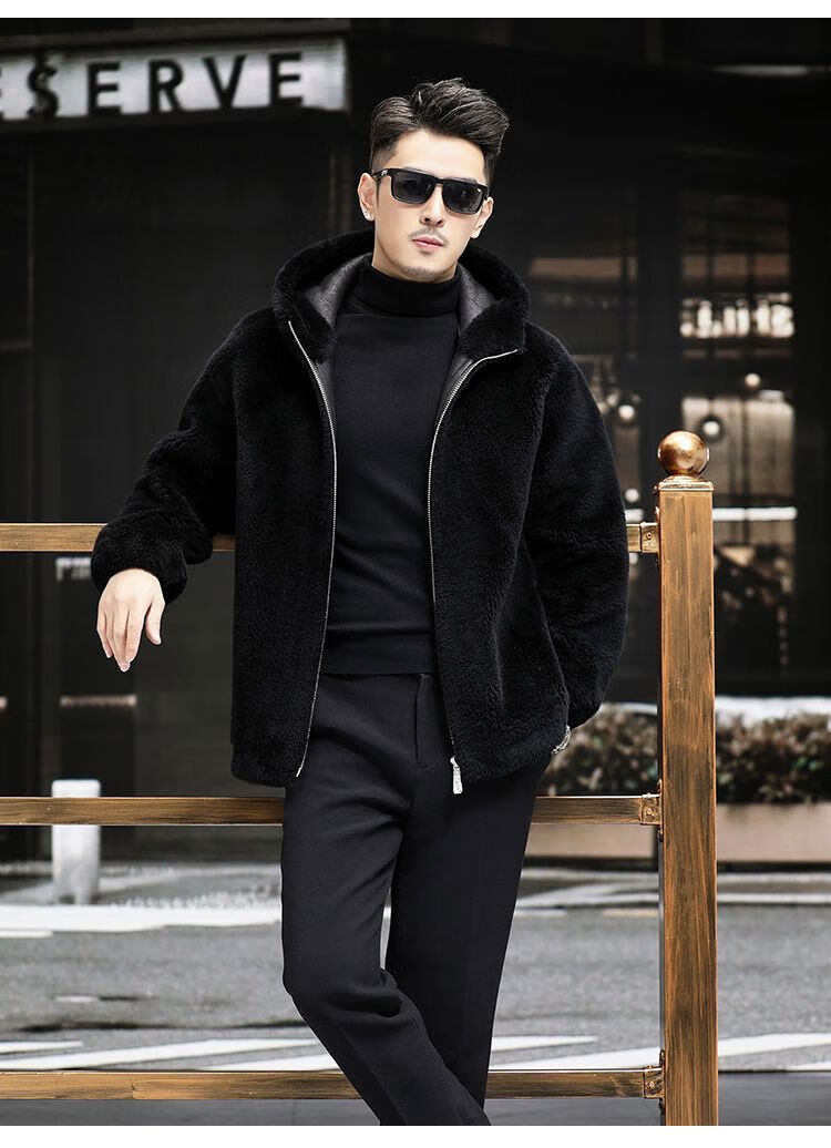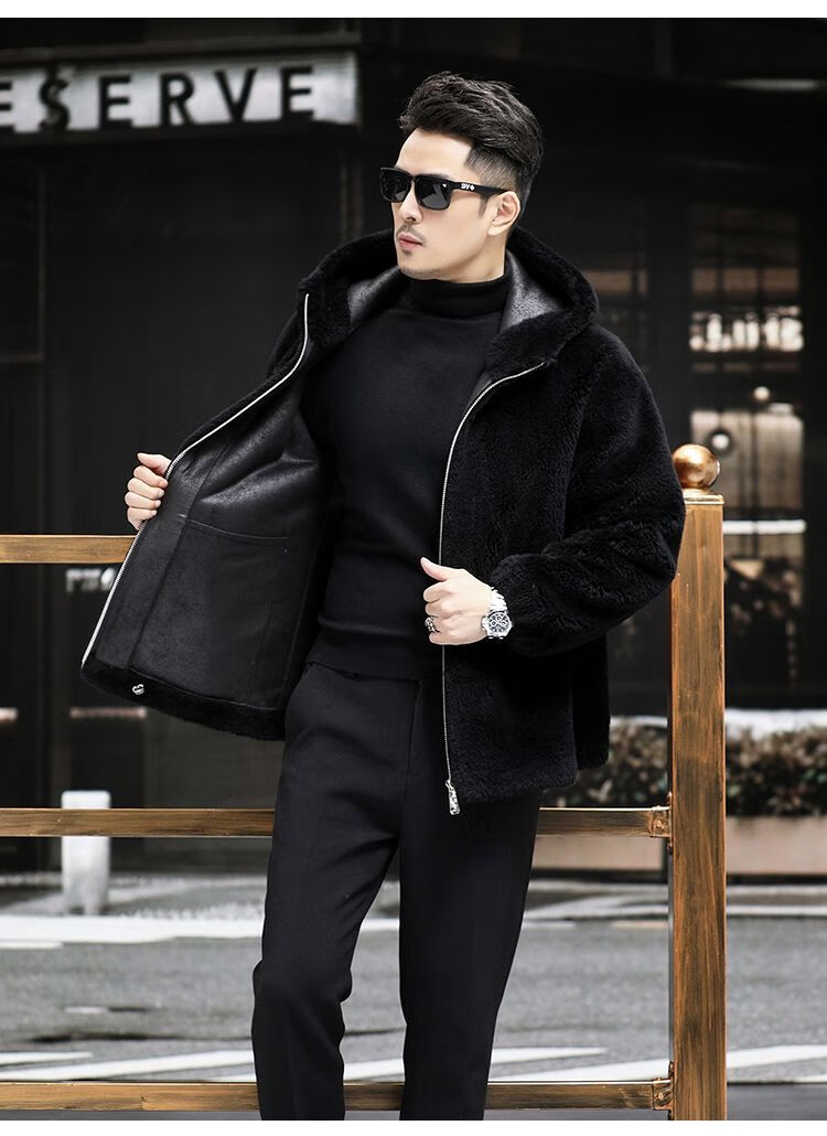 Pierre Cardin 100% Sheep Shear Coat Men's Genuine Sheep Fur All-in-One Reversible Lamb Fur Jacket Hooded Warm Winter Clothes Dark Gray M About 100 Jin