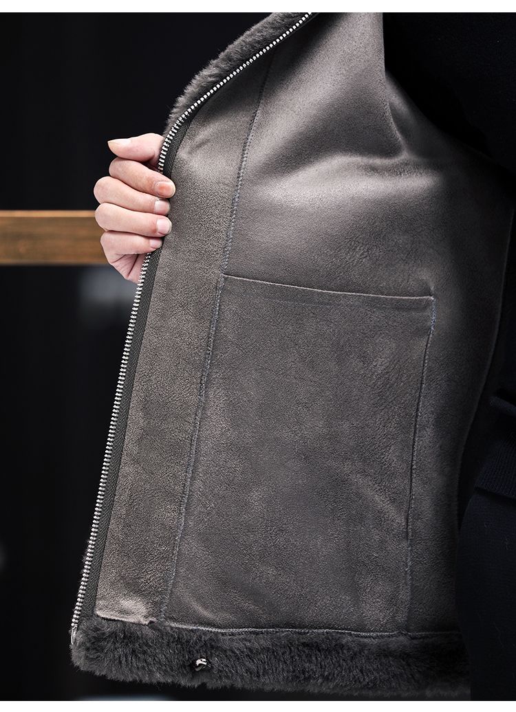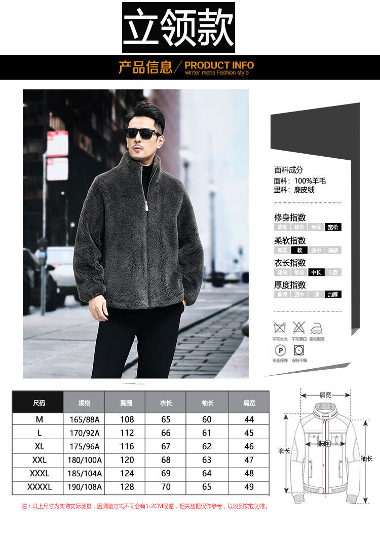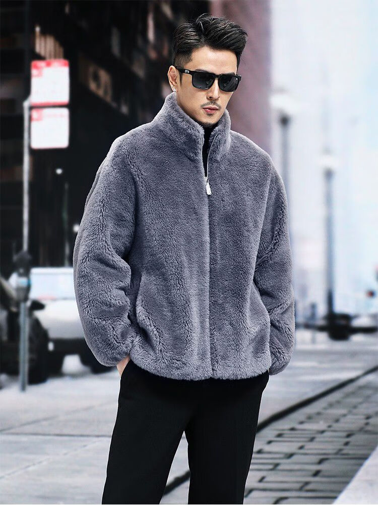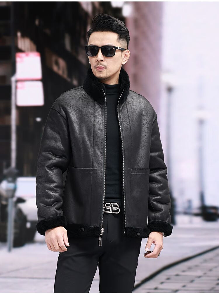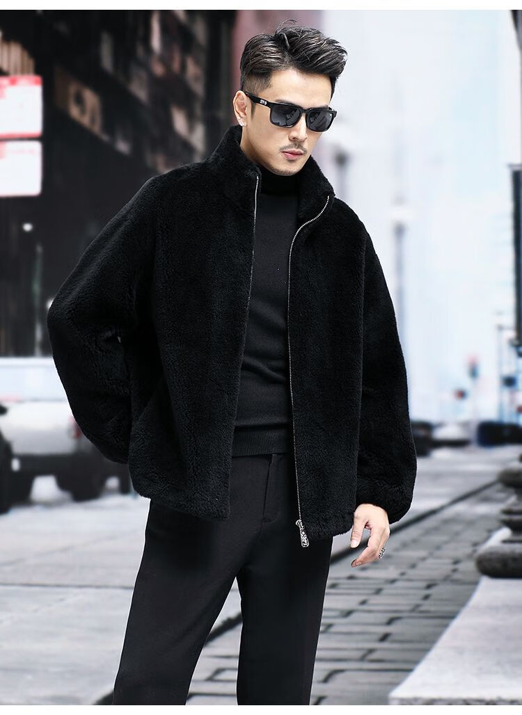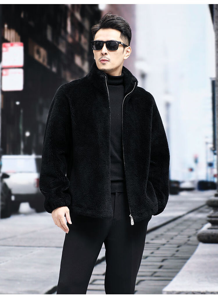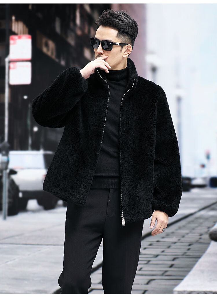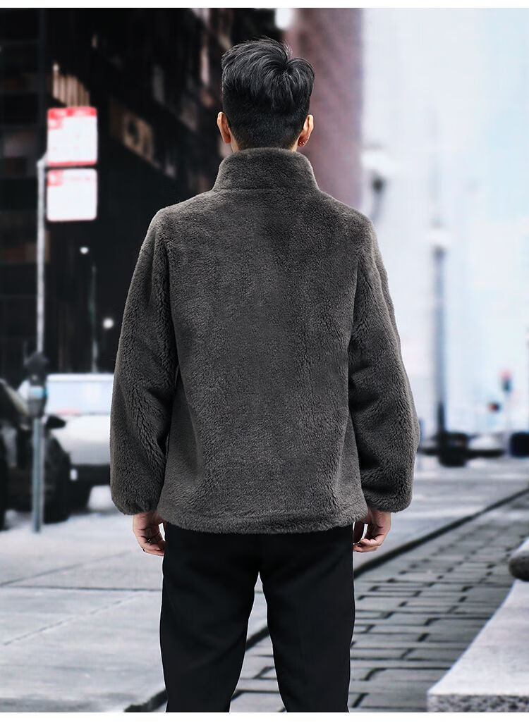 Pierre Cardin 100% Sheep Shear Coat Men's Genuine Sheep Fur All-in-One Reversible Lamb Fur Jacket Hooded Warm Winter Clothes Dark Gray M About 100 Jin