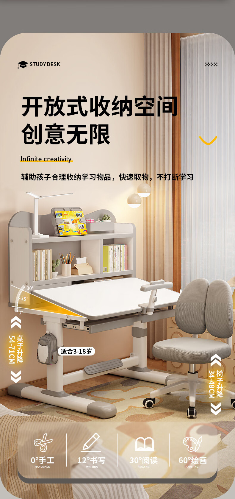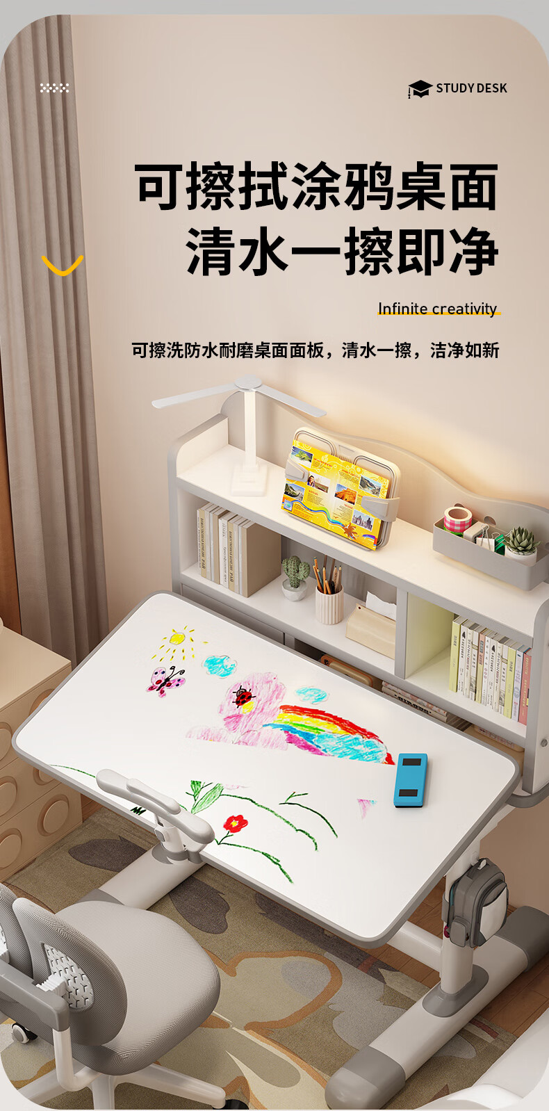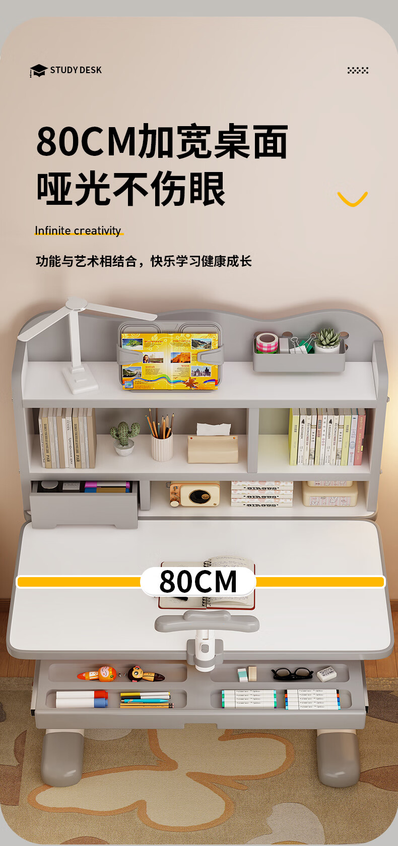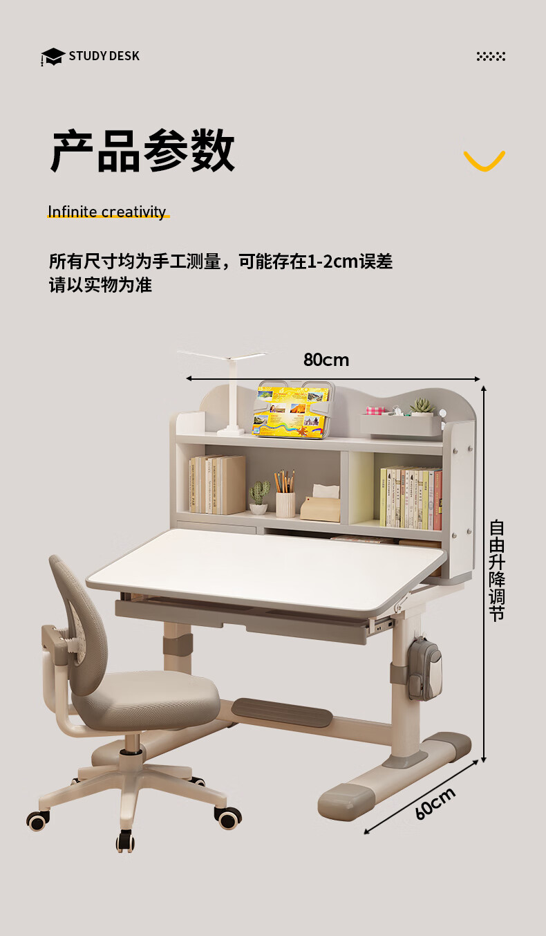 QIAOBAOBAO children's study desk and chair set can be raised and lowered with reading bookshelf, multi-functional desk and chair, student home desk, collection gray - environmentally friendly and aldehyde-resistant, three-layer large bookshelf
