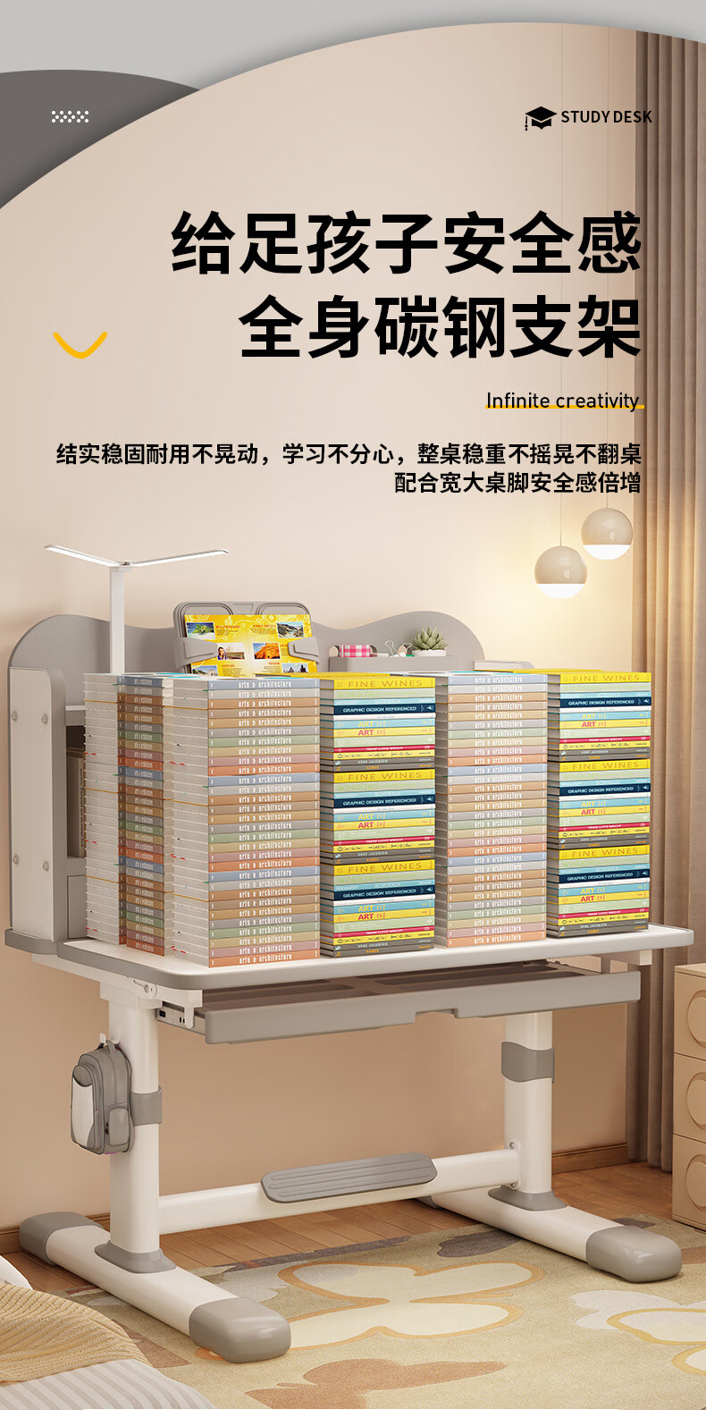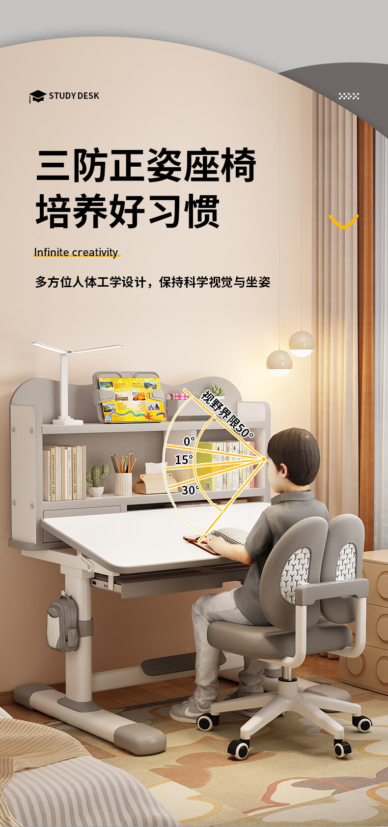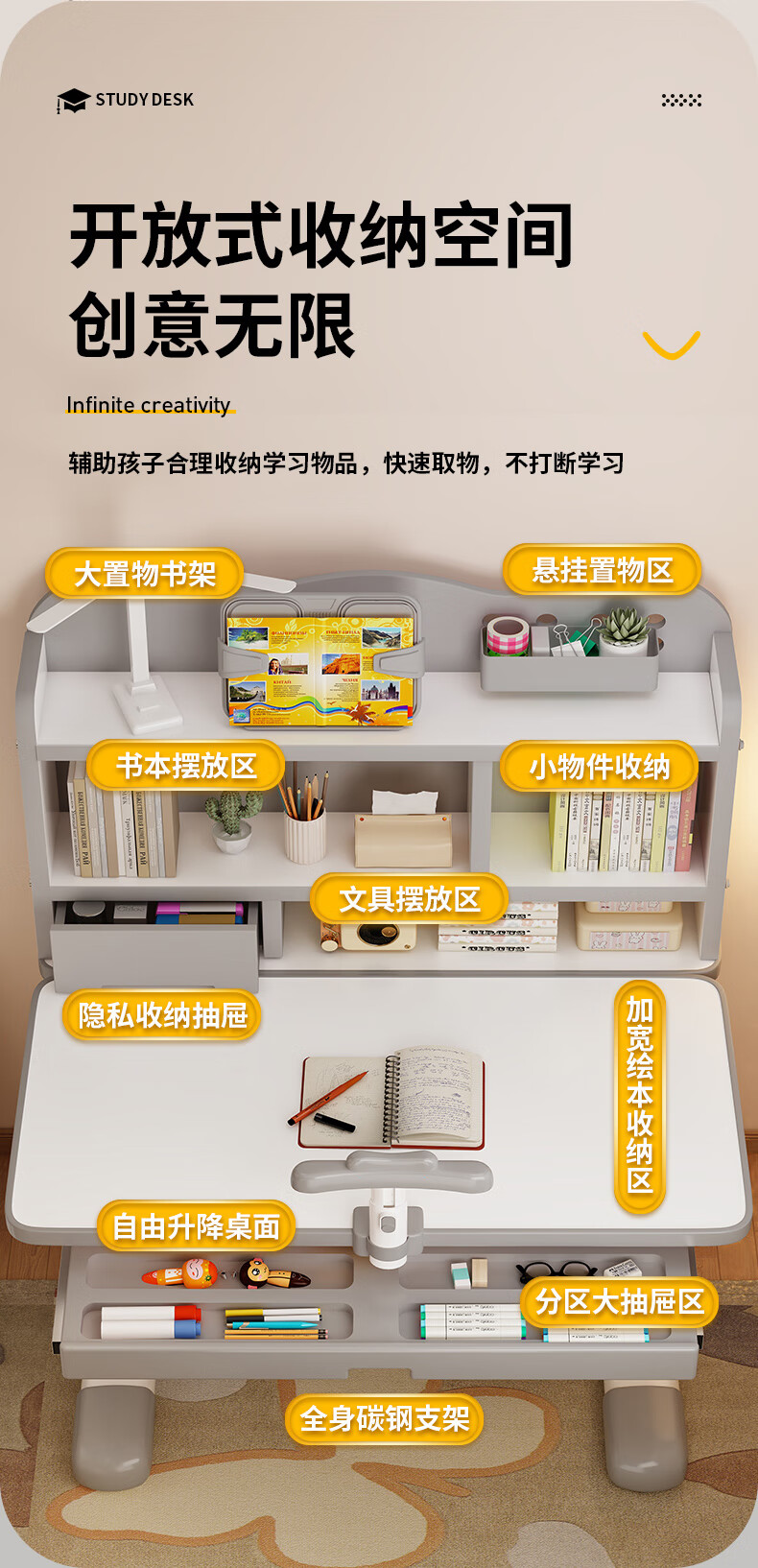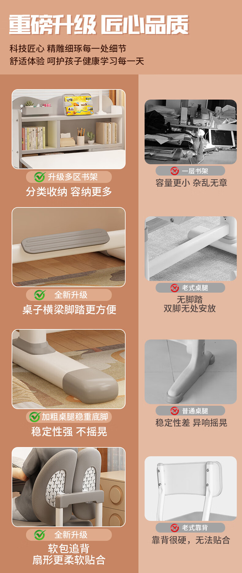 QIAOBAOBAO children's study desk and chair set can be raised and lowered with reading bookshelf, multi-functional desk and chair, student home desk, collection gray - environmentally friendly and aldehyde-resistant, three-layer large bookshelf