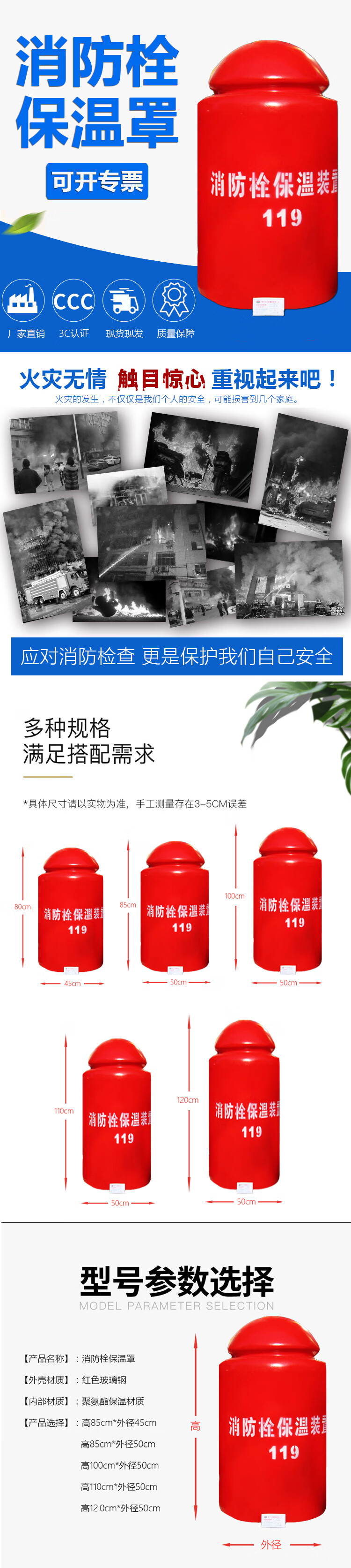 Outdoor fire hydrant insulation cover anti-freeze protective cover polyurethane above-ground fire hydrant insulation cover 85*50 fiberglass 80cm*45cm