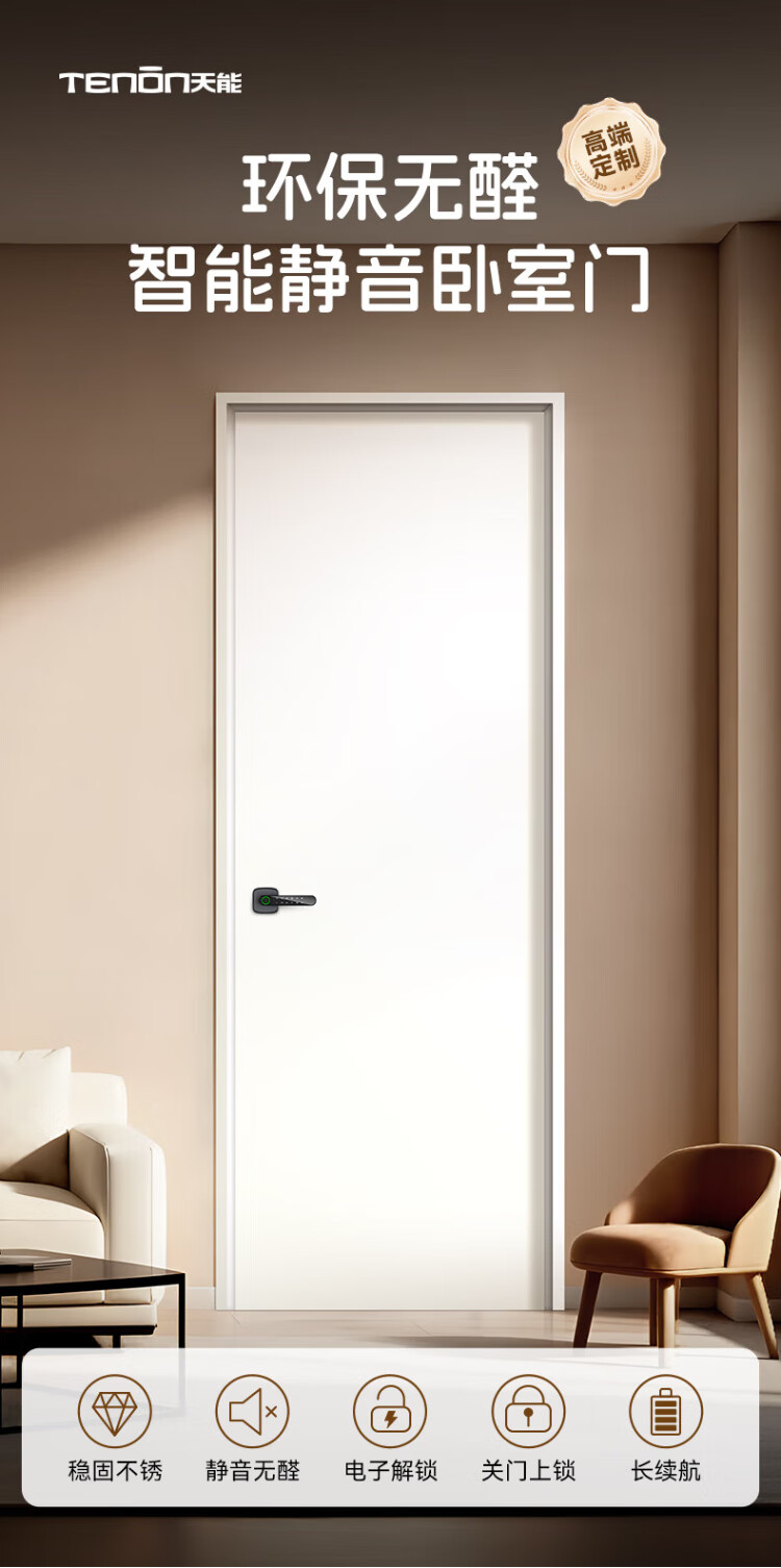 Asia Pacific Tianneng smart bedroom door minimalist wooden door room door household aluminum wooden door indoor door sound insulation durable door smart door S1 Caesar White + magnetic lock (installation included + hardware included)