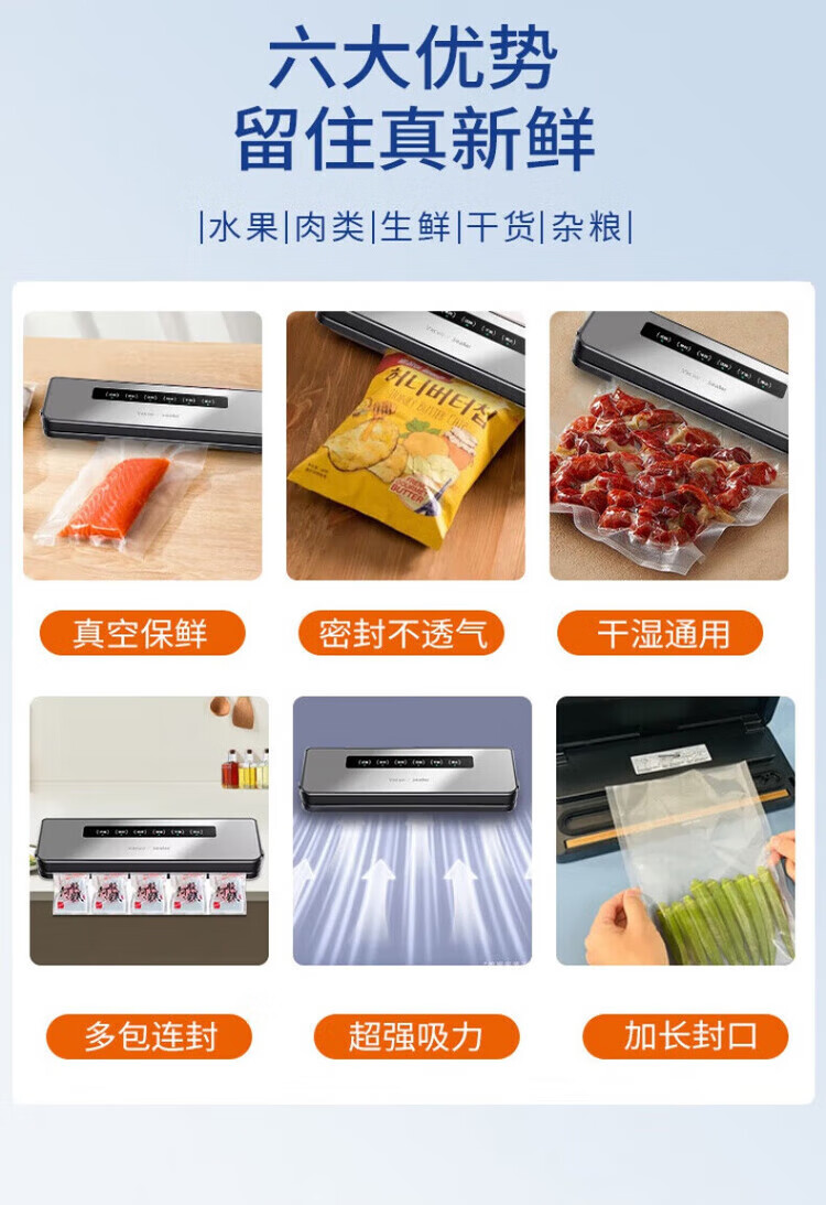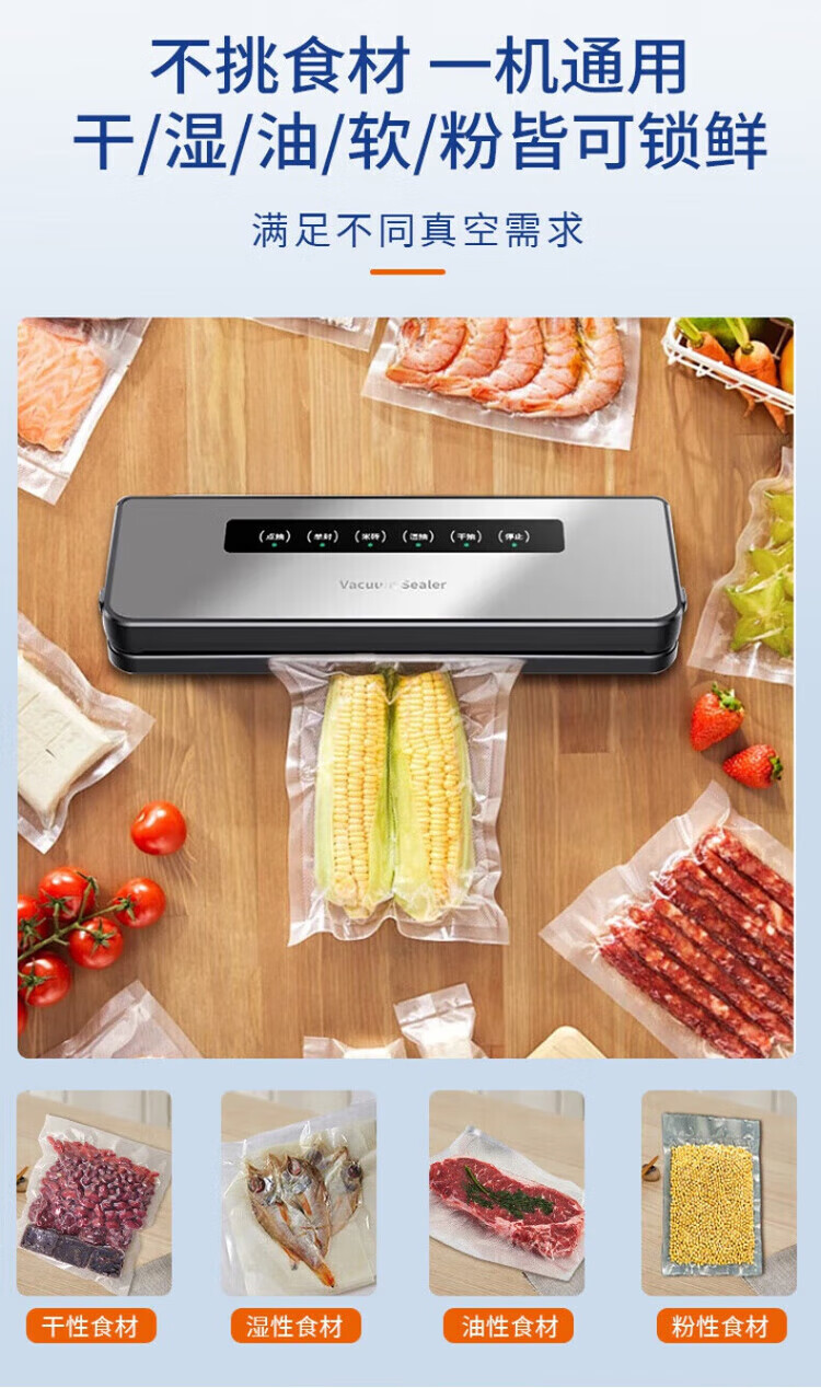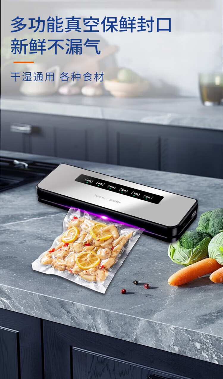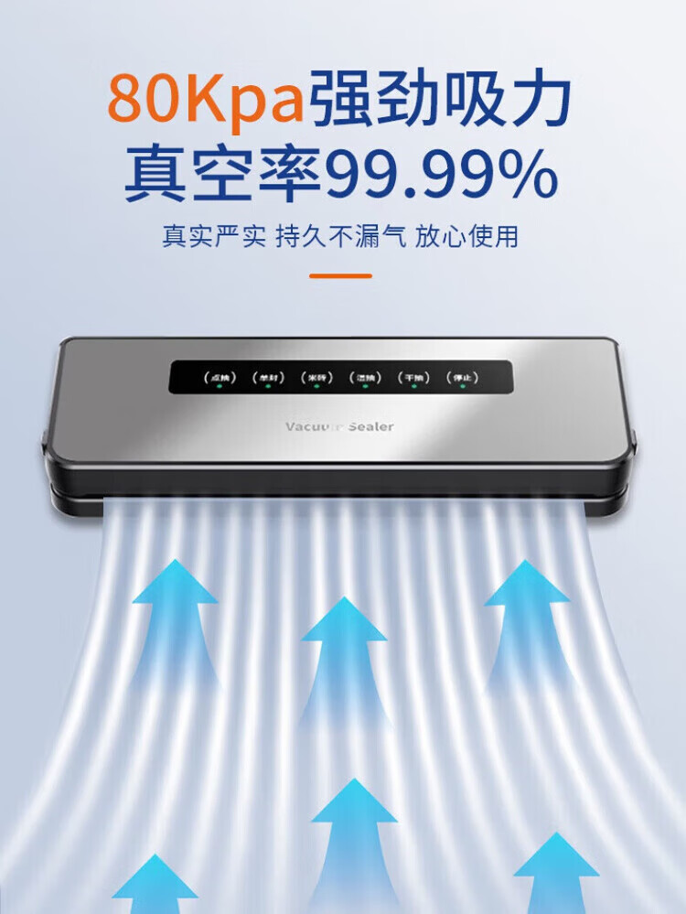 Feihelai vacuum sealing machine small household food packaging automatic vacuum plastic sealing silver gray - 10 bags 80kpa suction power