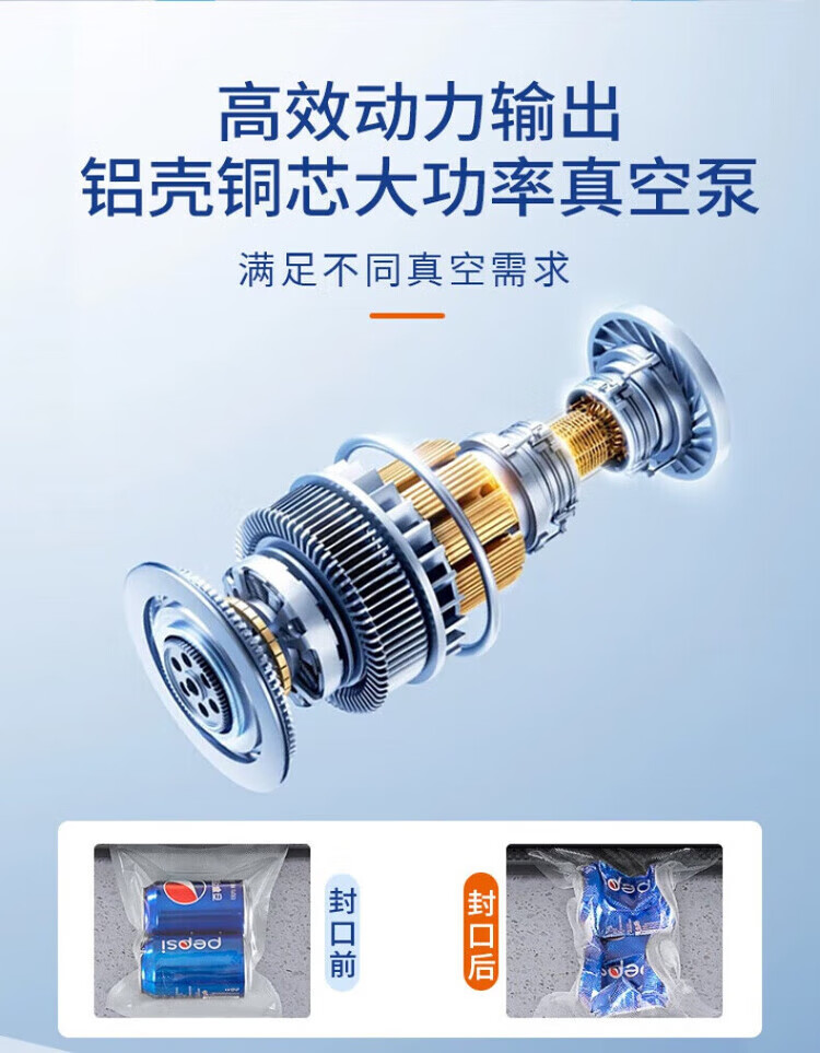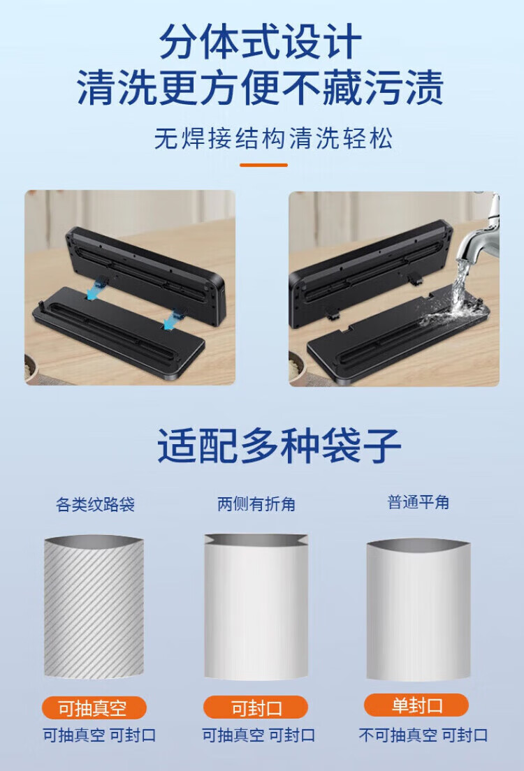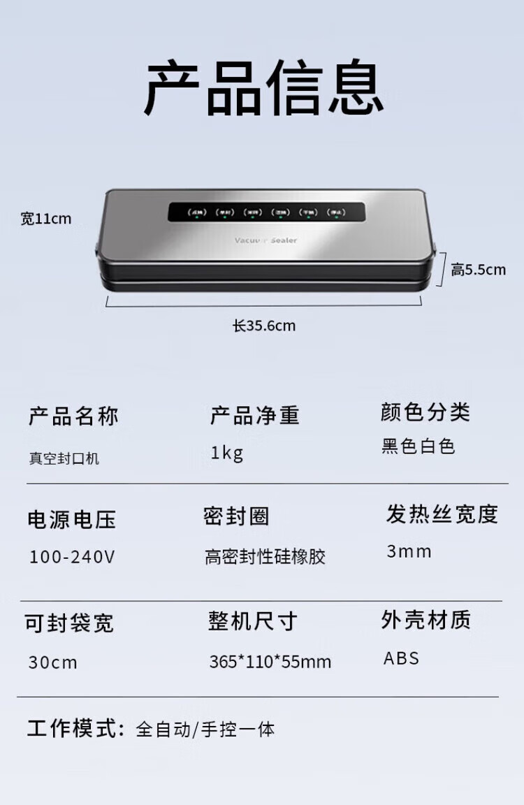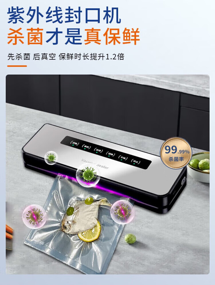 Feihelai vacuum sealing machine small household food packaging automatic vacuum plastic sealing silver gray - 10 bags 80kpa suction power