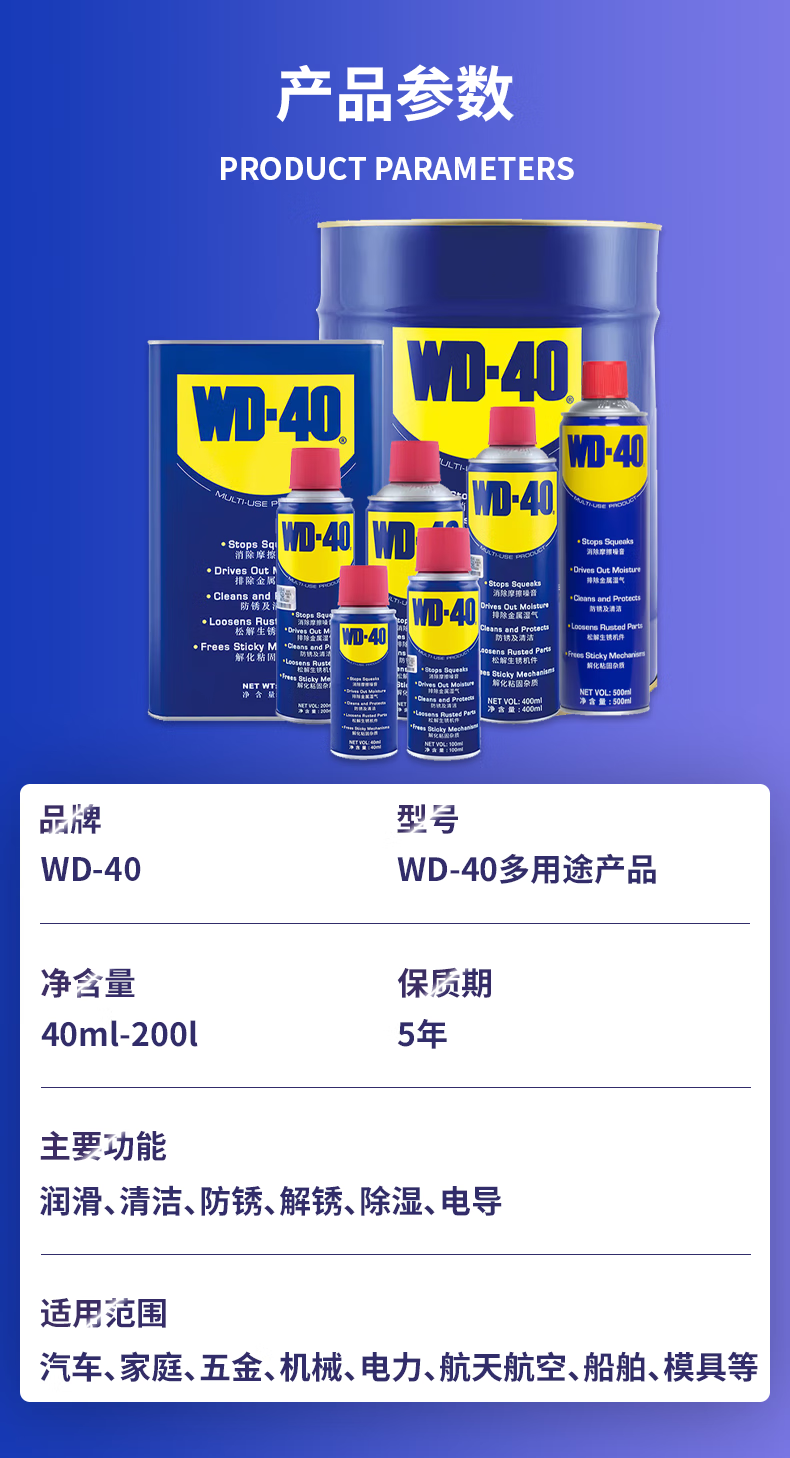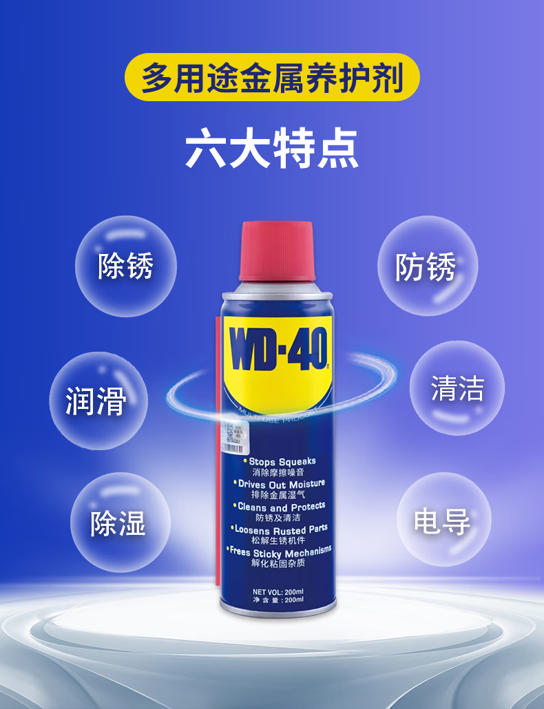 WD-40 multi-purpose metal curing agent, household lubrication, rust removal, derusting, dehumidification, cleaning, conductive industrial automobile screws, 40ml trial pack, single bottle