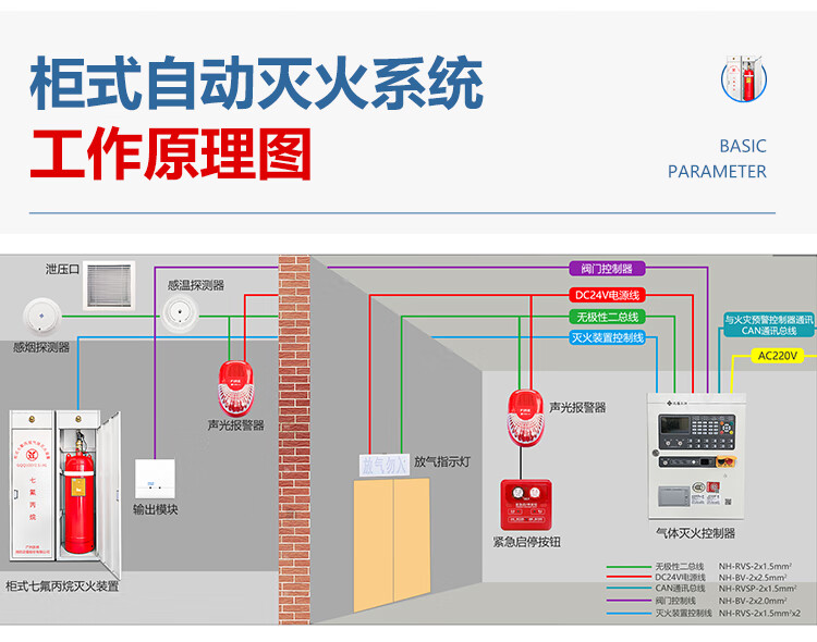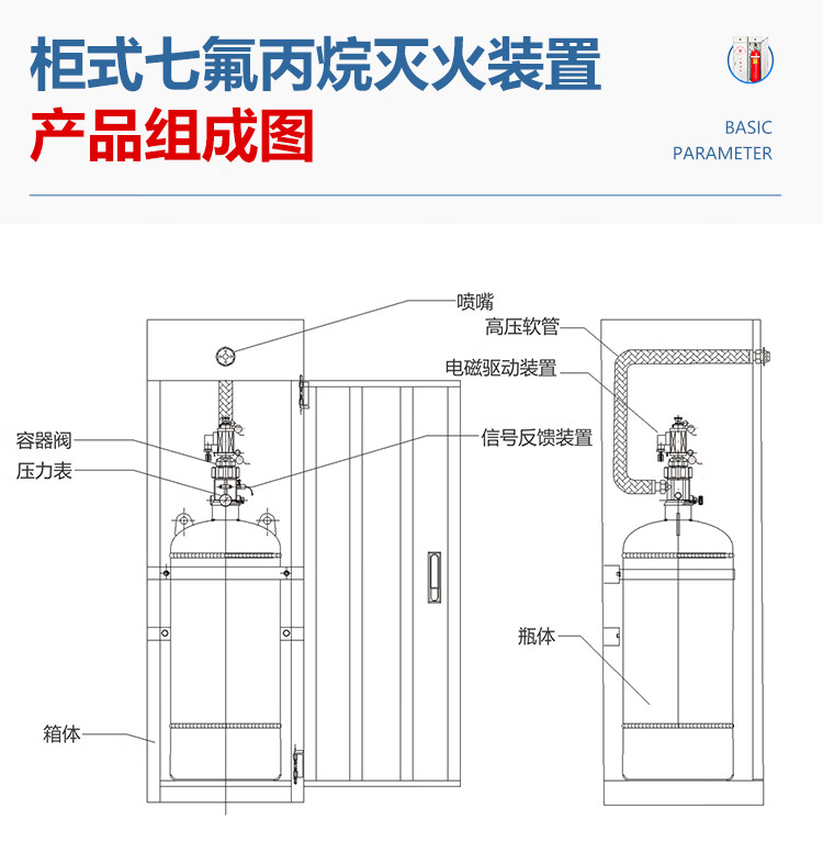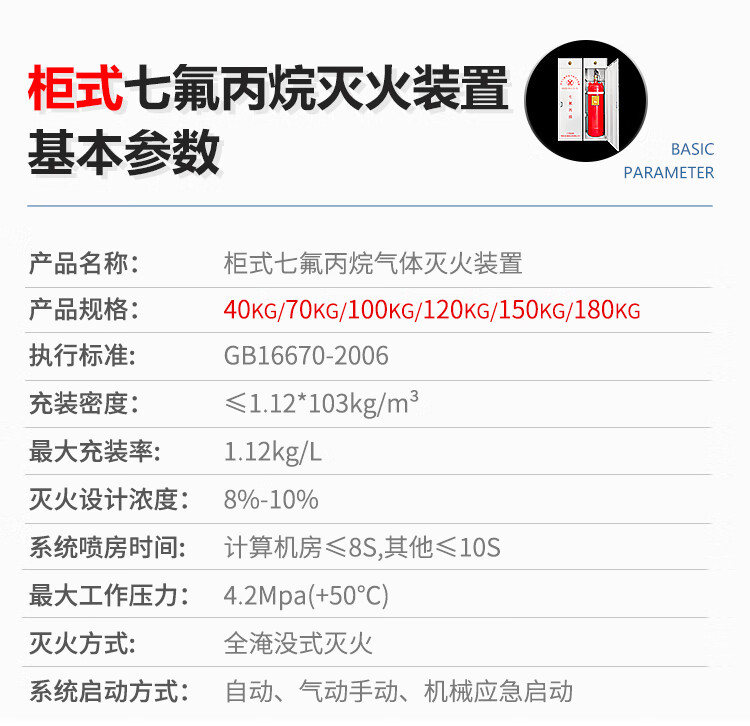 Cabinet type heptafluoropropane gas fire extinguishing device GQQ70L automatic fire extinguishing in the power distribution room and machine room 70L cabinet type heptafluoropropane fire extinguishing device_Customized