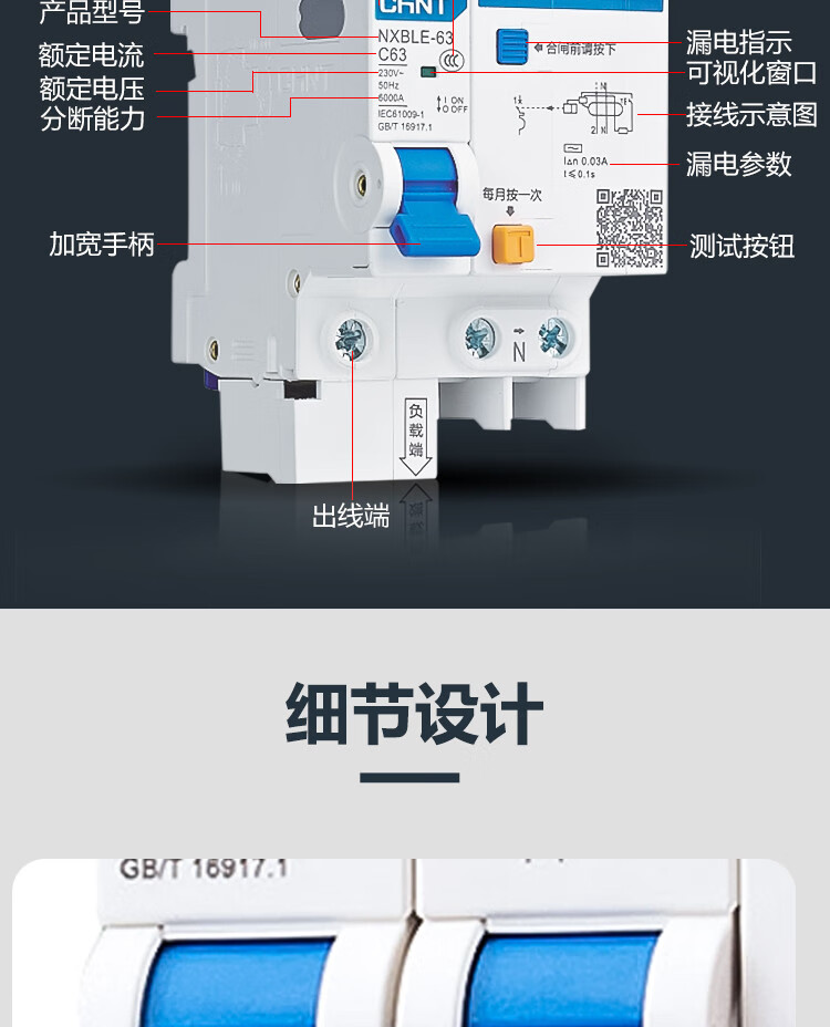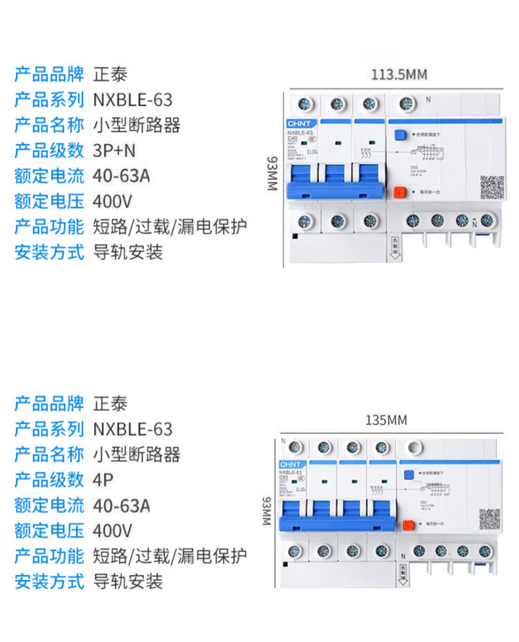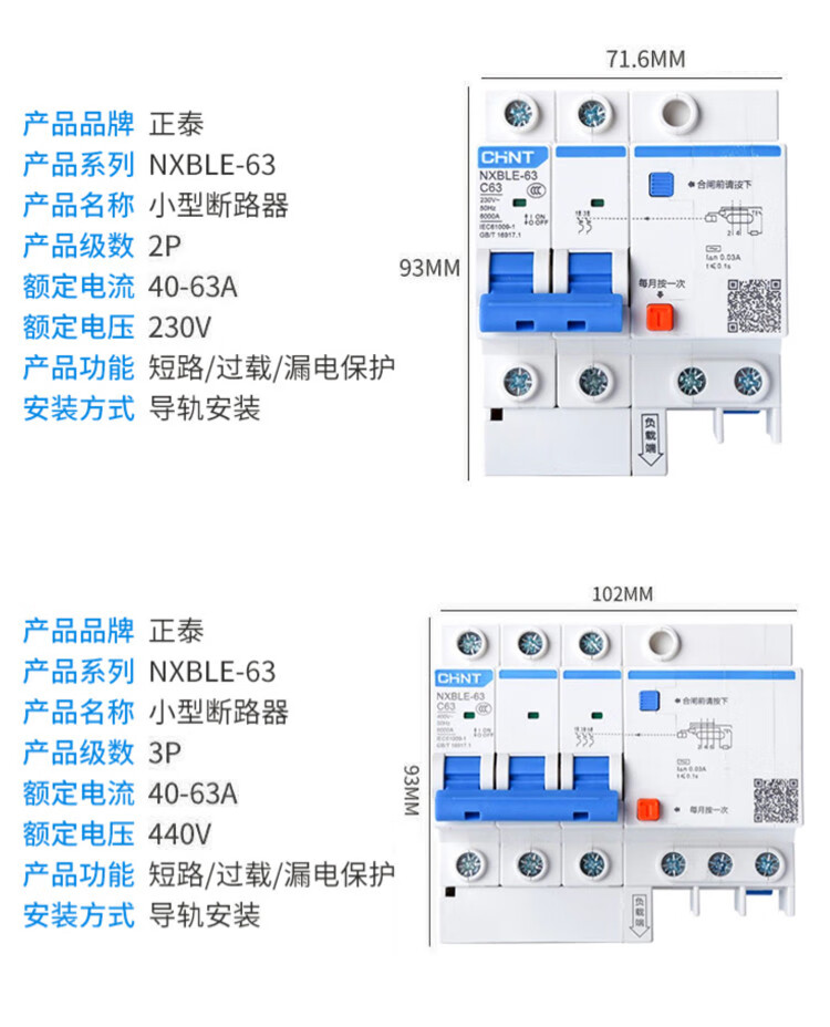 Chint NXBLE-63 leakage protector 2P circuit breaker 32A/40A air switch three-phase electricity/220v household 16A 1P+N