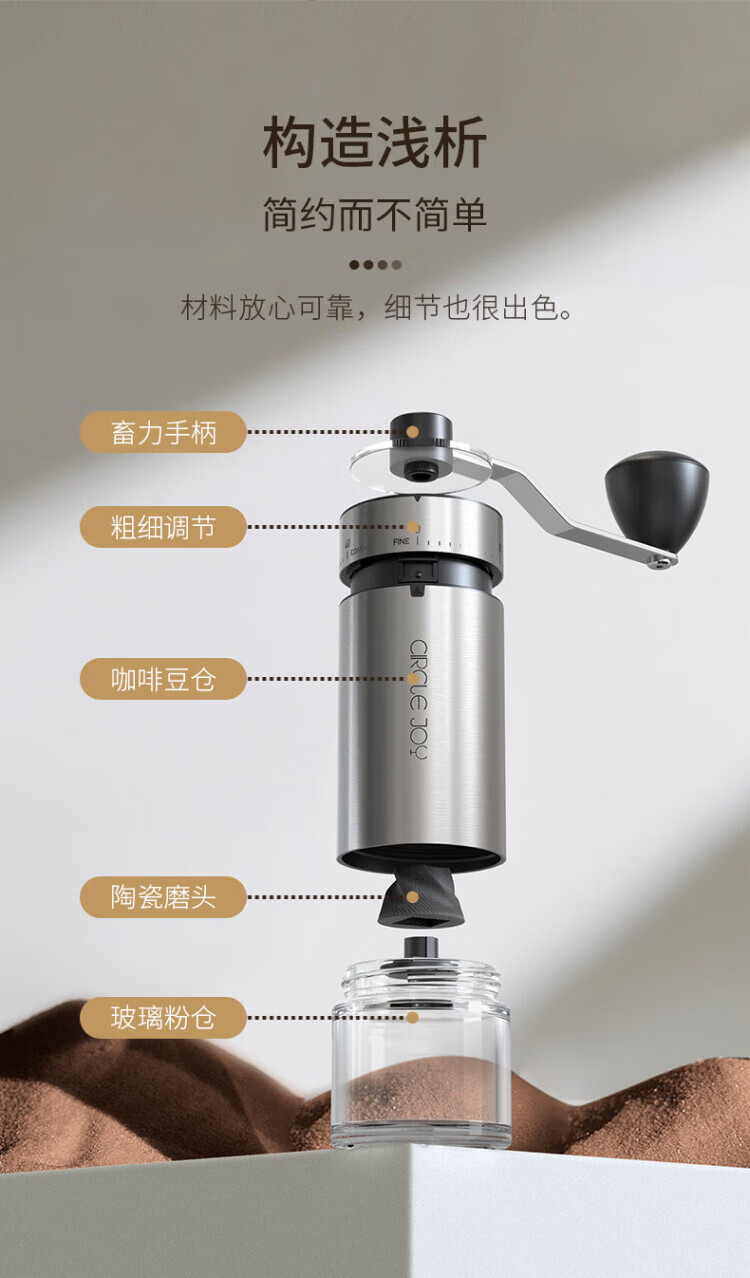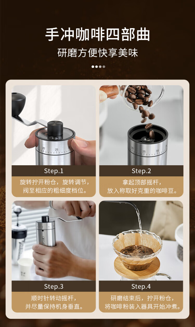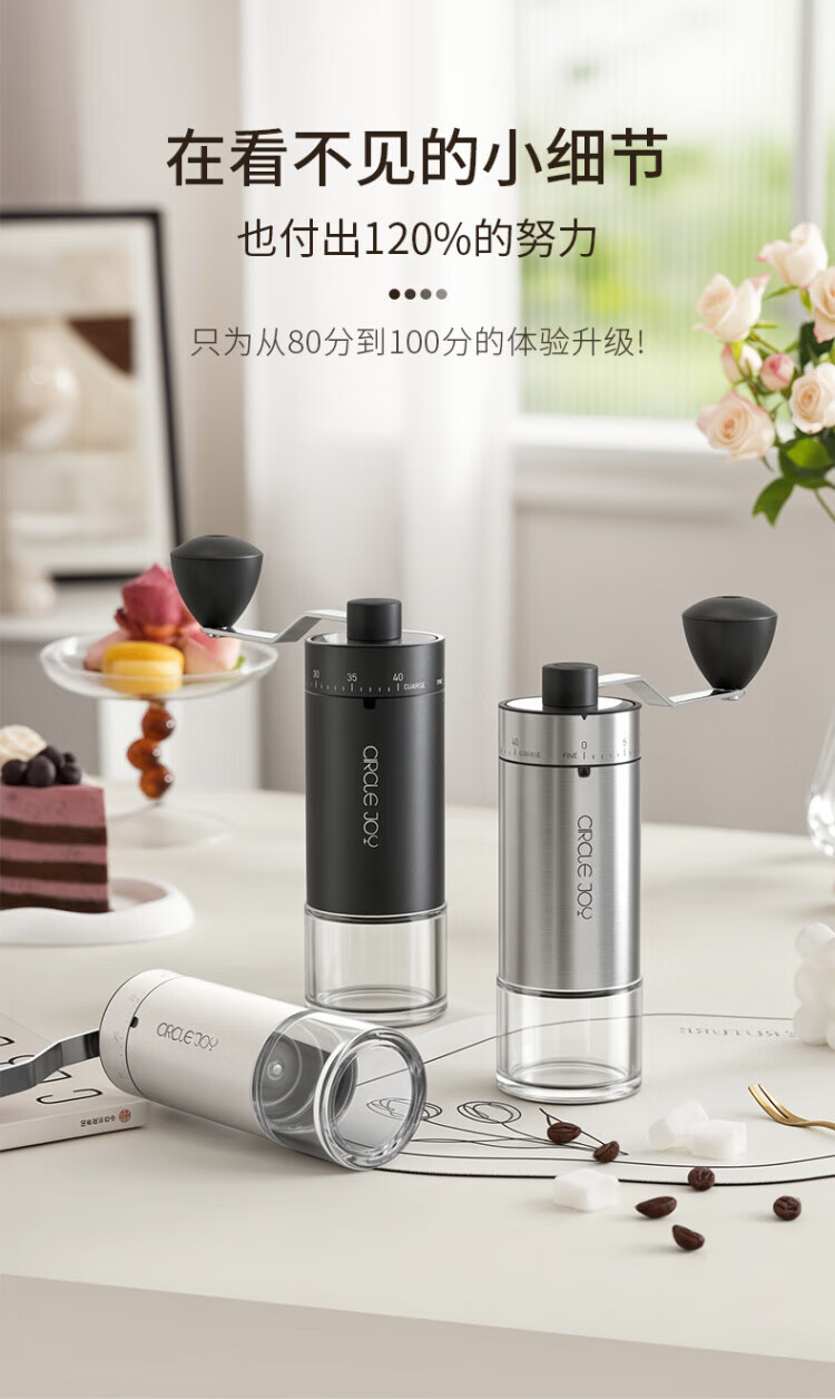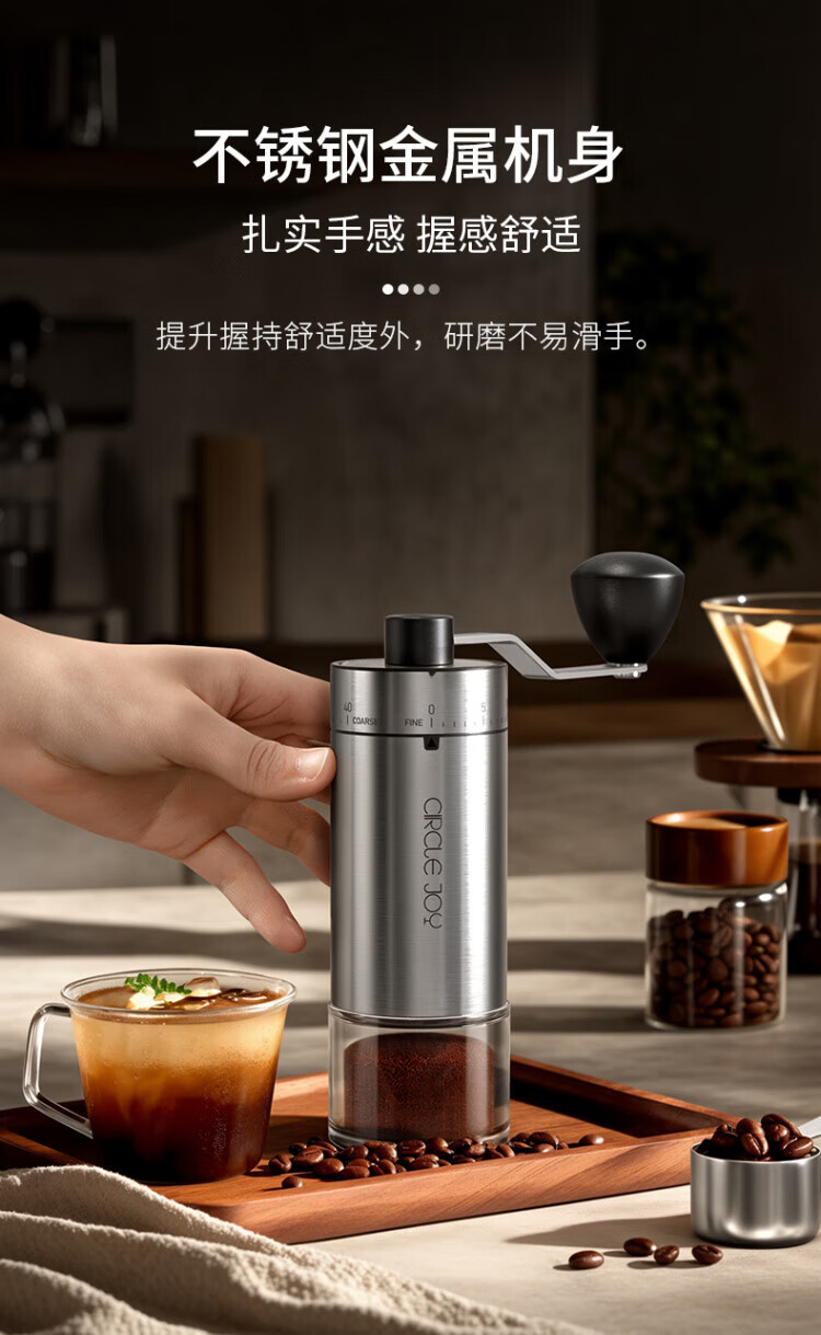 WCZ German hand grinder coffee bean grinder coffee manual grinder hand brewing appliance household hand grinder coffee machine ceramic grinding core hand grinder (stainless steel color) with anti-slip silicone ring