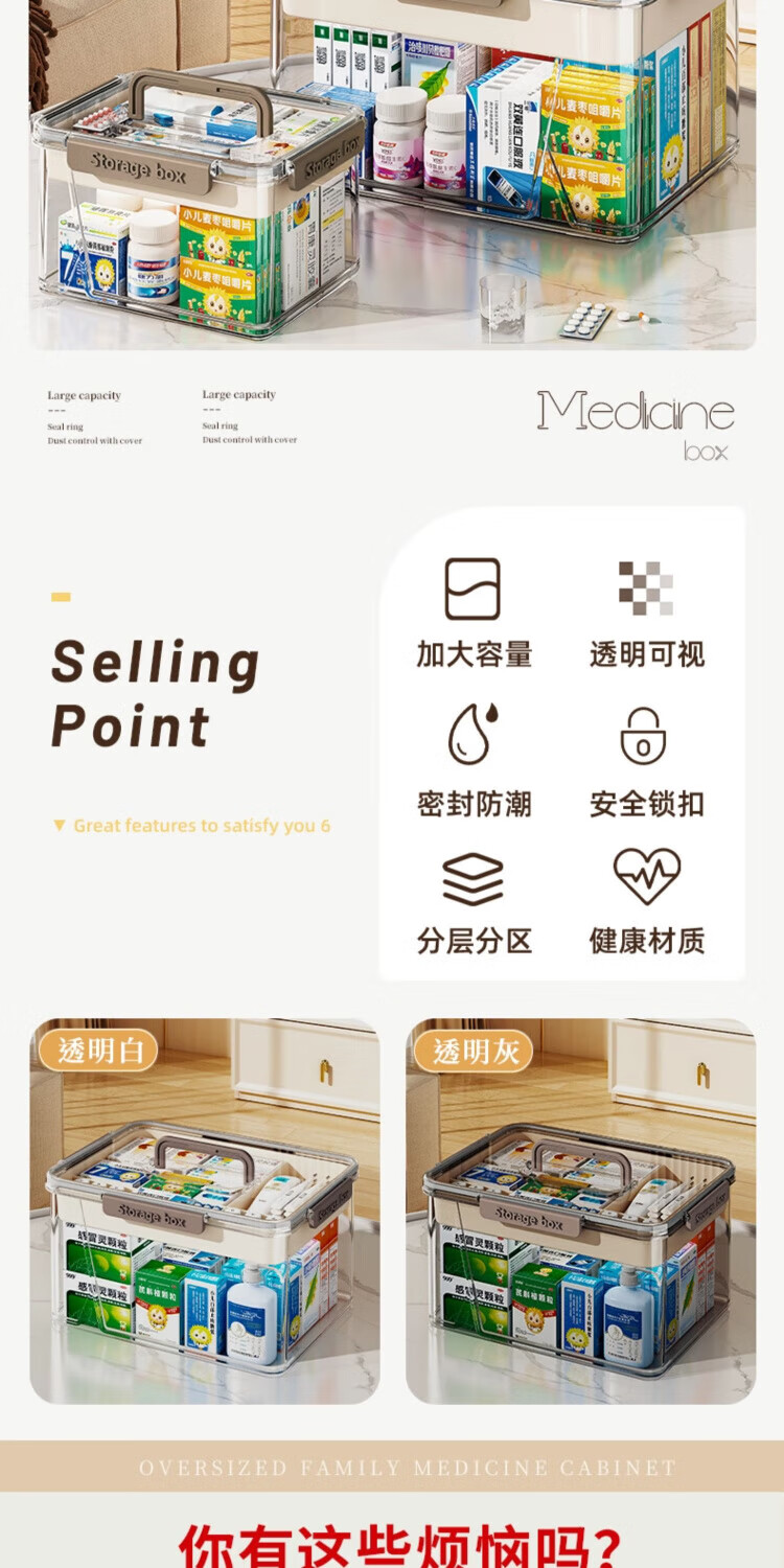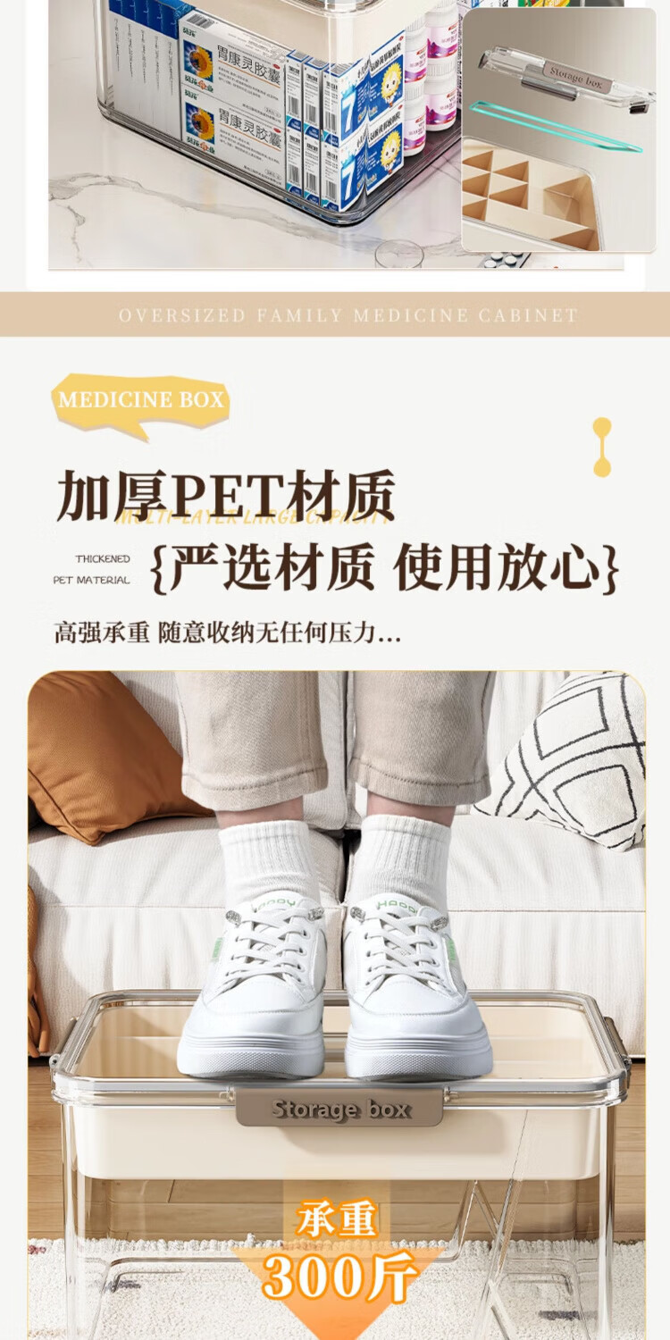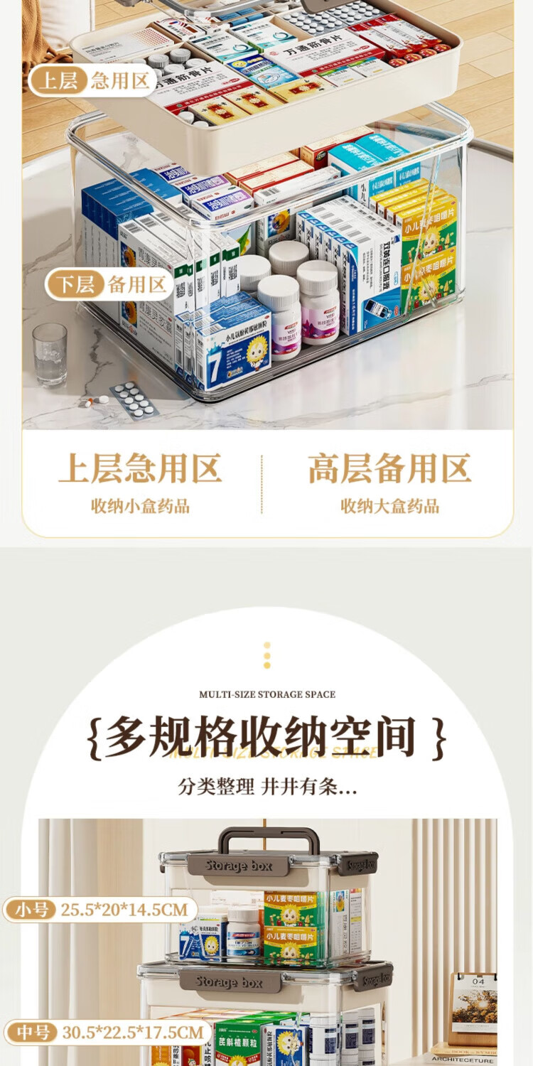 WCZ German medicine box home size large household large capacity multi-layer sealed first aid medicine box small medicine storage box extra large - double layer transparent white extra thick upgrade