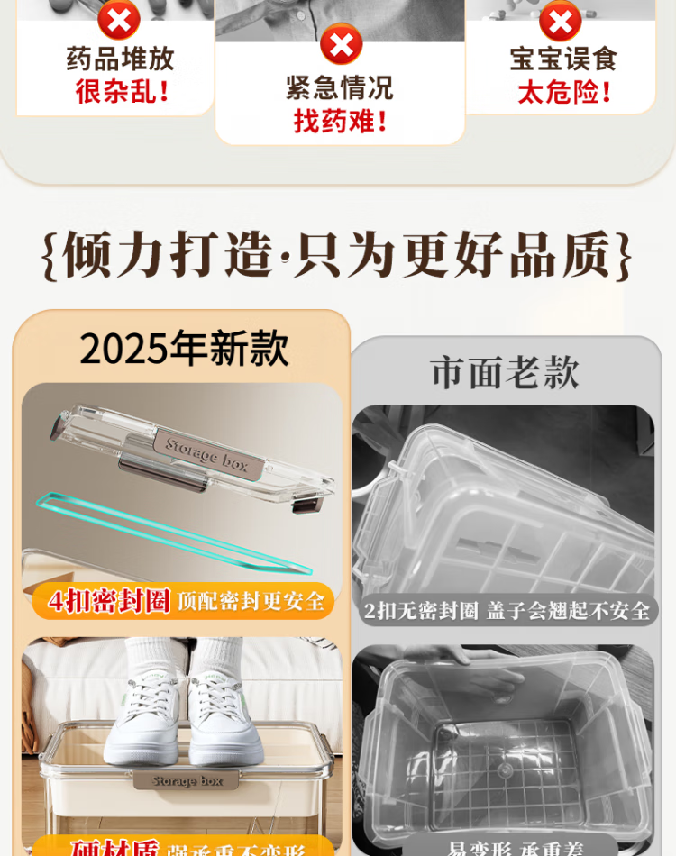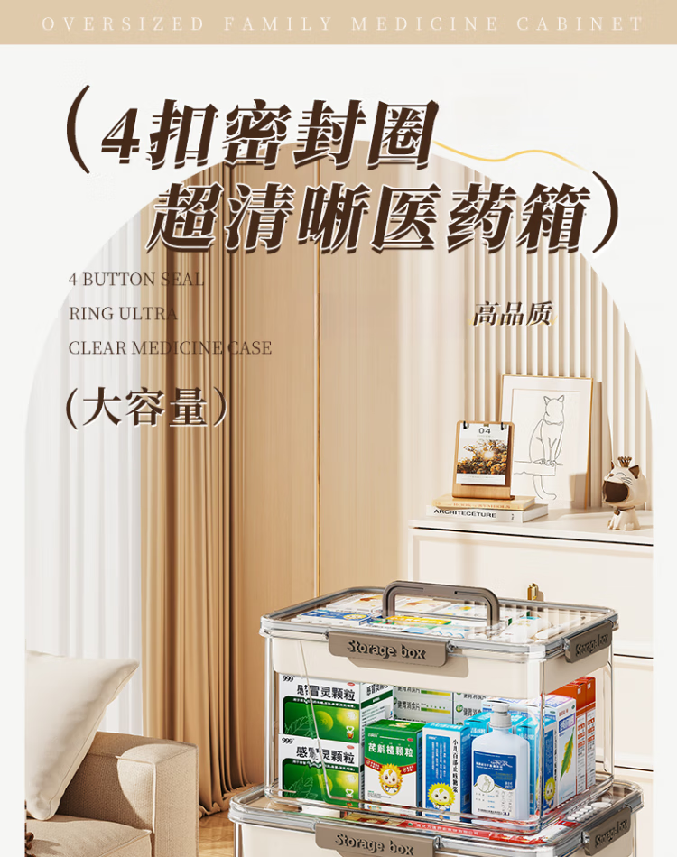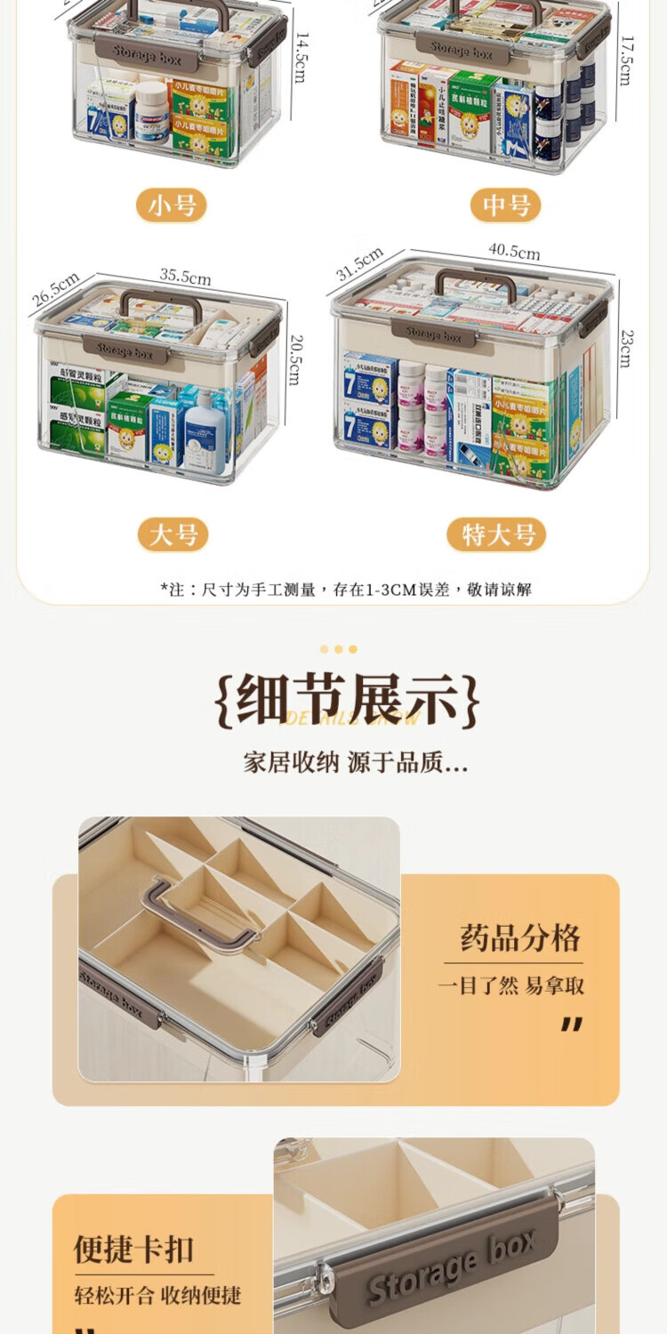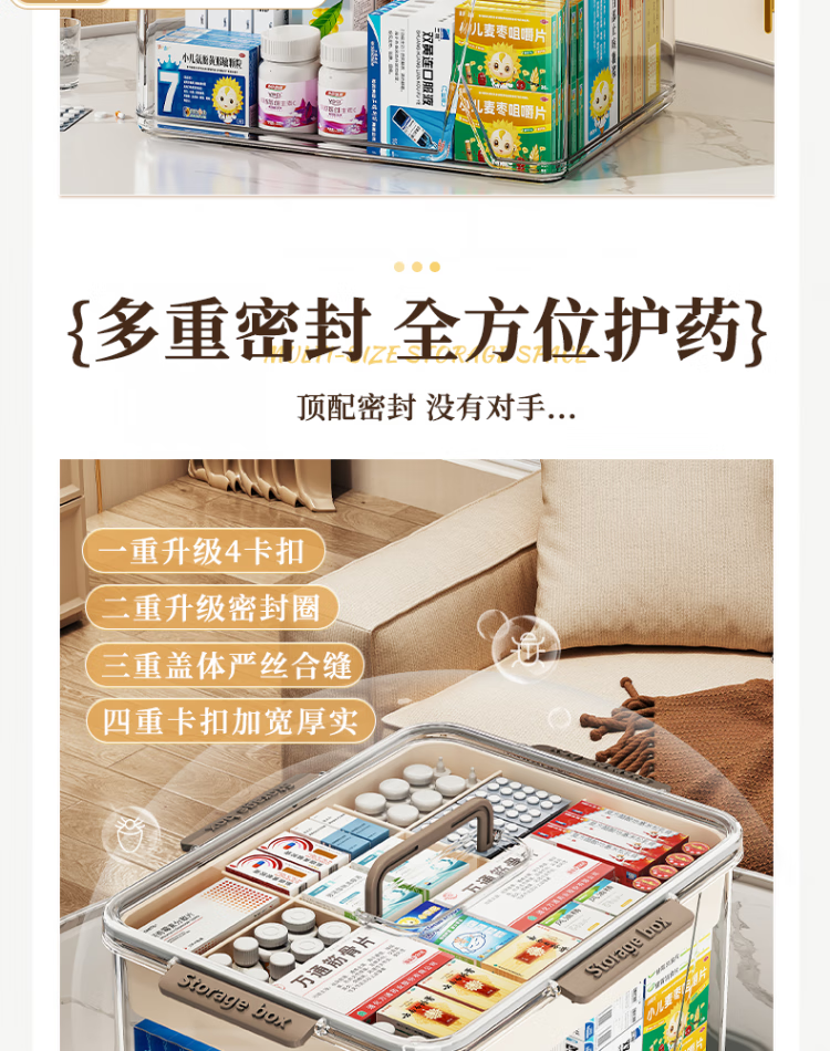 WCZ German medicine box home size large household large capacity multi-layer sealed first aid medicine box small medicine storage box extra large - double layer transparent white extra thick upgrade
