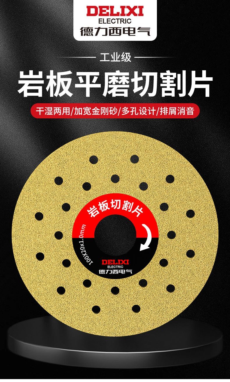 Delixi Electric ultra-thin cutting and grinding discs for all-ceramic rock slabs, special cutting discs for trimming, flat-grinding stone, bevel-cut ceramic tile chamfering discs, ultra-wide emery, 1 piece pack + reducing ring