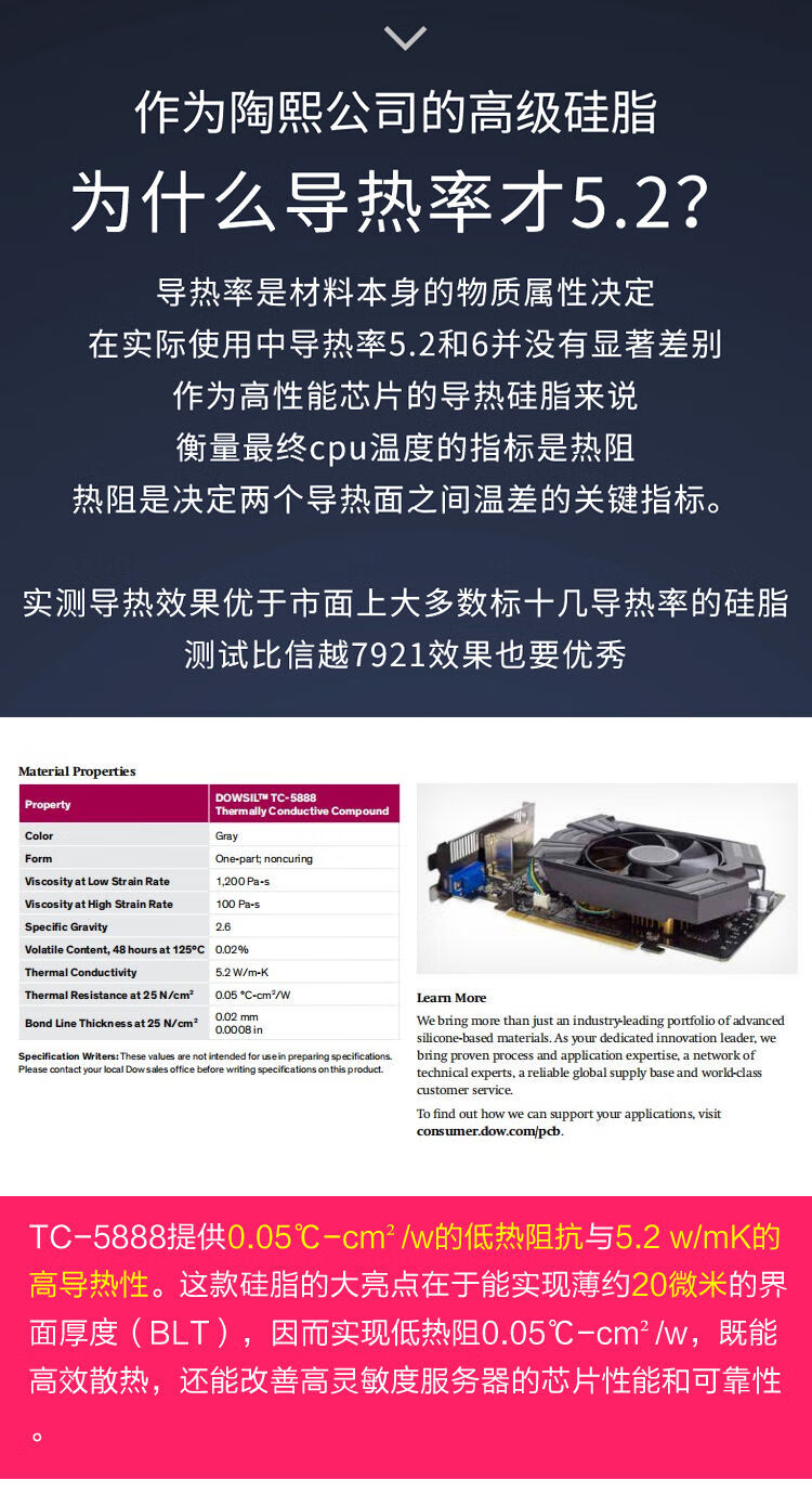 American Dow Corning Tao Xi TC-5888 Thermal Conductive Silicone Grease Silicone Computer CPU Cooling Pen Graphics Card Thermal Paste Gray 1g Set