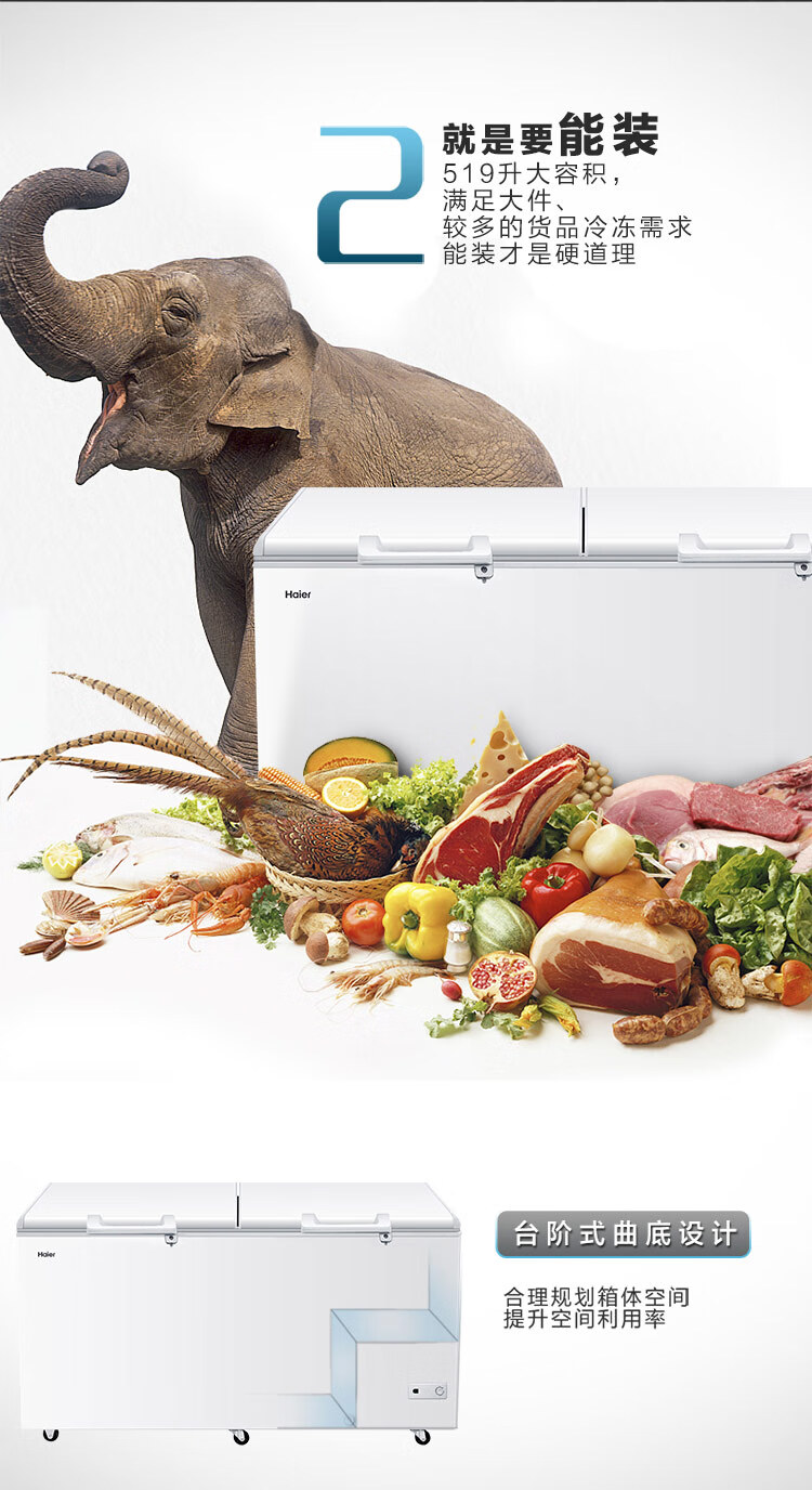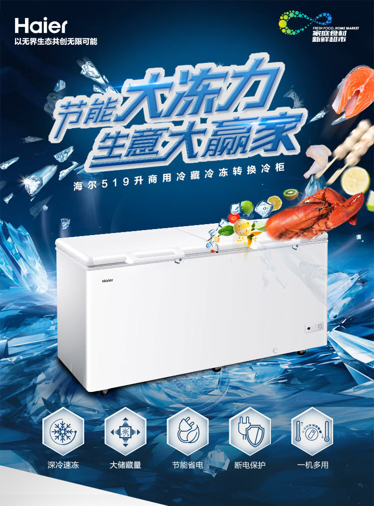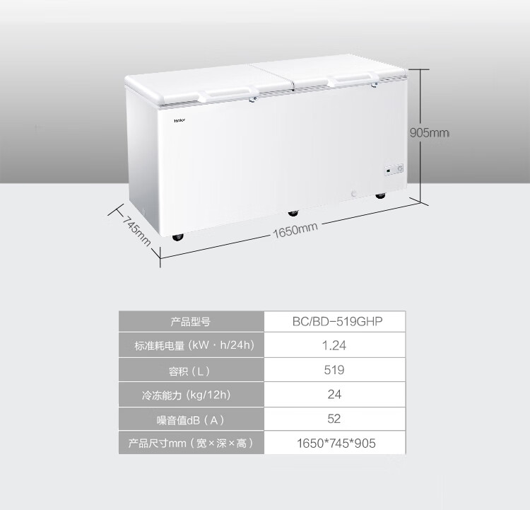 Haier 519L Freezer Commercial Large Capacity Refrigeration Freezer Energy Saving Low Noise Freezer Deep Freezing Quick Freezing Home Freezer BC/BD-519GHP White 519L Deep Freezing Quick Freezing Large Capacity BC/BD-519GHP