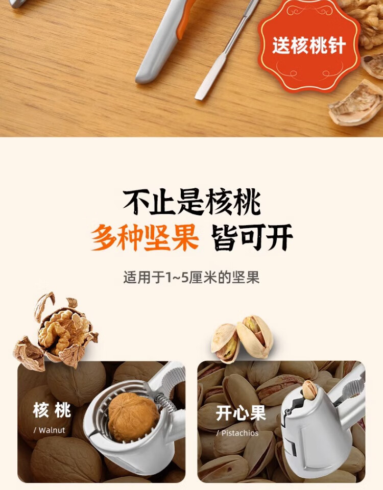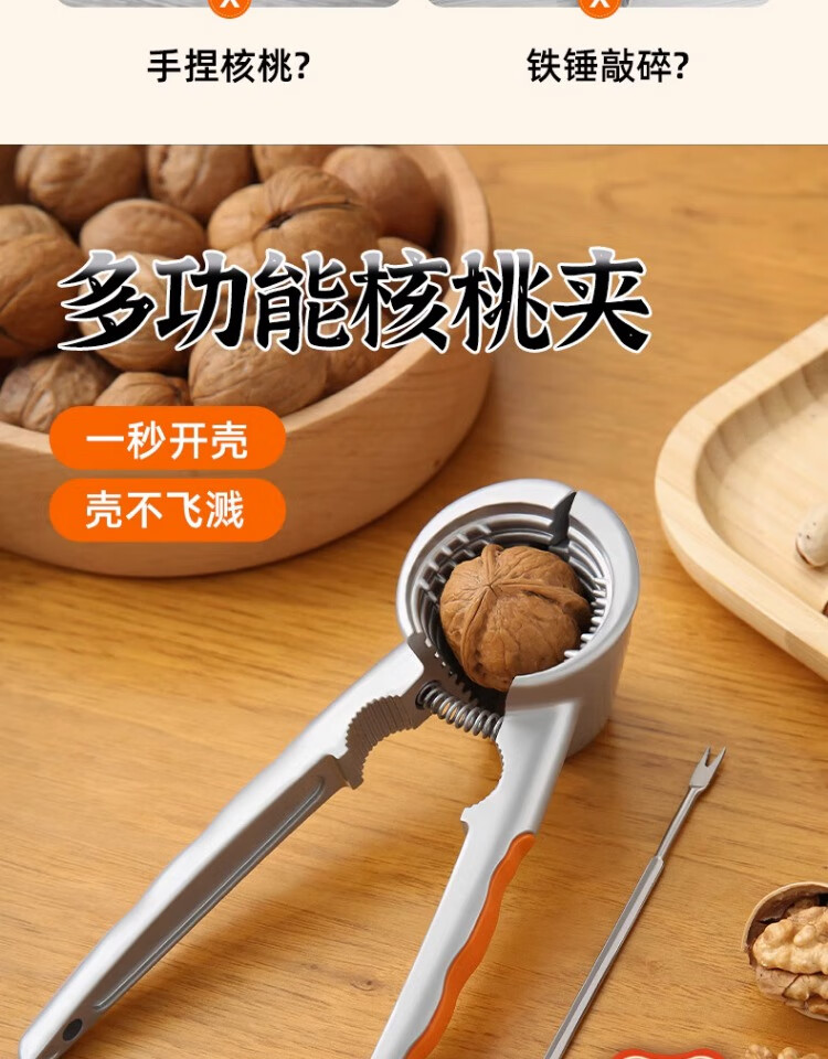 WCZ German household pecan clamp artifact, pliers for peeling hazelnuts and pinching walnuts, nut shell opener, nut crackers, chestnuts, upgraded version + walnut needle (universal for large and small nuts)