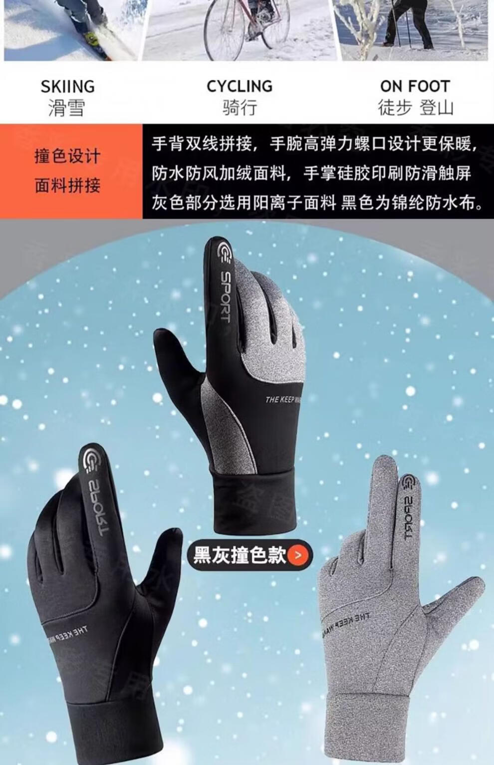 JCZS German cycling touch screen gloves for men to keep warm in winter and drive electric cars outdoors to prevent cold and plus velvet, windproof and waterproof gloves, German Seiko, upgraded waterproof touch screen, navy blue, 1 pair, one size fits all