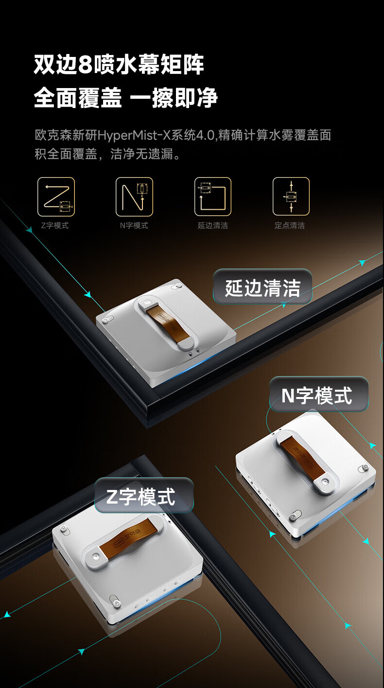 OUKESEN window cleaning robot fully automatic two-way water spray household high-rise glass washing artifact cross wide angle four water spray M6Pro