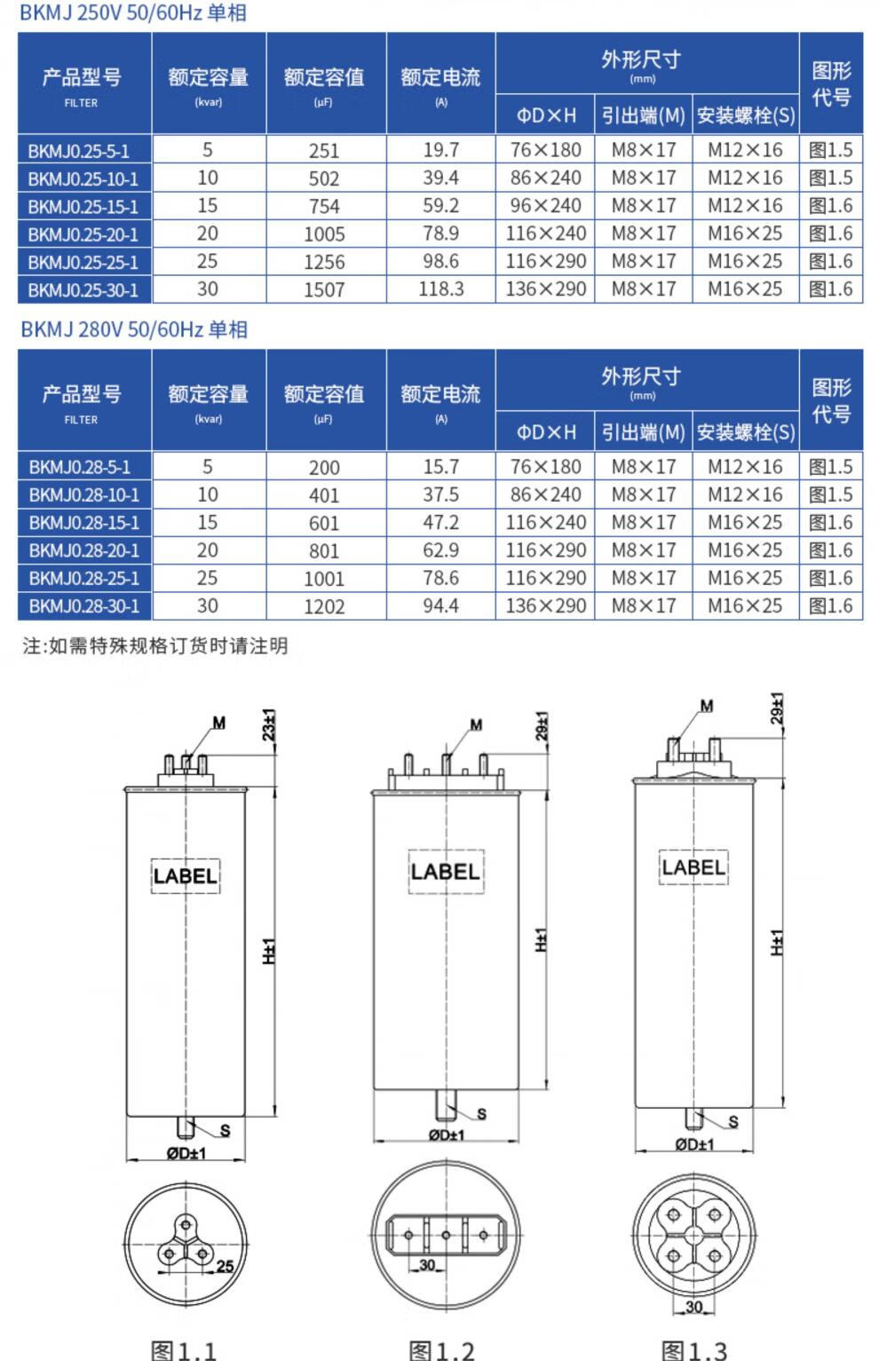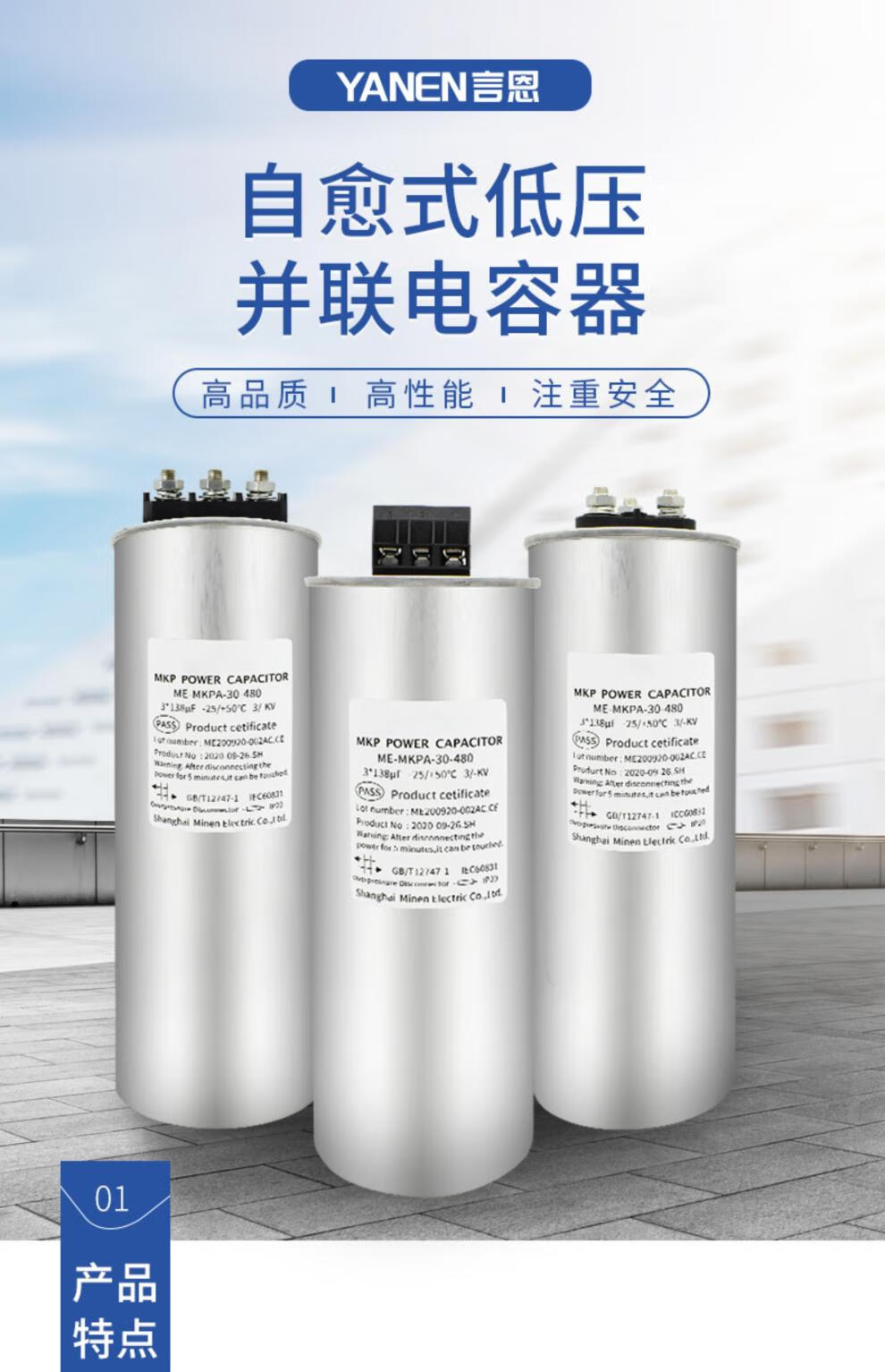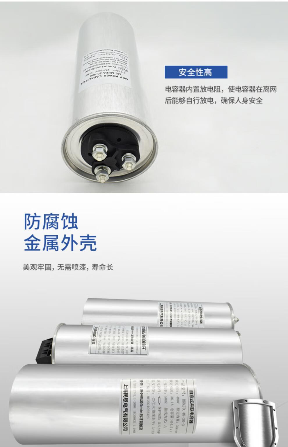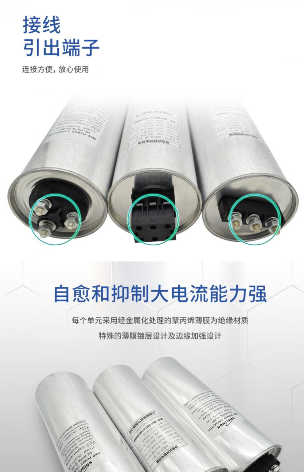 Self-healing low-voltage parallel cylindrical capacitor three-phase reactive power compensation filter 440V450V480V30kvar BKMJ0.525-50-3 (525V)