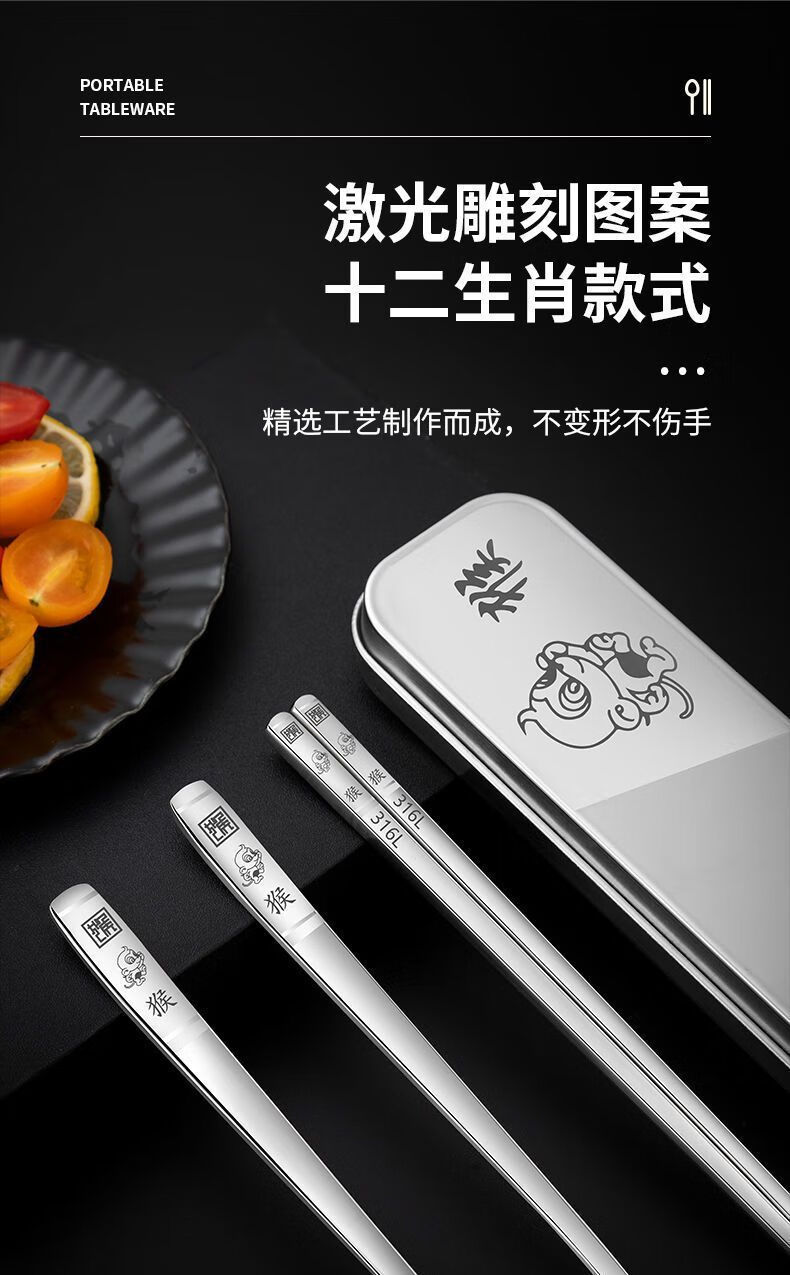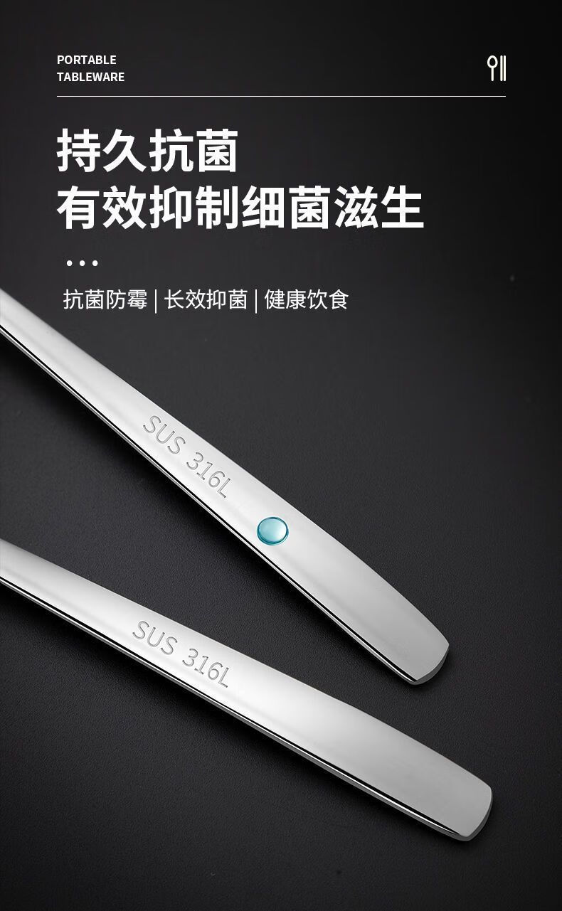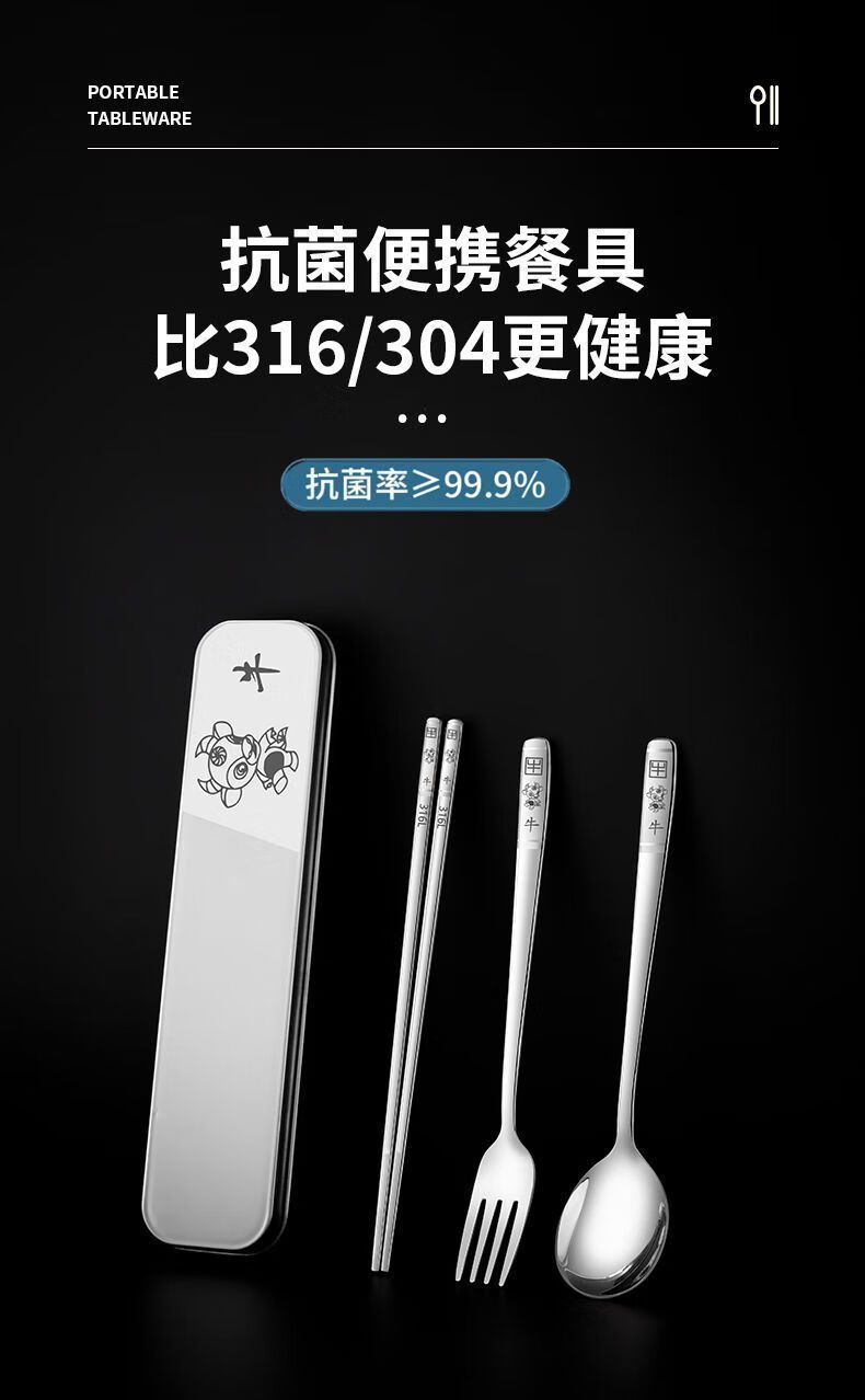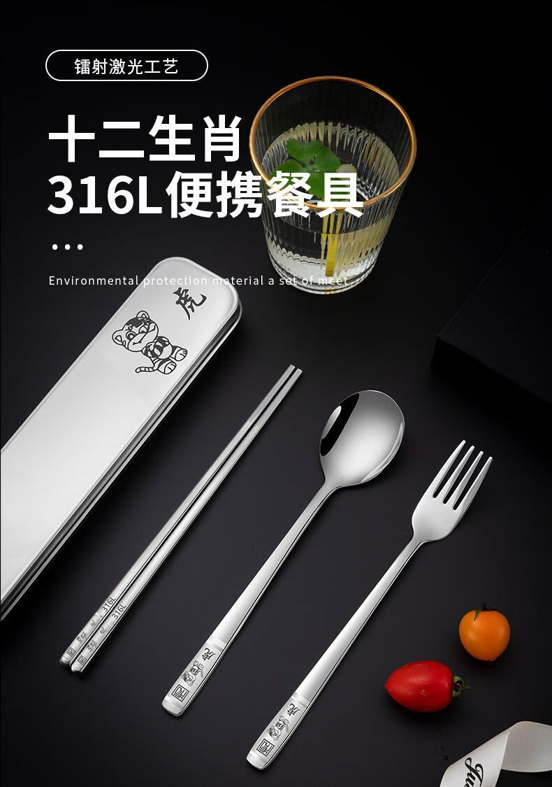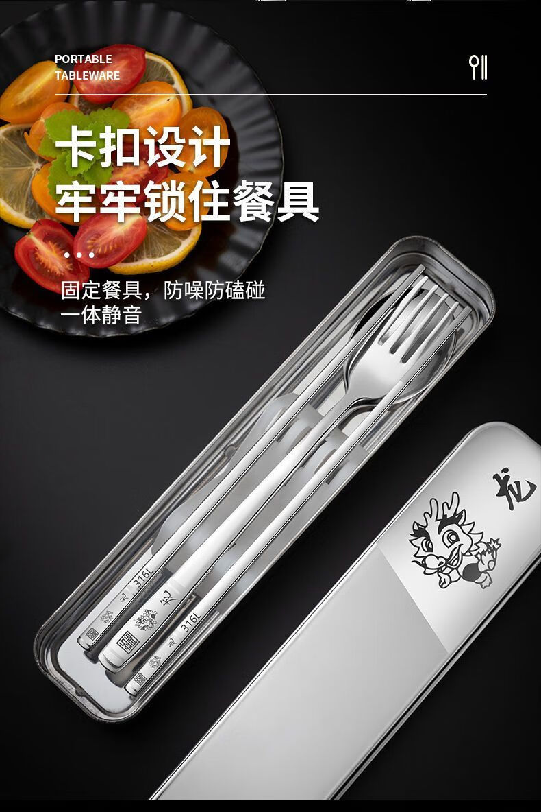 Zwilling 316L stainless steel chopsticks and spoon set three-piece set single portable cutlery box student storage horse three-piece mesh bag