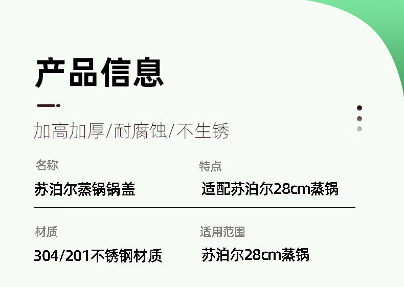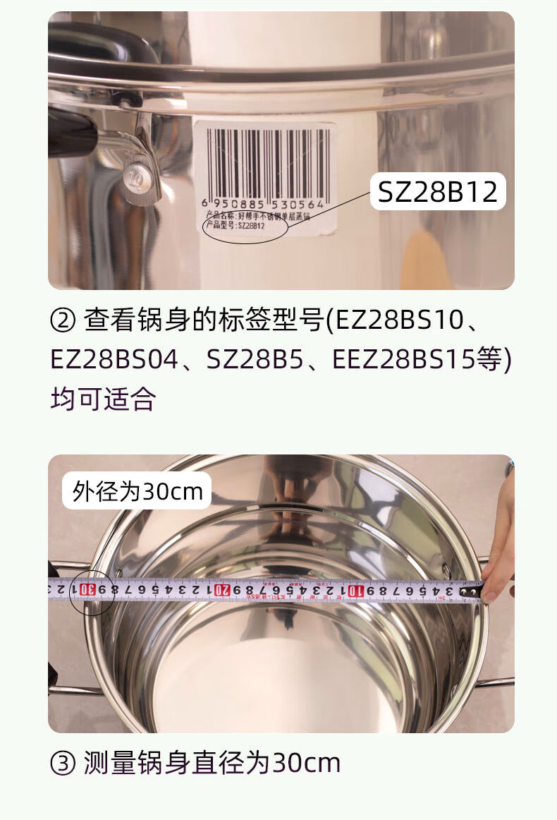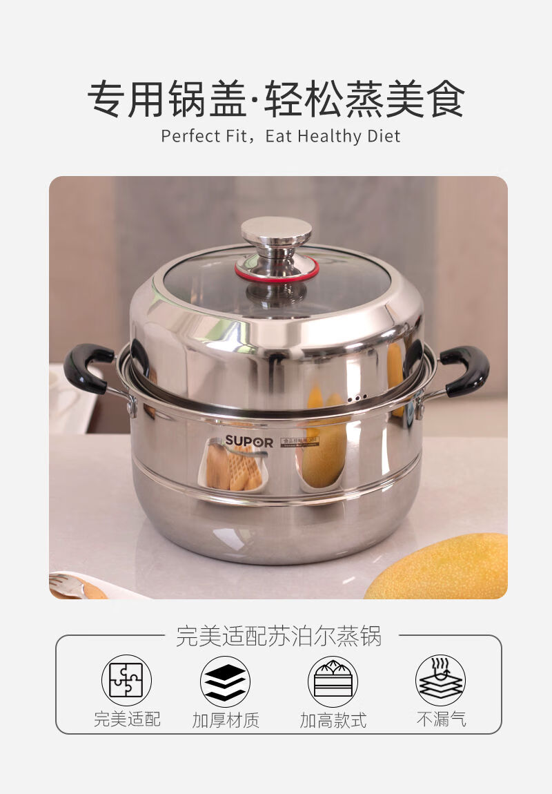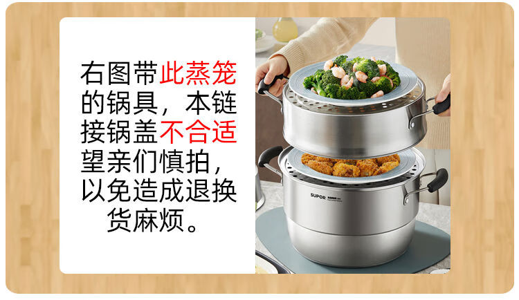 304 stainless steel steamer lid is suitable for Supor 28cm steamer lid accessories, high arch lid, heightening and thickening EZ28BS 29cm28 thickened material model 304 stainless steel