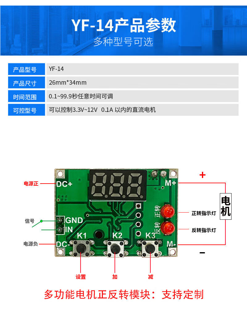 DC motor forward and reverse controller small brush motor automatic cycle timing delay module signal trigger YF-14/3.3-12V
