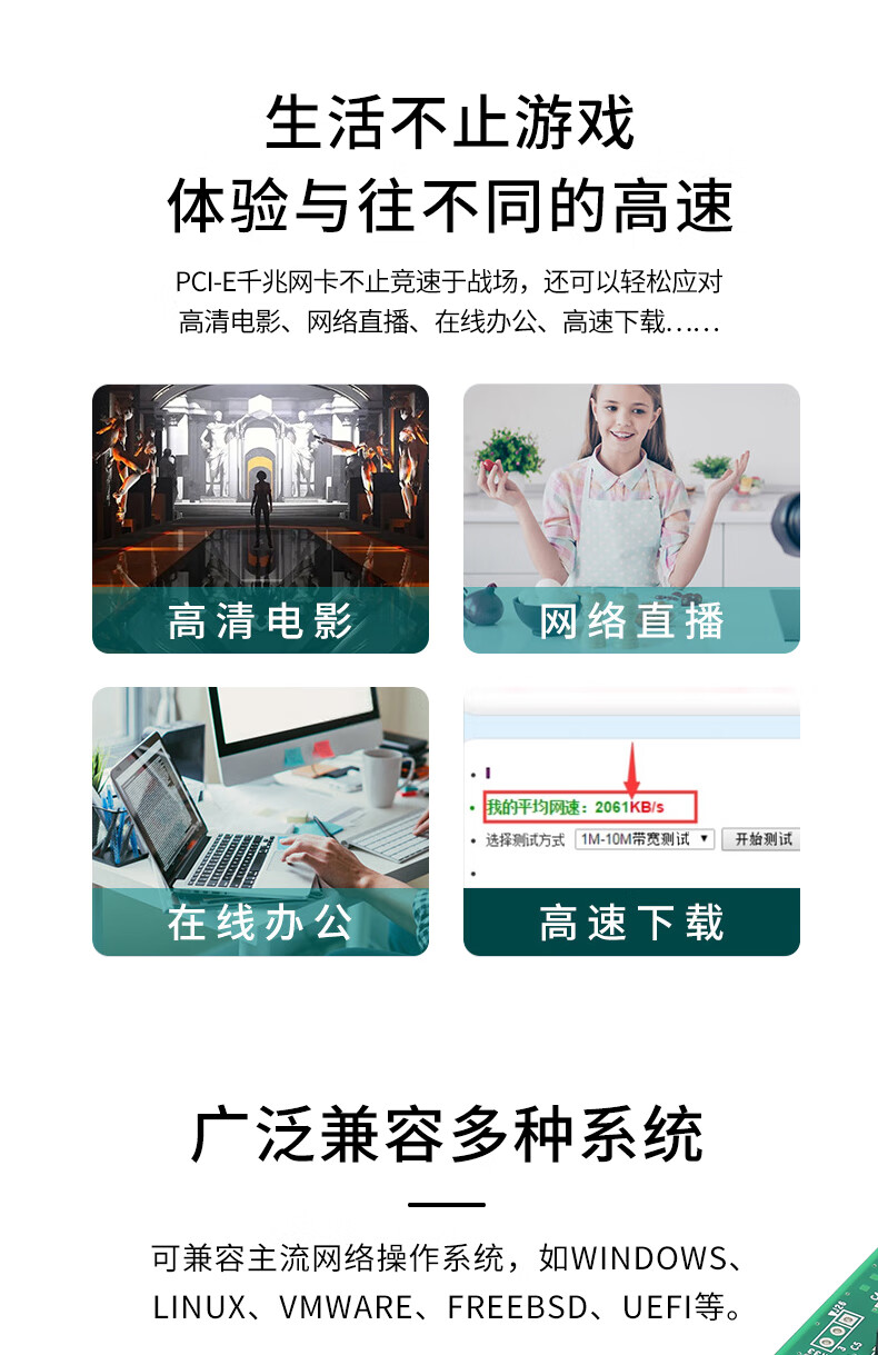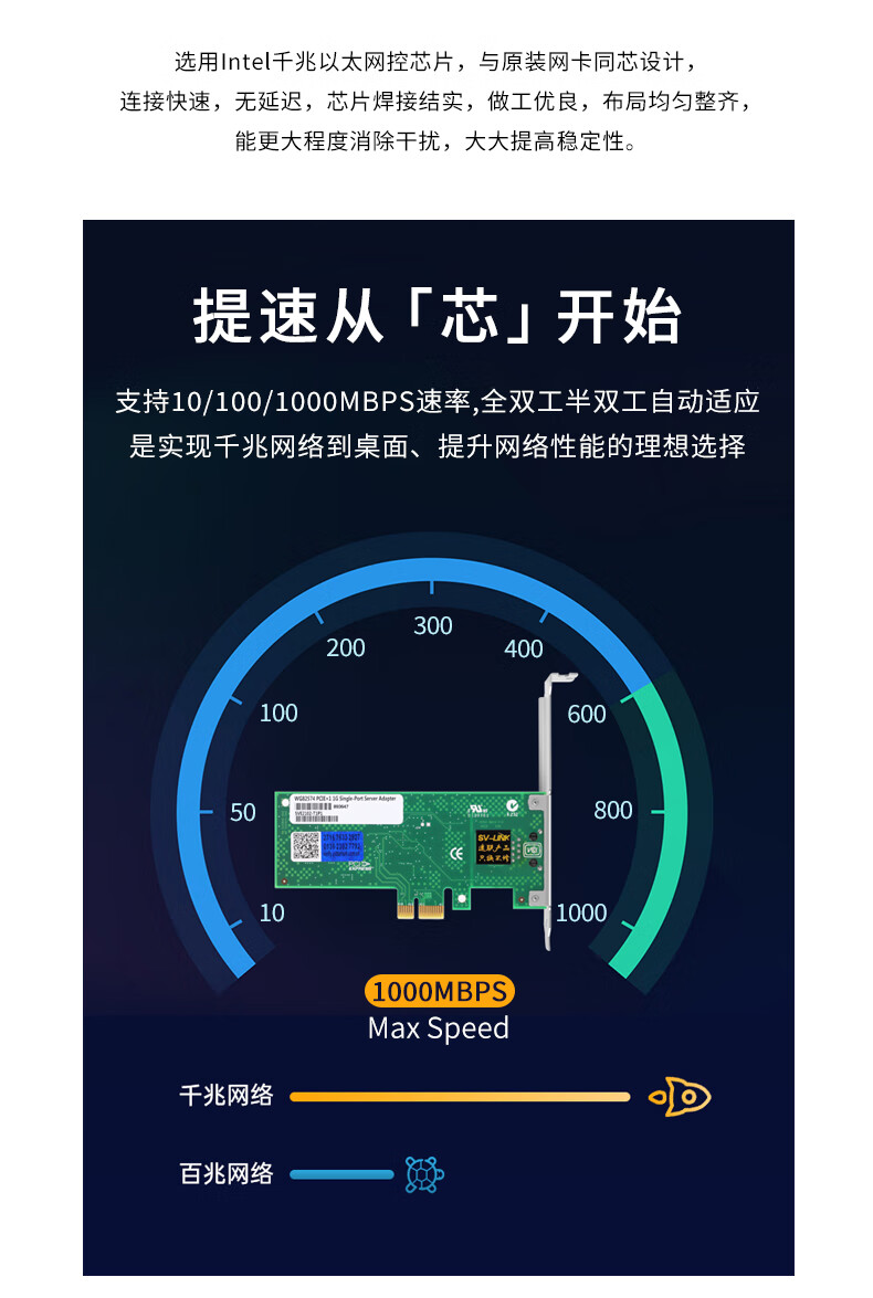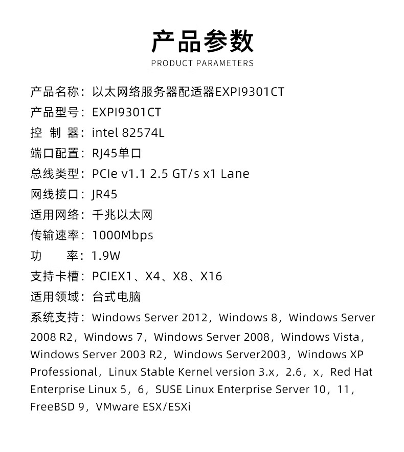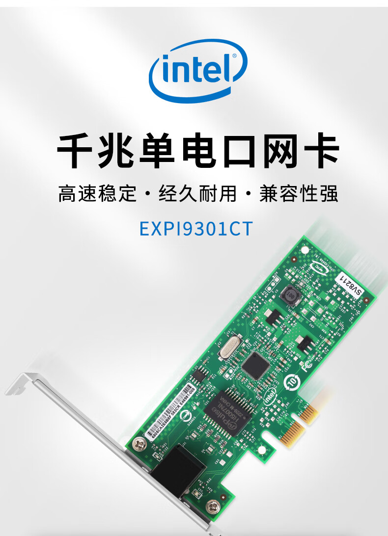Intel82574 chip Gigabit single-port network card 9301CT desktop computer network card pcieX1 Black Group Hui driver-free 9301CT