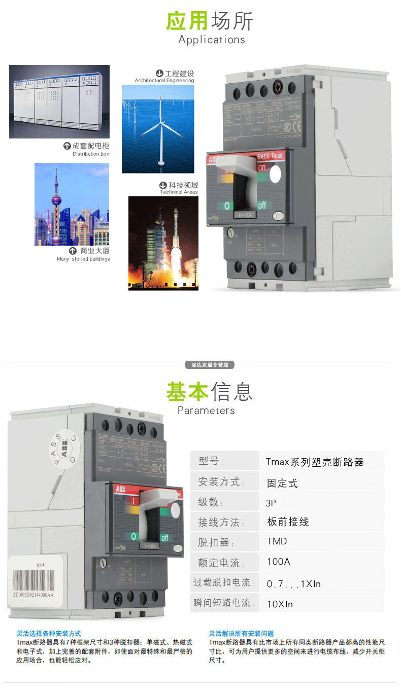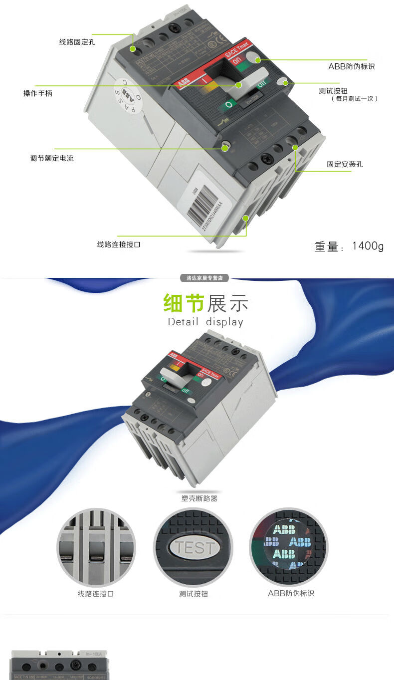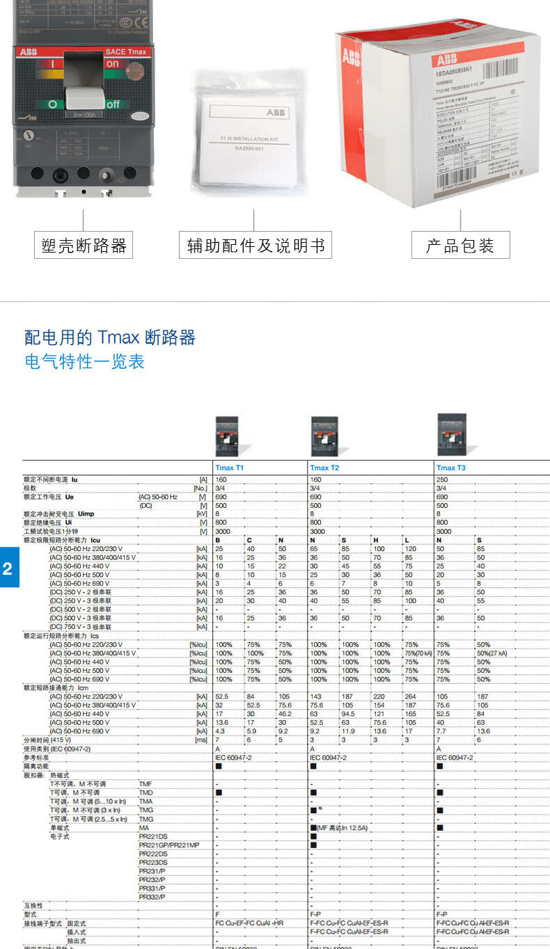 ABB molded case circuit breaker T5N400A T5N630A T6N630A T6N800 T7S1250A air open 250A 3P