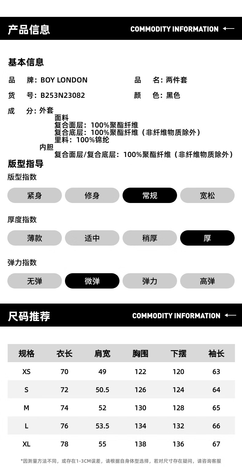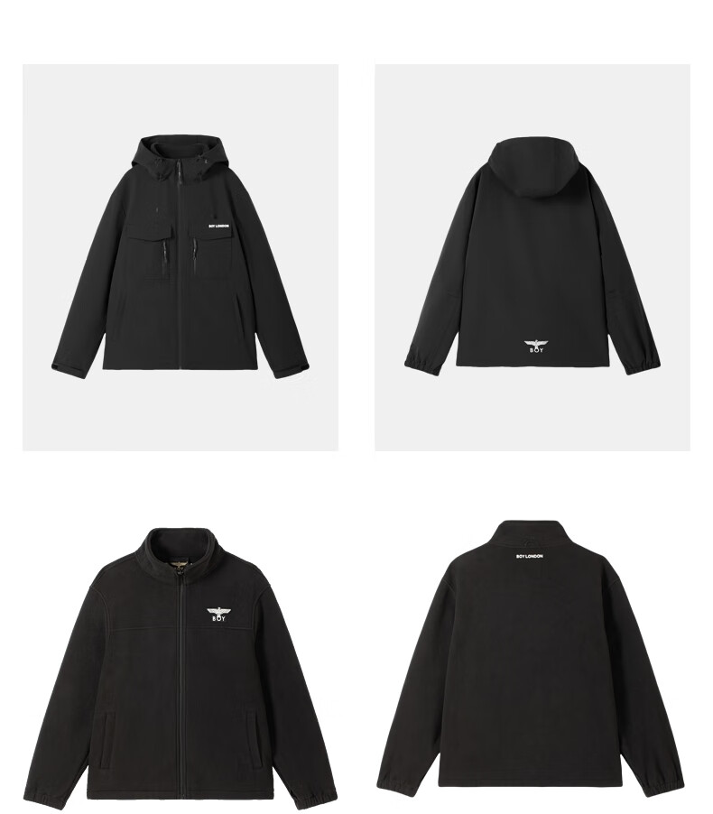 BOY LONDON Men's Jacket Spring and Autumn Three-in-One Polar Fleece Functional Wind Hooded Jacket Women's Top N23082 Black M