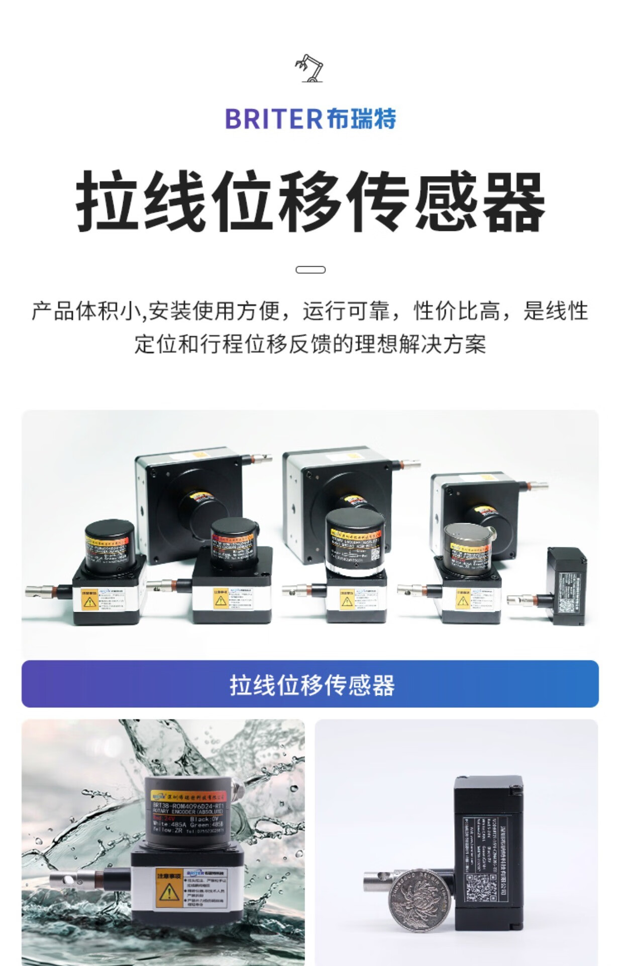 Pull wire wire pull rope displacement sensor electronic ruler gate analog distance measuring linear wire waterproof encoder 500mm 4096 (explosion-proof Ex) voltage 0-5v