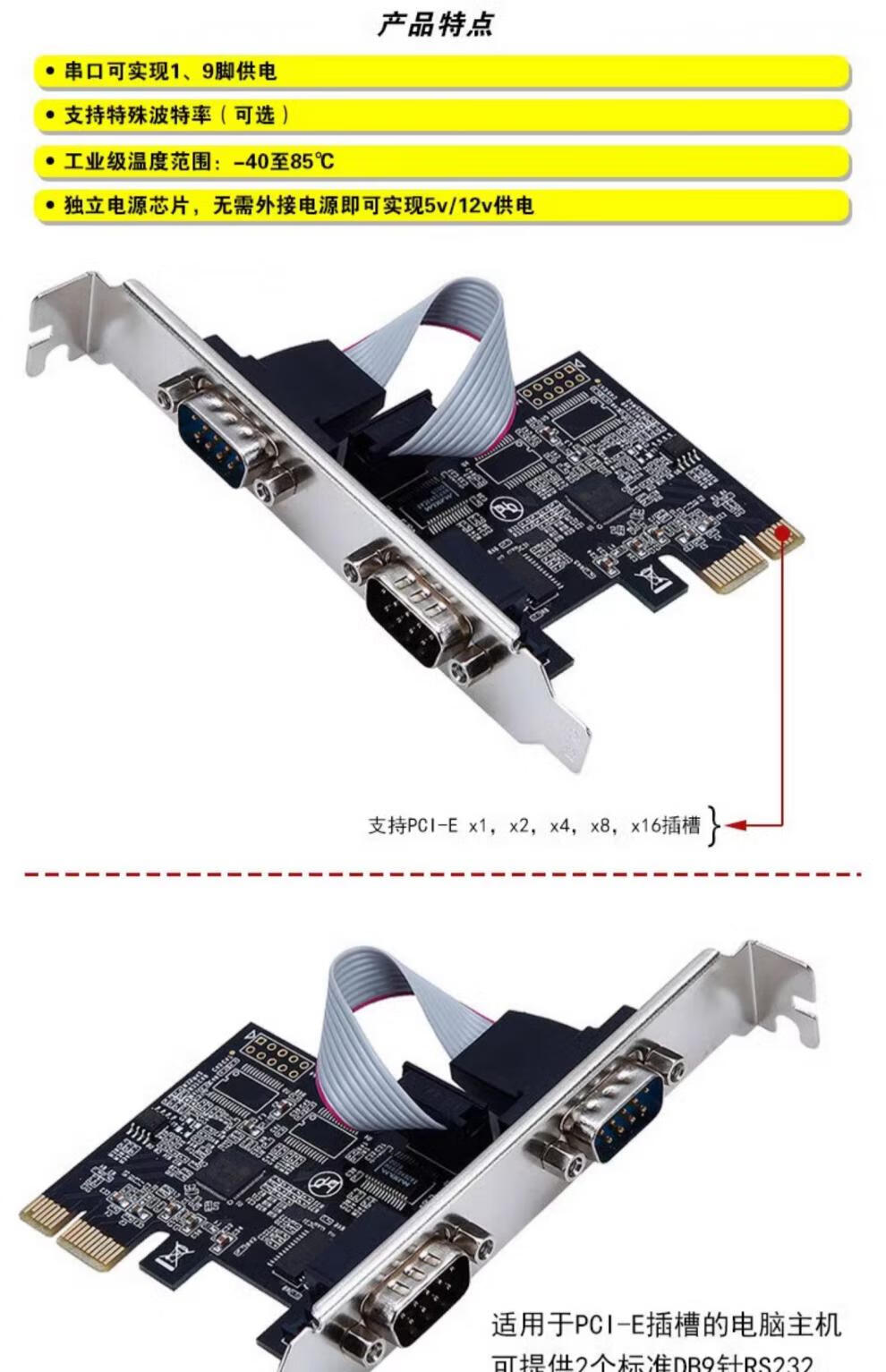 PCI-E serial port card DB9 nine-pin serial port RS232 interface industrial control expansion card AX99100 chip COM port AX99100-serial port plus parallel port card