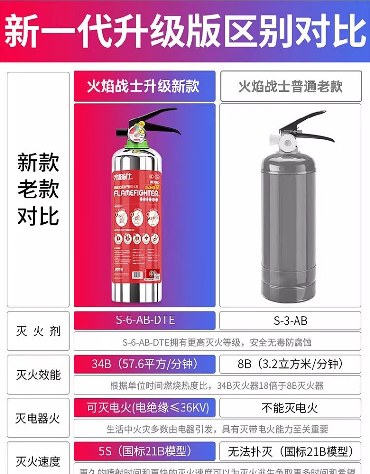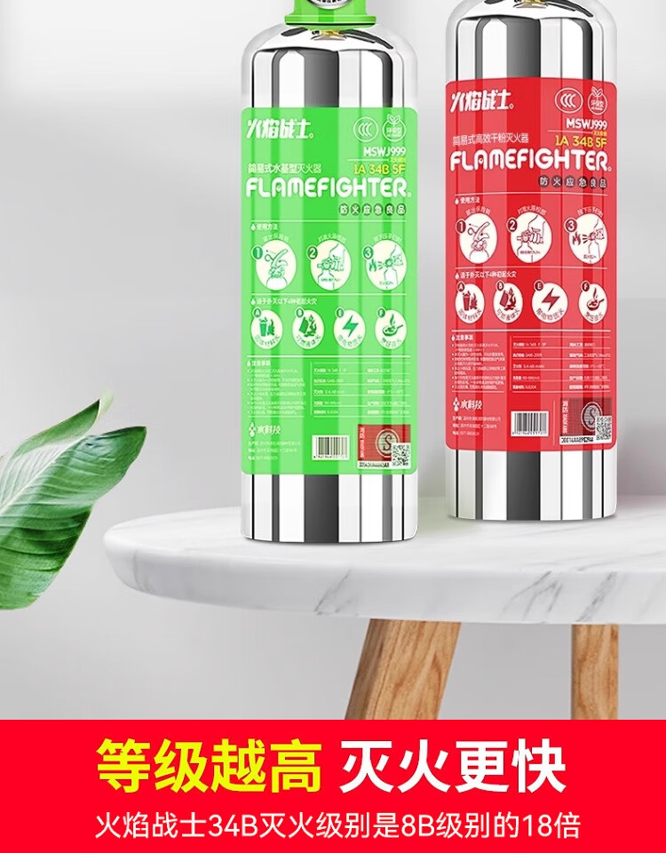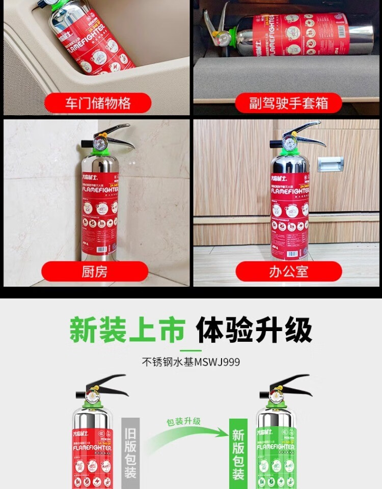 Flame Warrior stainless steel vehicle-mounted water-based fire extinguisher 2025 new private car household small explosion-proof environmentally friendly water-based 1L + efficient dry powder 1KG stainless steel bottle anti-rust 3