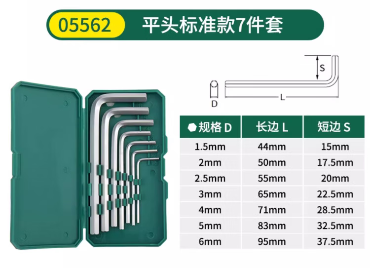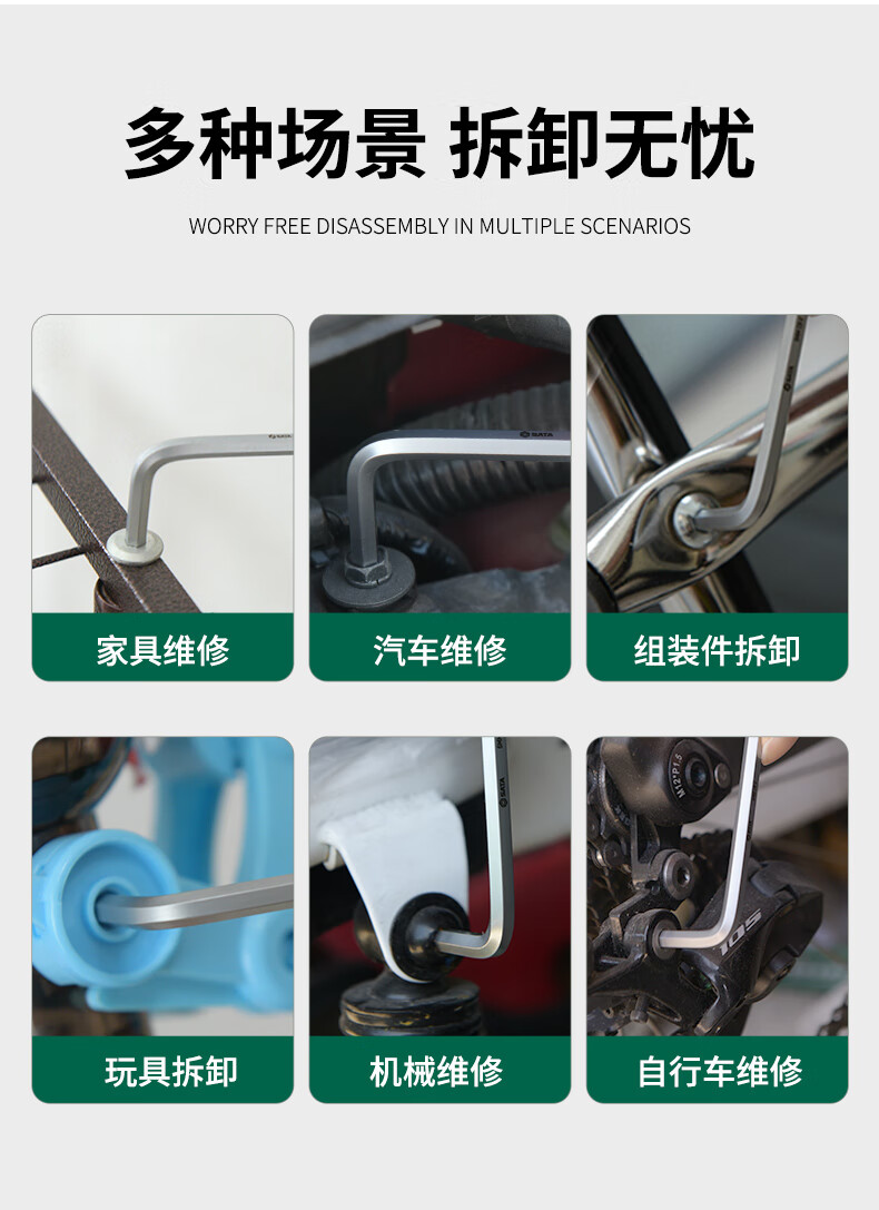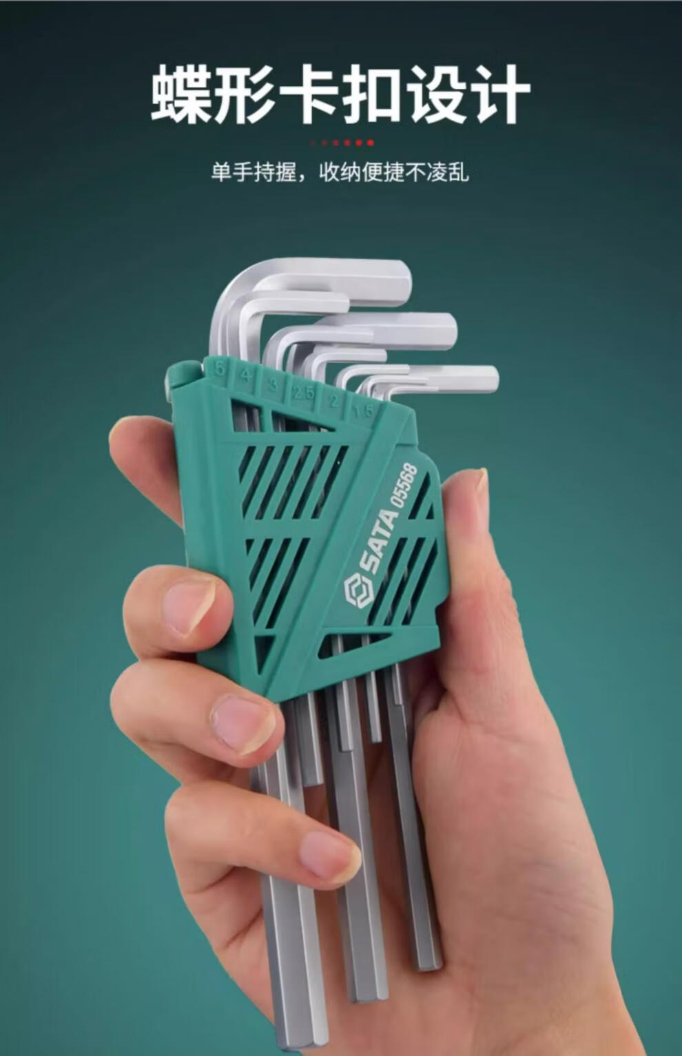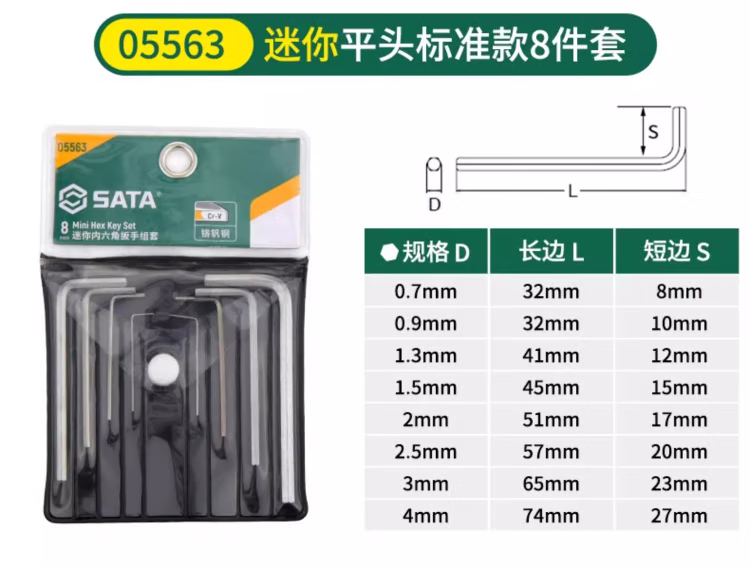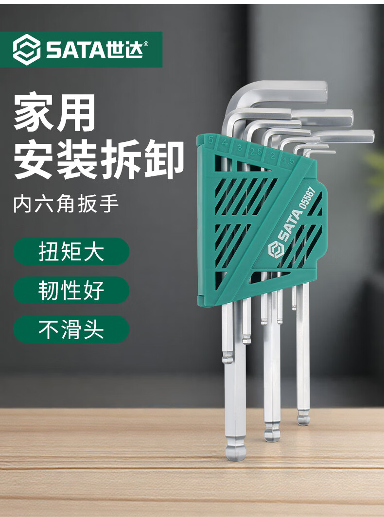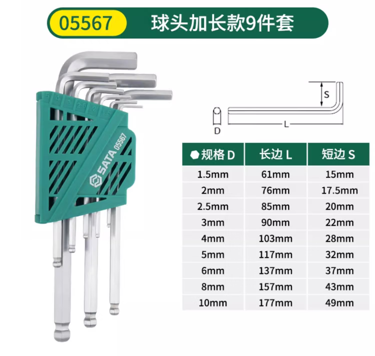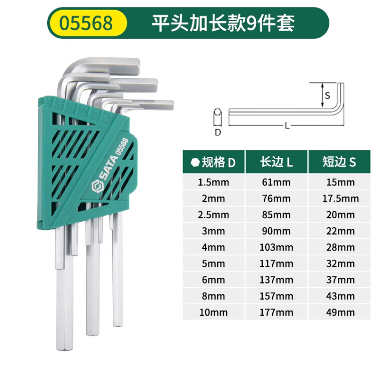 SATA Hexagonal wrench set household tools repair and installation hexagonal set hexagonal screwdriver hexagonal key 05568 extended 9-piece set 1 point 5mm-1