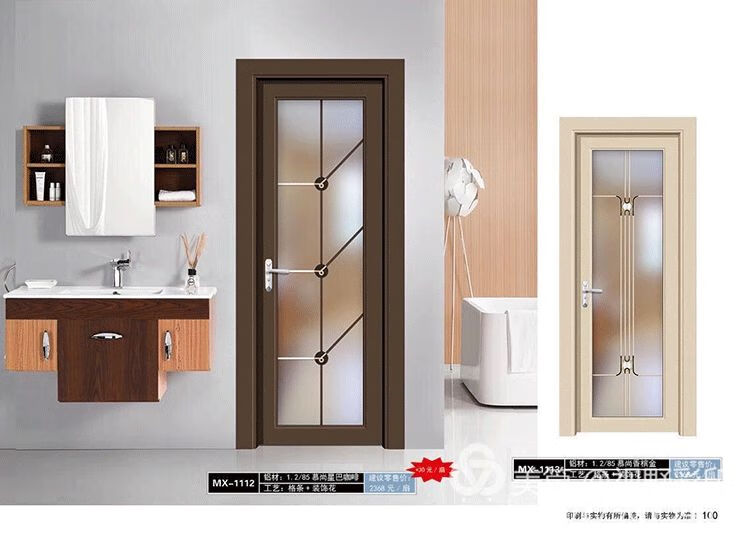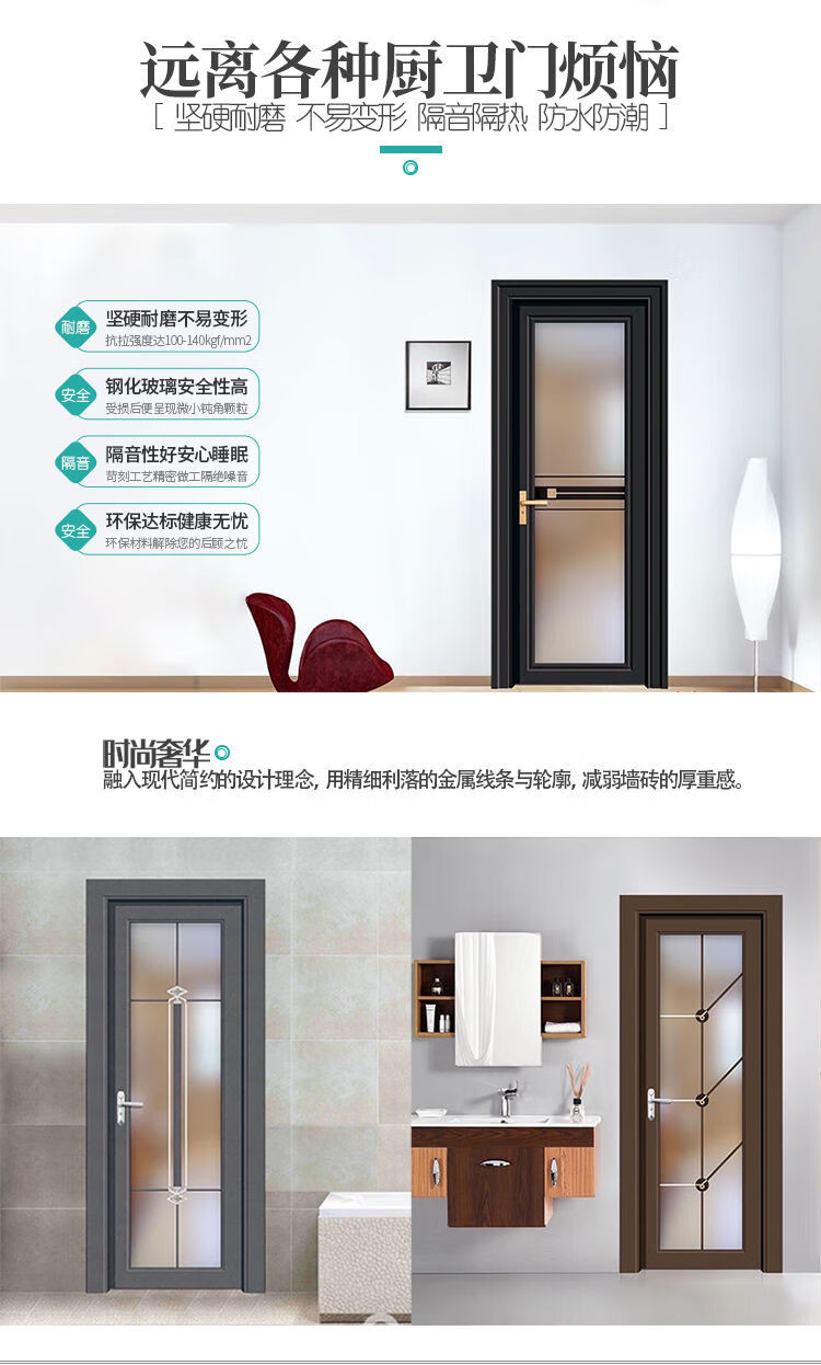 Jieyunmao bathroom door aluminum alloy toilet door simple titanium magnesium new kitchen flat opening toilet bathroom door straight ash type