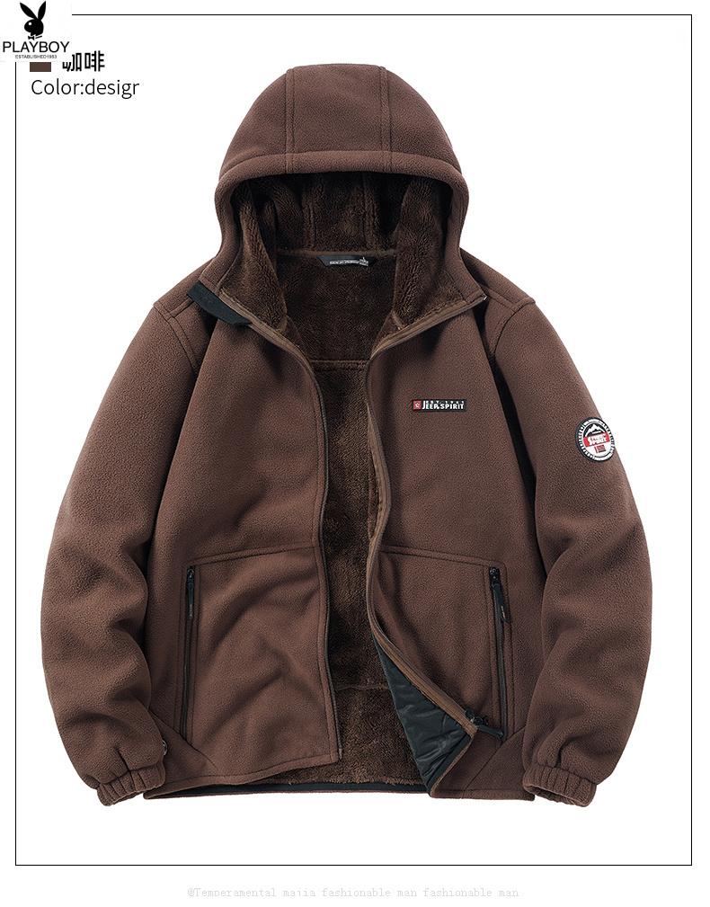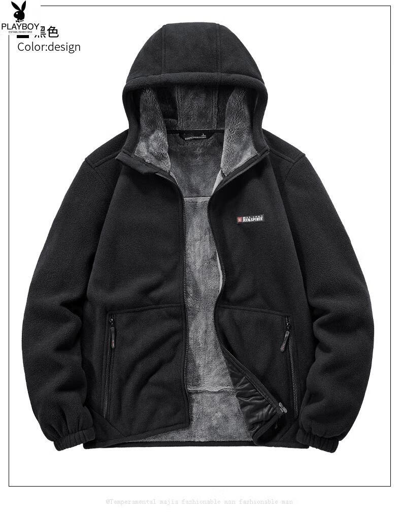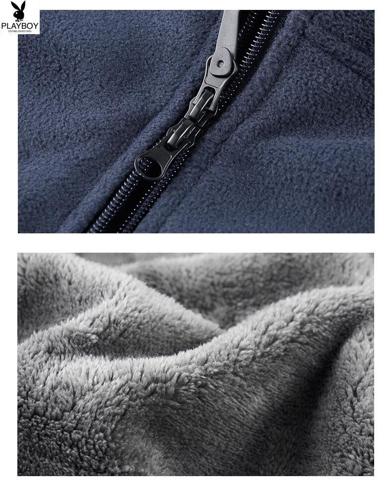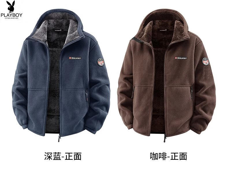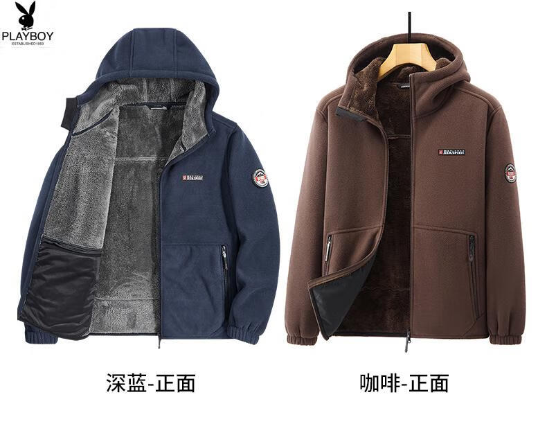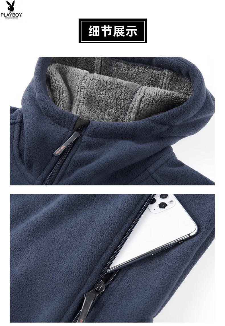 Playboy (PLAYBOY) Polar Fleece L Hooded Jacket Zipper Cardigan Men's Jacket Autumn and Winter Velvet Thickened Sports Fleece Warm Sweater Dark Blue Y710 Hooded Velvet 4XL (Recommended 175-190 catties)