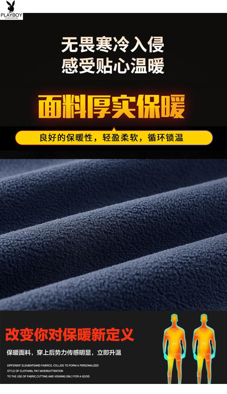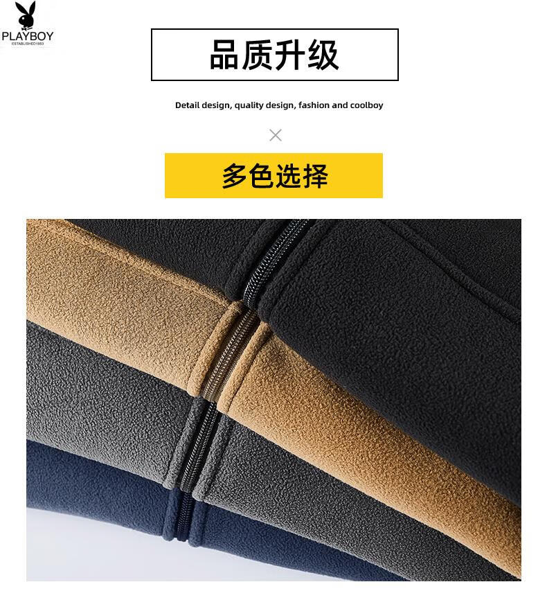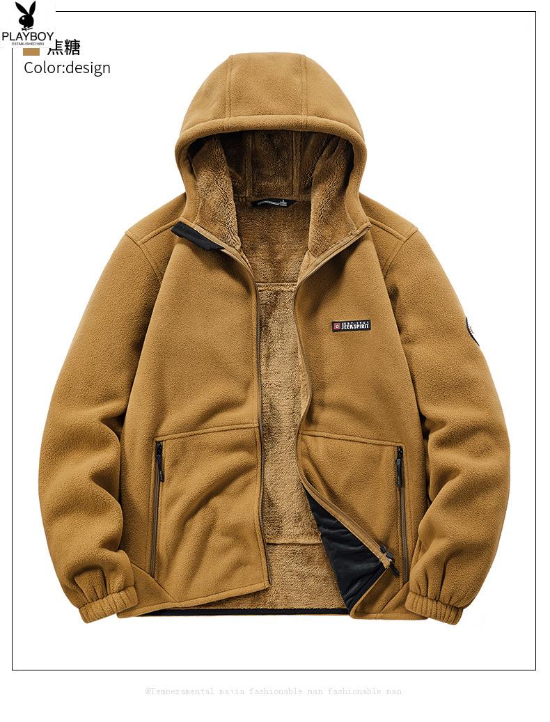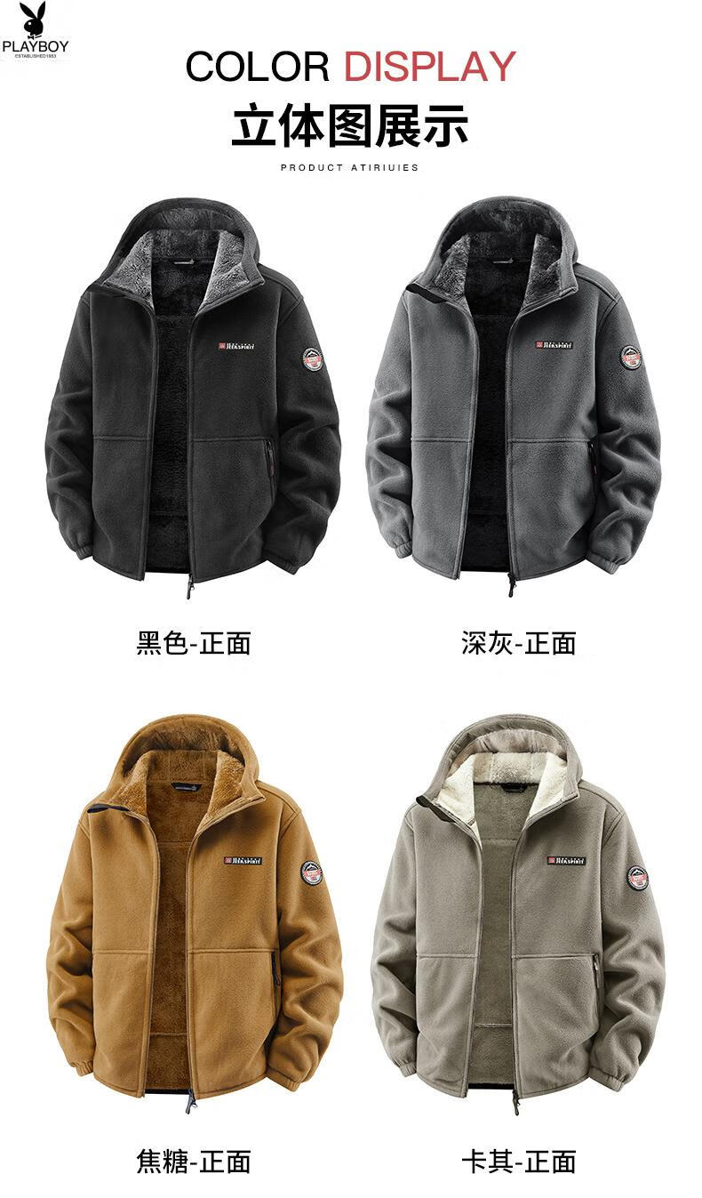 Playboy (PLAYBOY) Polar Fleece L Hooded Jacket Zipper Cardigan Men's Jacket Autumn and Winter Velvet Thickened Sports Fleece Warm Sweater Dark Blue Y710 Hooded Velvet 4XL (Recommended 175-190 catties)