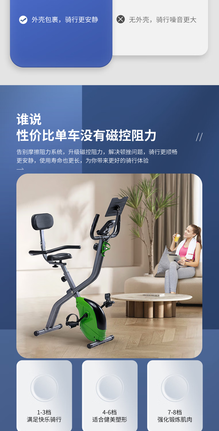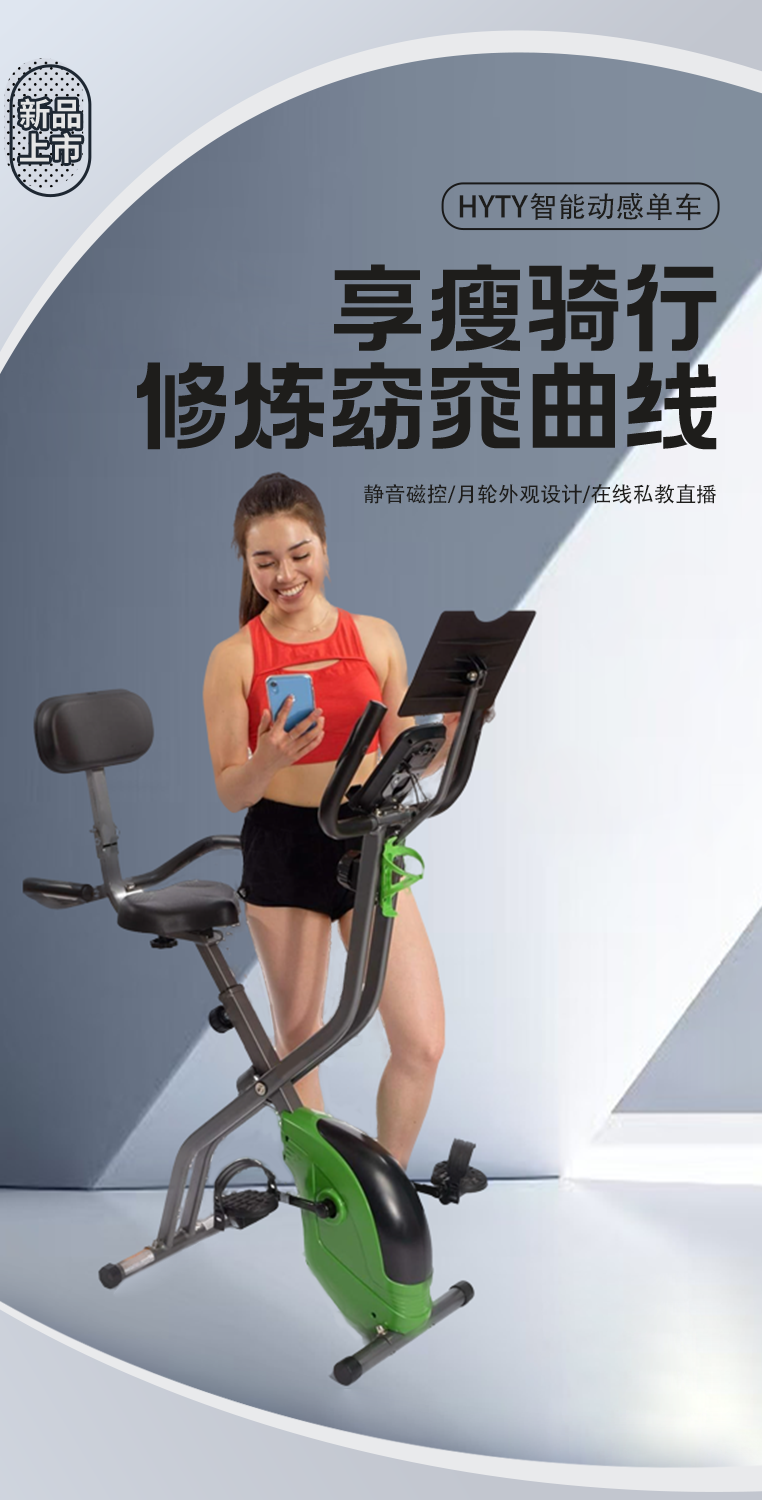 Dynamic bicycle Hongyuan folding home indoor silent magnetic control weight loss exercise bike bicycle training equipment gray green