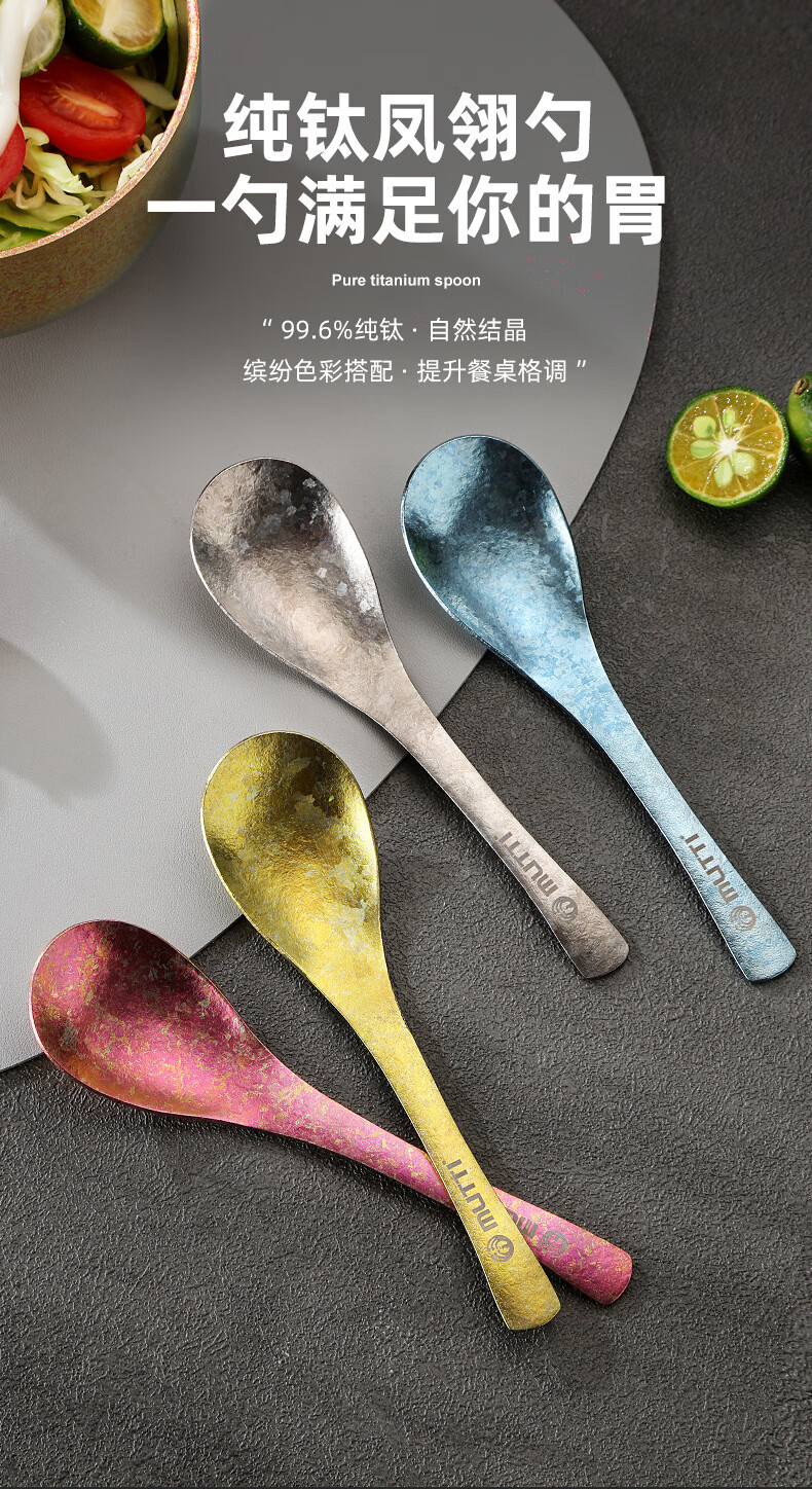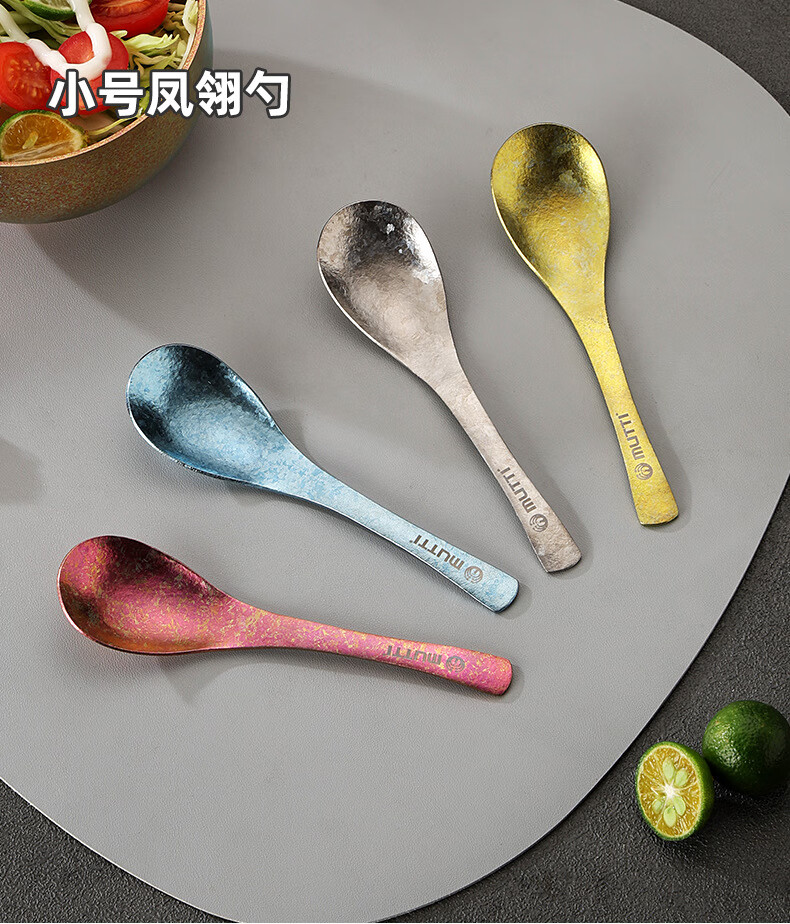Zwilling pure titanium spoon household portable ice flower design large phoenix feather spoon-McKin