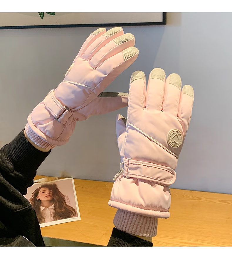 SMVP German Cycling Gloves Winter Women's Warm Thickened Velvet Touch Screen Northeast Electric Vehicle Cold Winter Gray Blue One Size