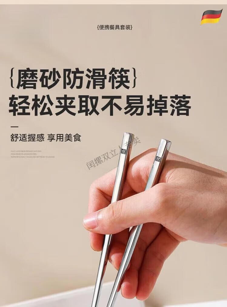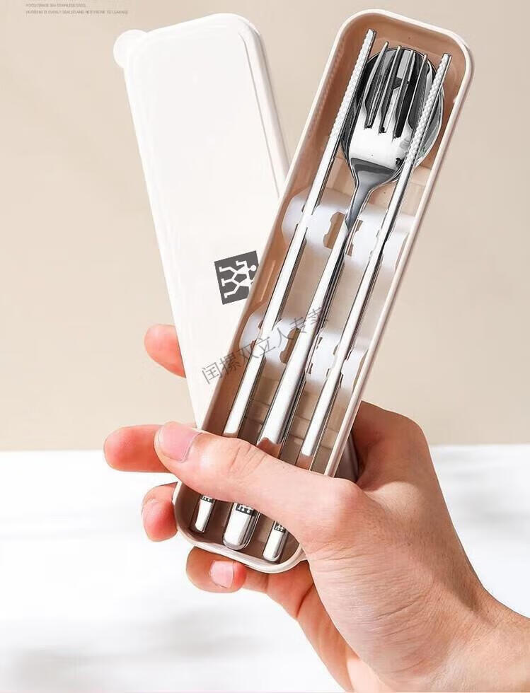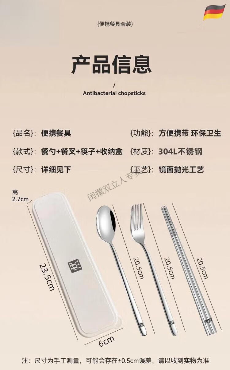 ZWILLING Zwilling German chopsticks, spoons and forks set, portable tableware, stainless steel chopsticks, three pieces, 304 sets of white box sets, spoons, forks and chopsticks