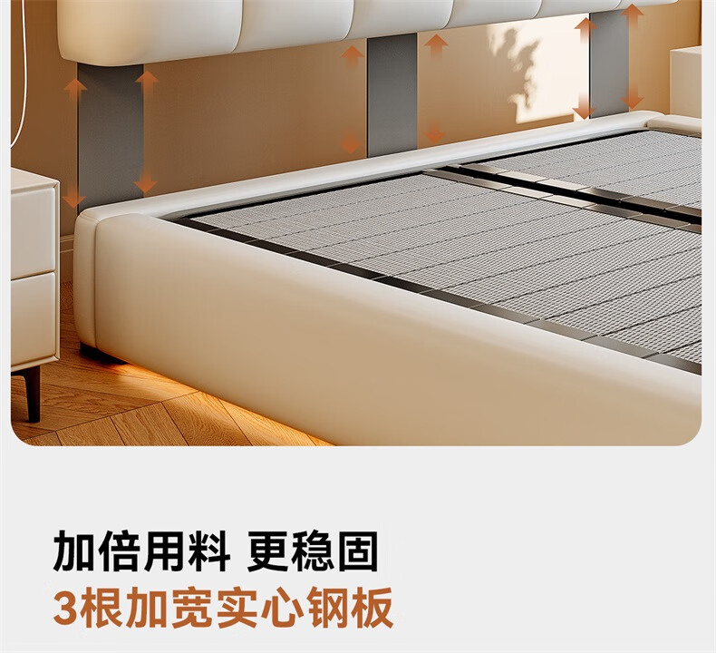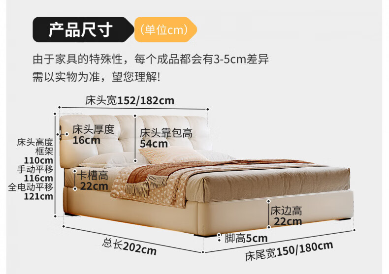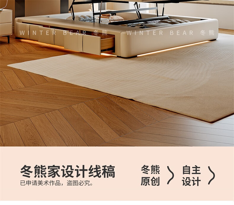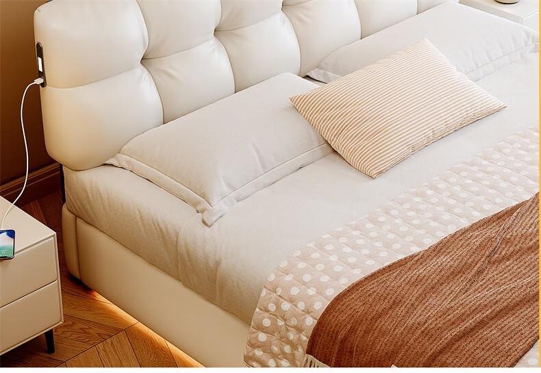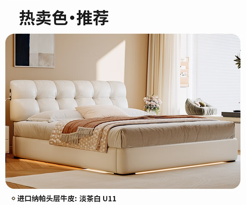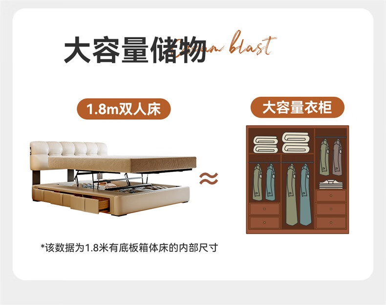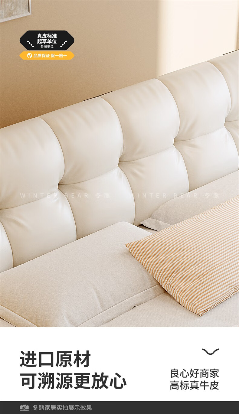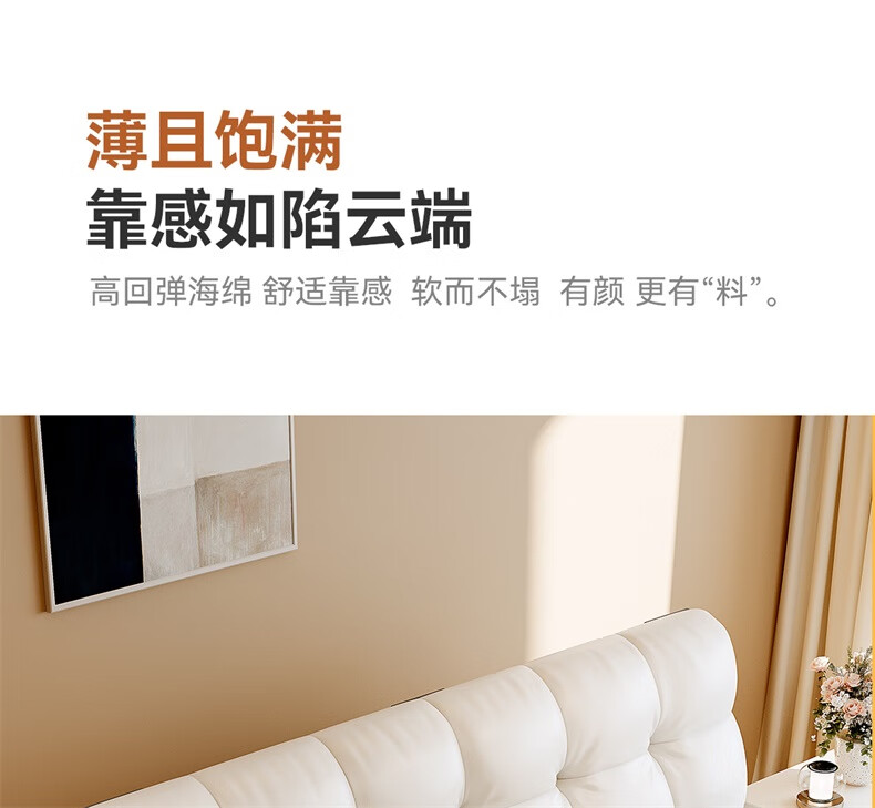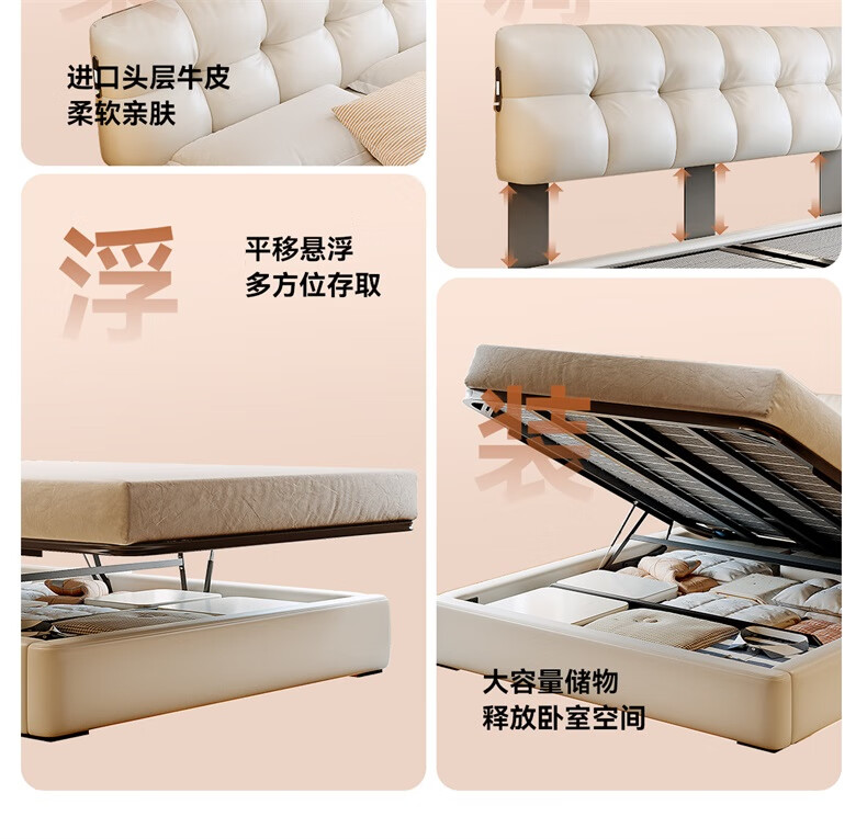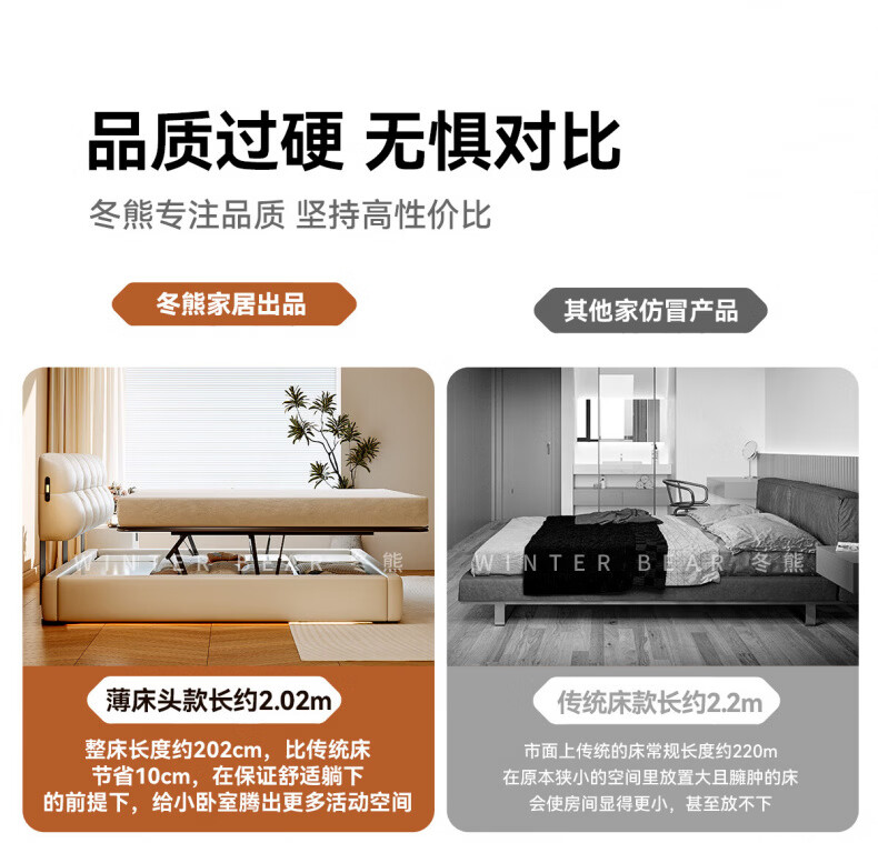 Winter Bear Puff Leather Bed Ultra-Thin Bedside Small Apartment Space-Saving Double Master Bedroom Cream High Box Sliding Storage Bed Ecological Leather Bed/Full Solid Wood Beech Rib Frame + 5-Star Mattress 1800mm*2000mm Frame Structure